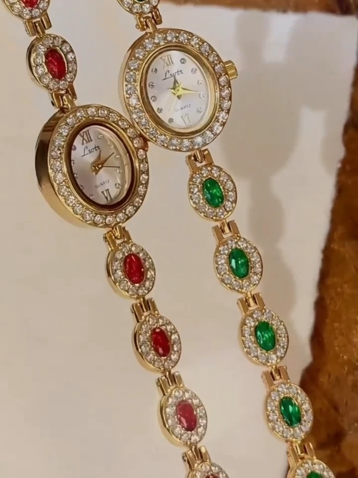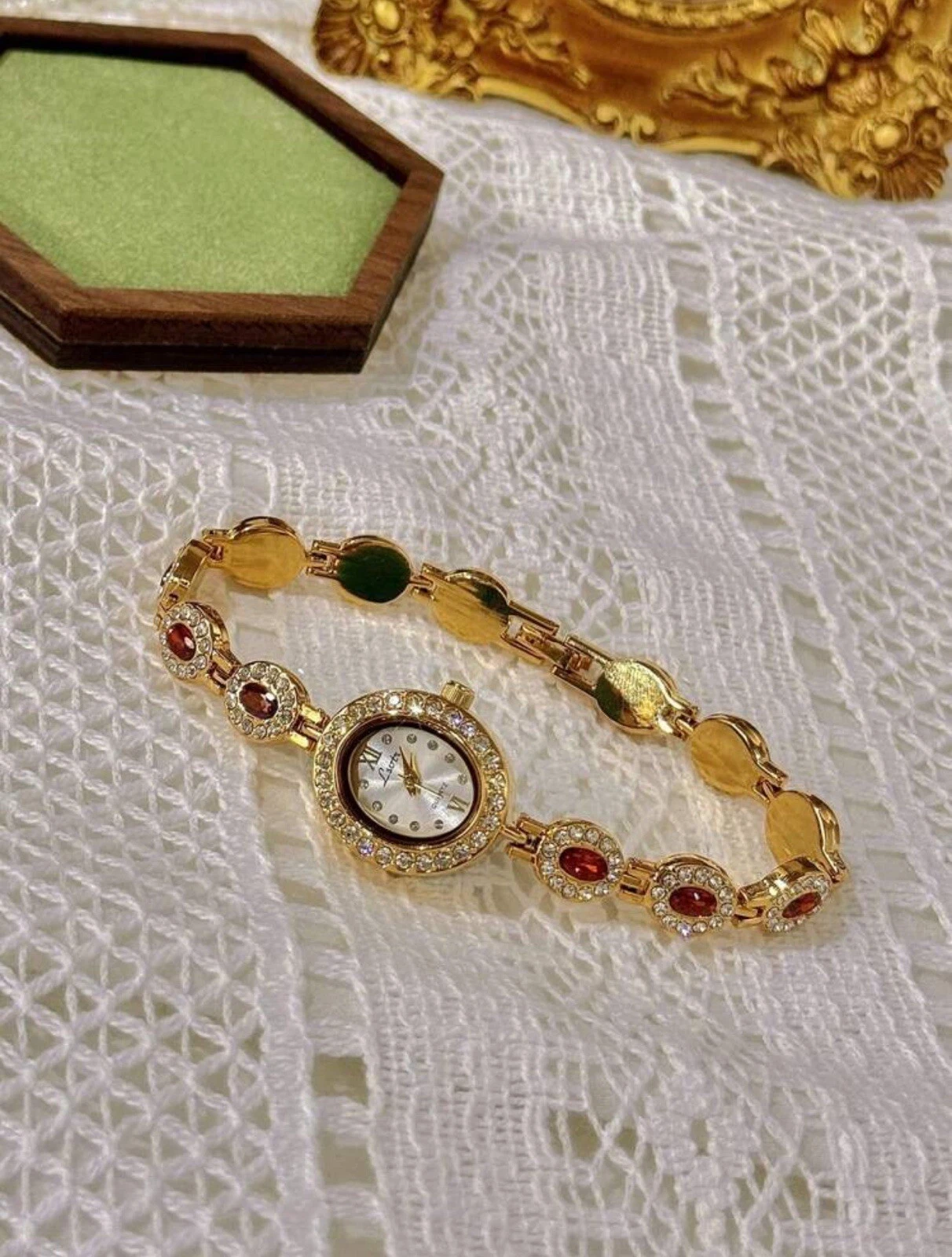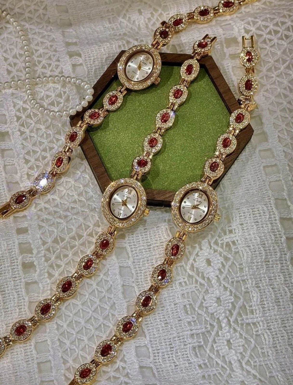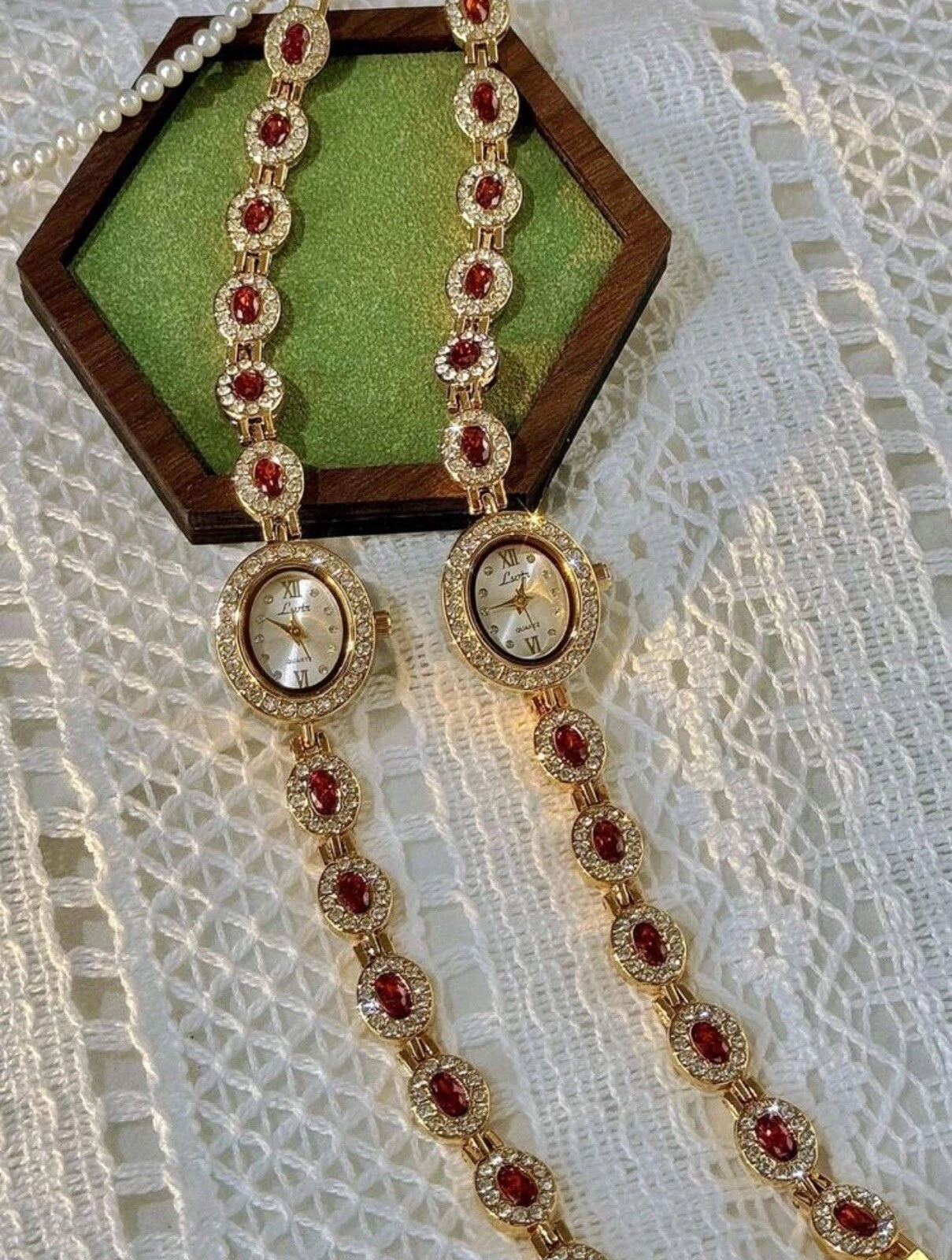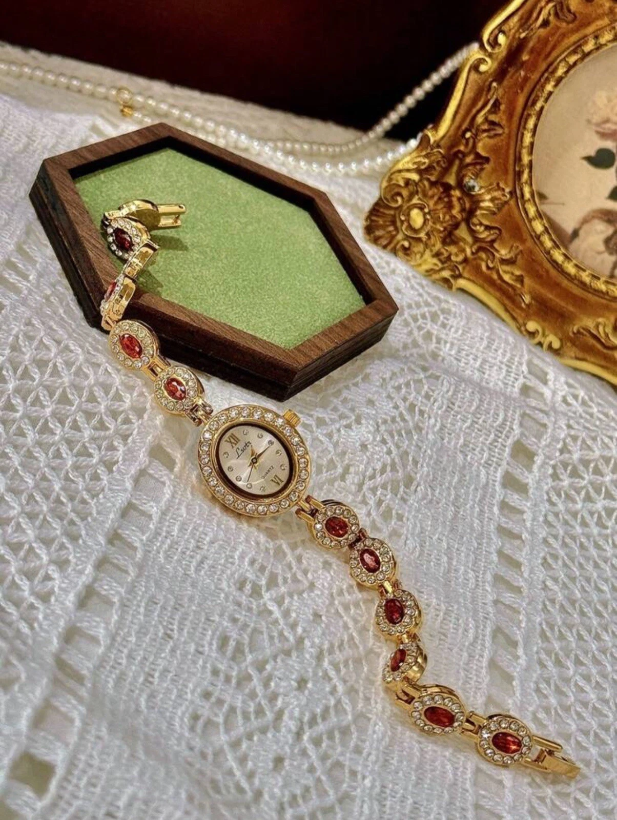 Women's Vintage Gold Red Crystal Oval Watch | Elegant Luxury Dress Jewelry Gift