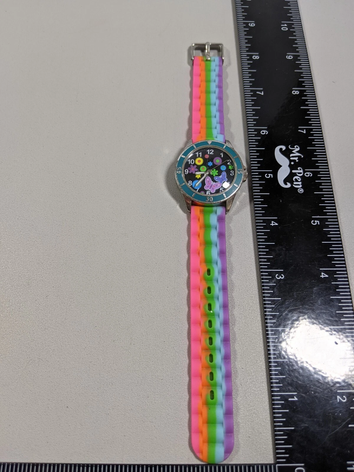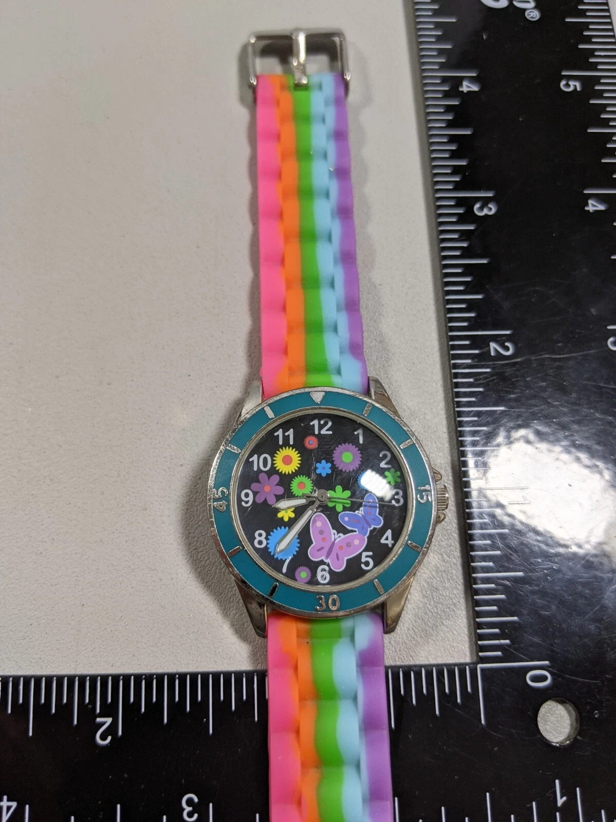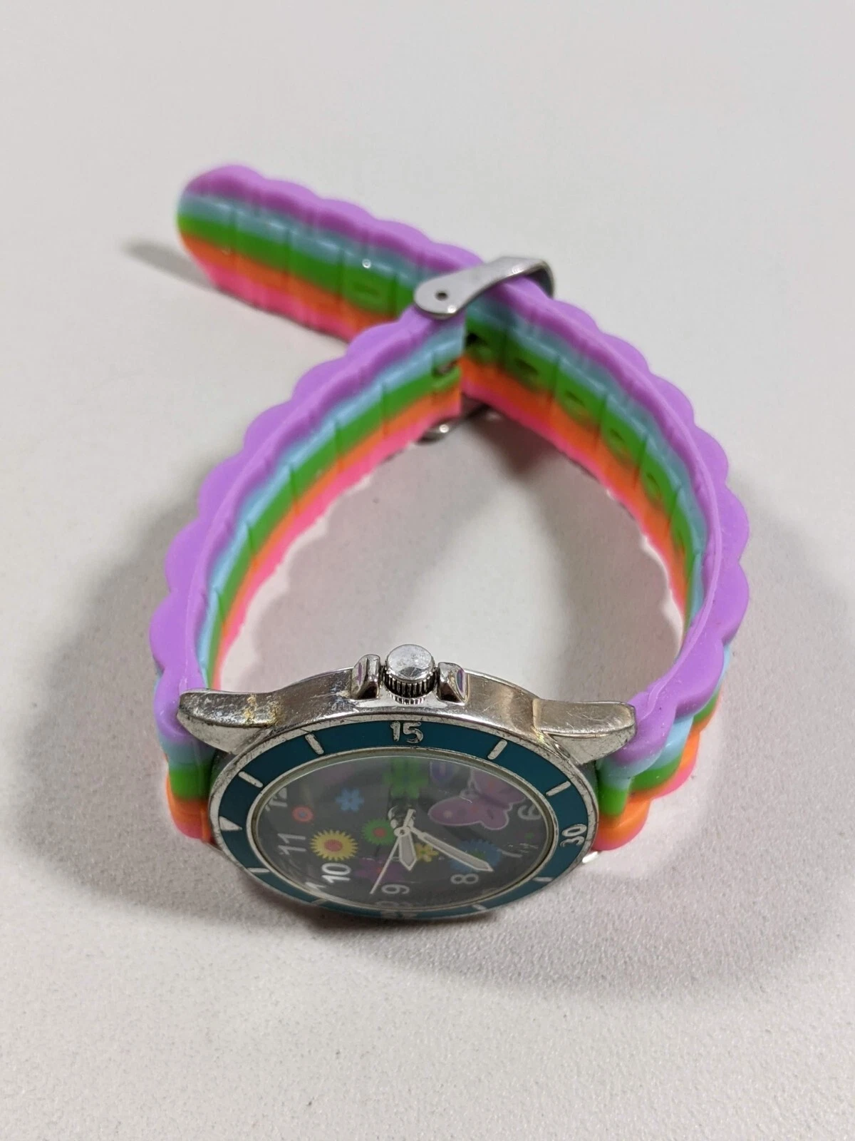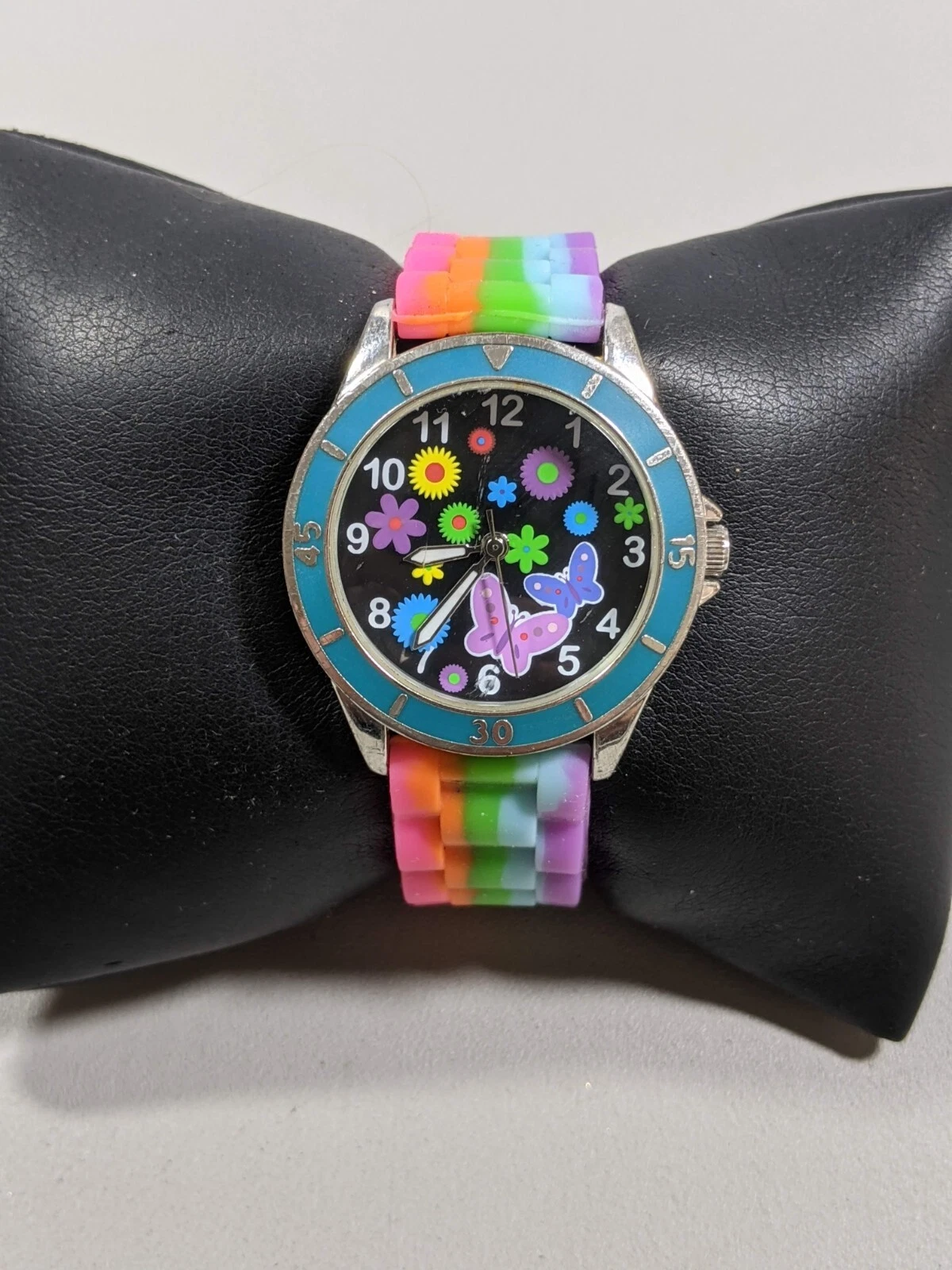 Rainbow Butterflies Flowers Round Case 33 mm Rubber Band Watch 8 inch