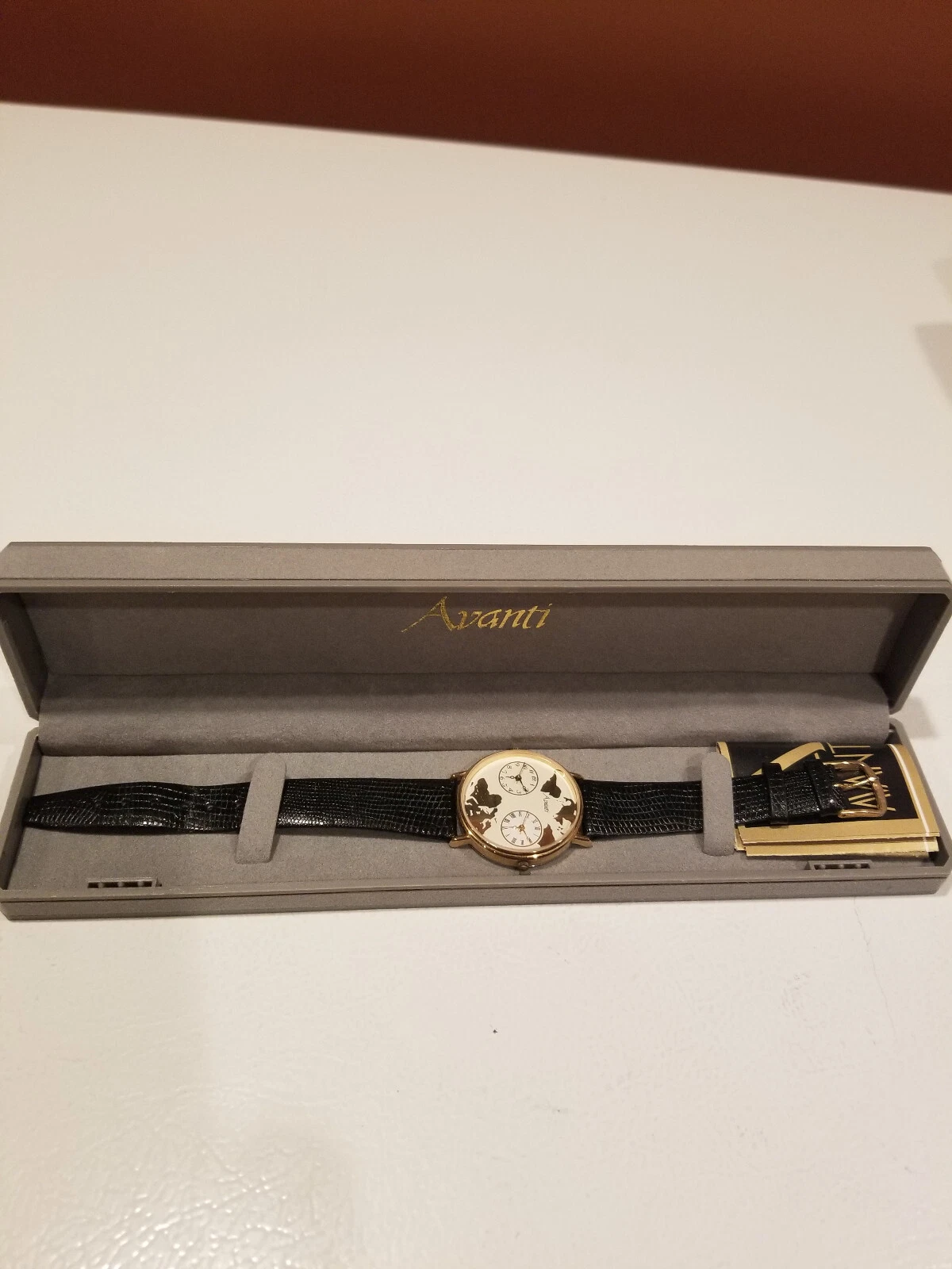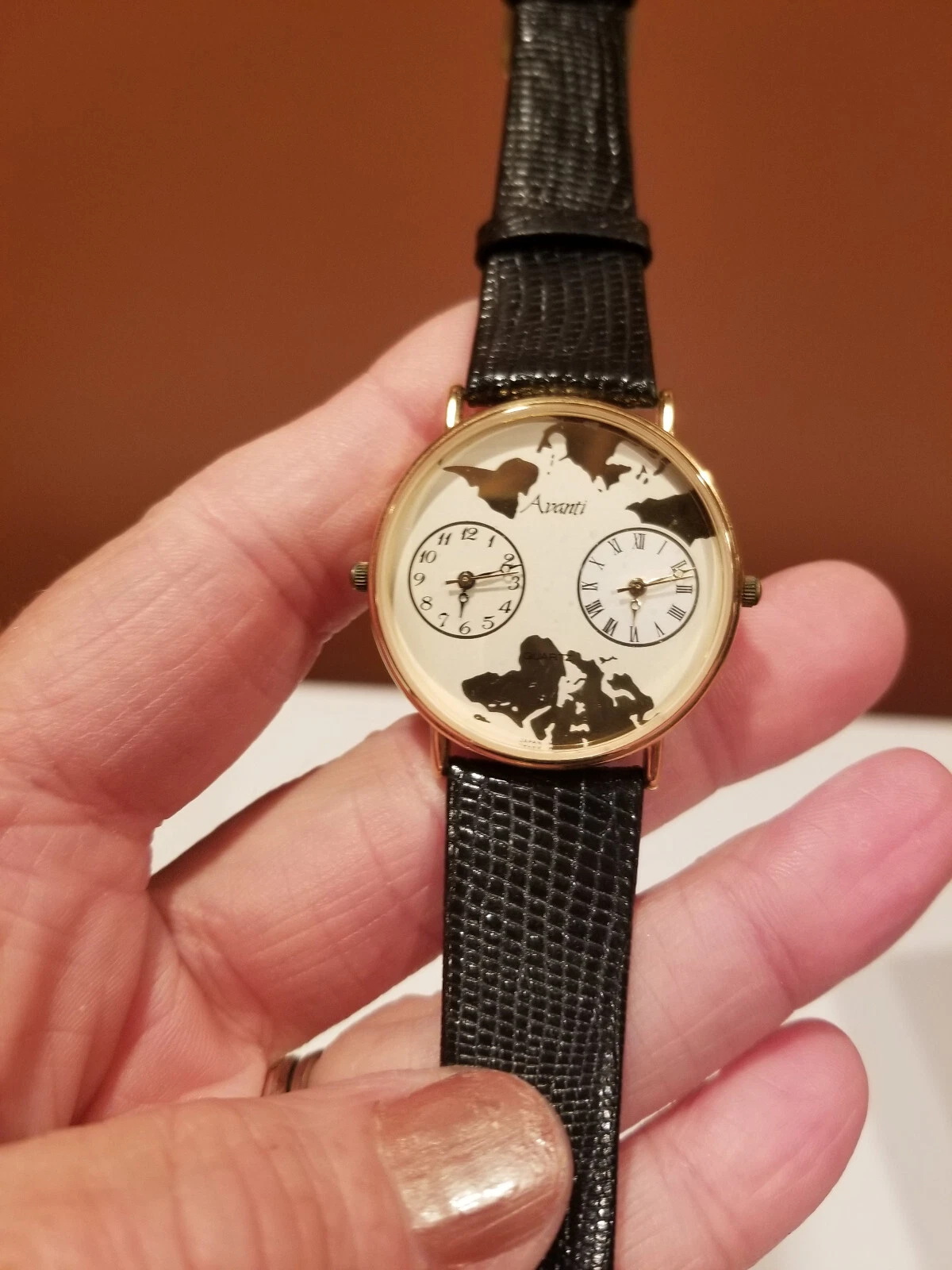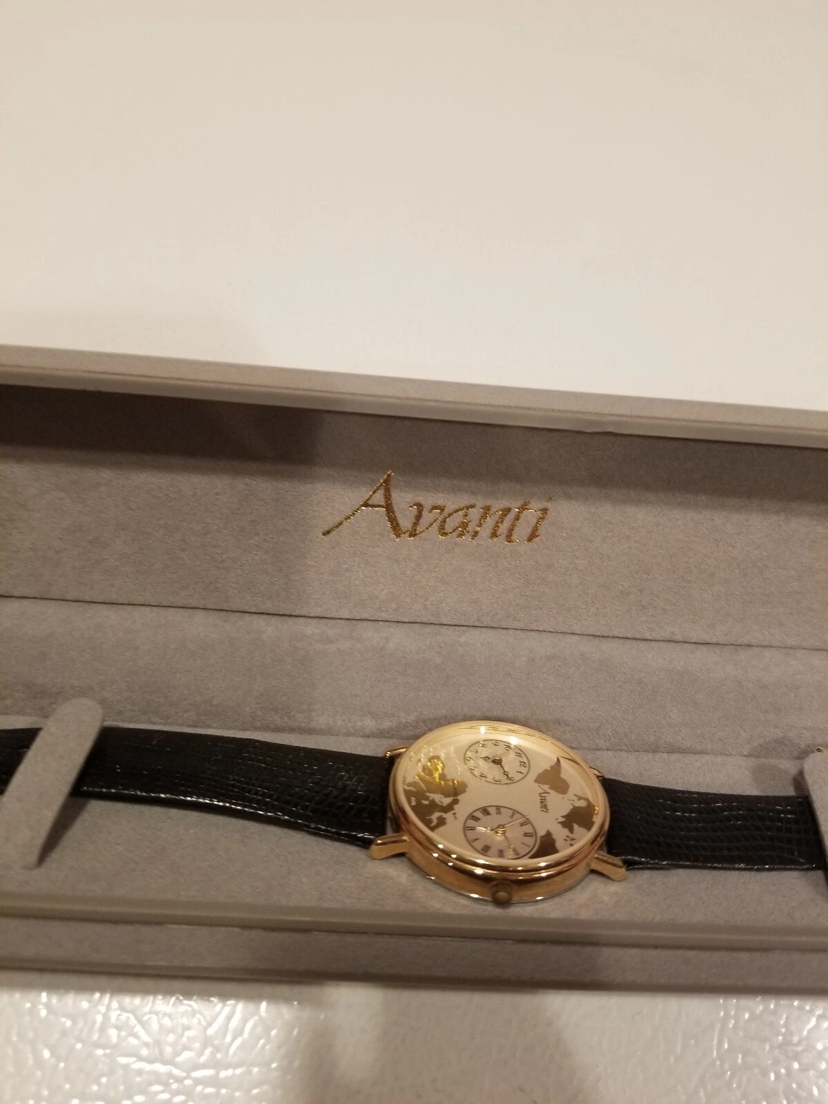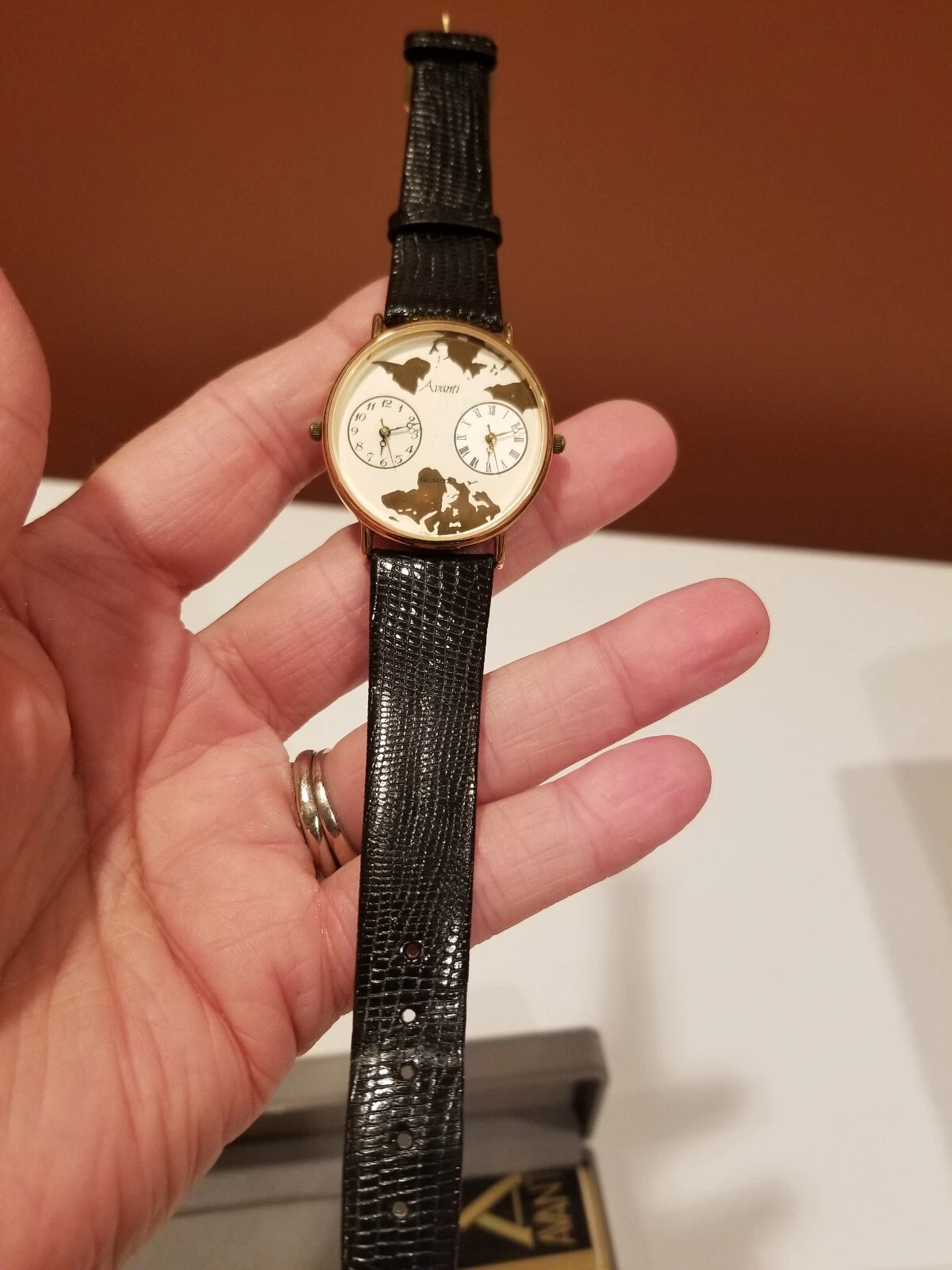 Vintage Avanti Quartz world face wrist watch, new in box with new battery
