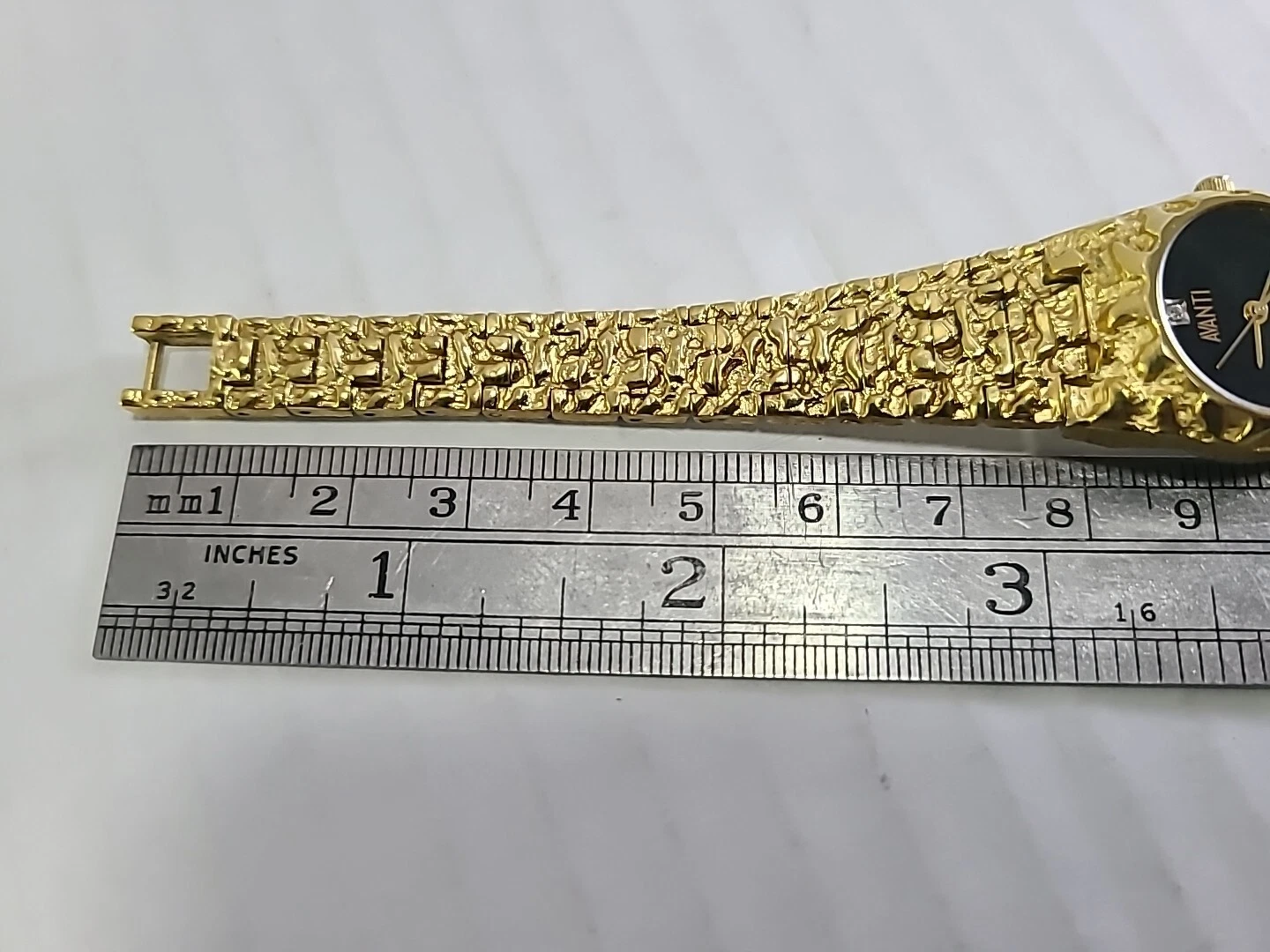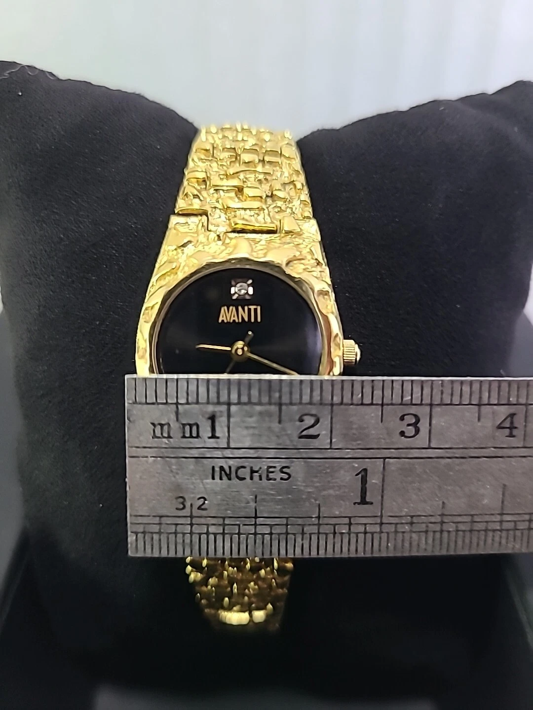 Womens Avanti Gold Tone Nugget Design Black Dial Watch New Battery