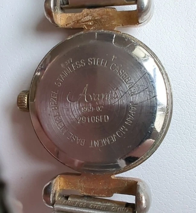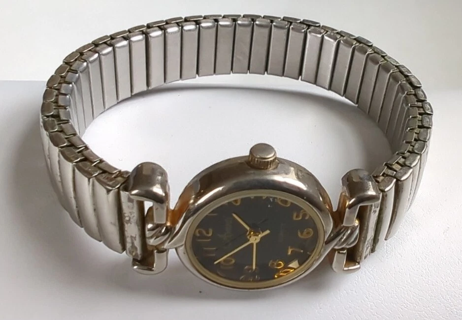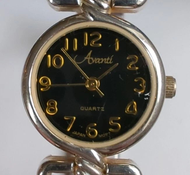 Avanti Ladies Quartz Watch-Silvertone, Black Face, Gold Hands