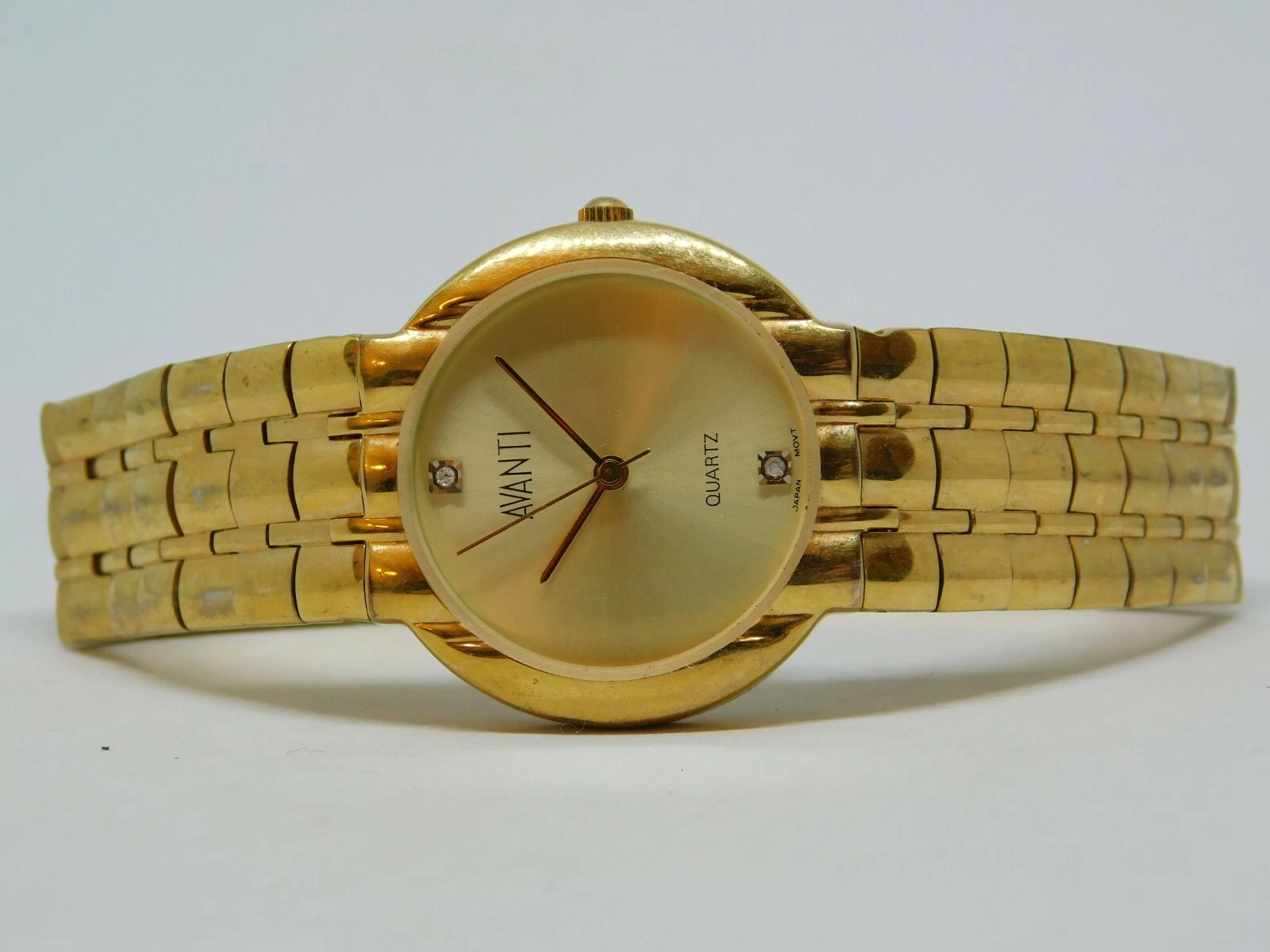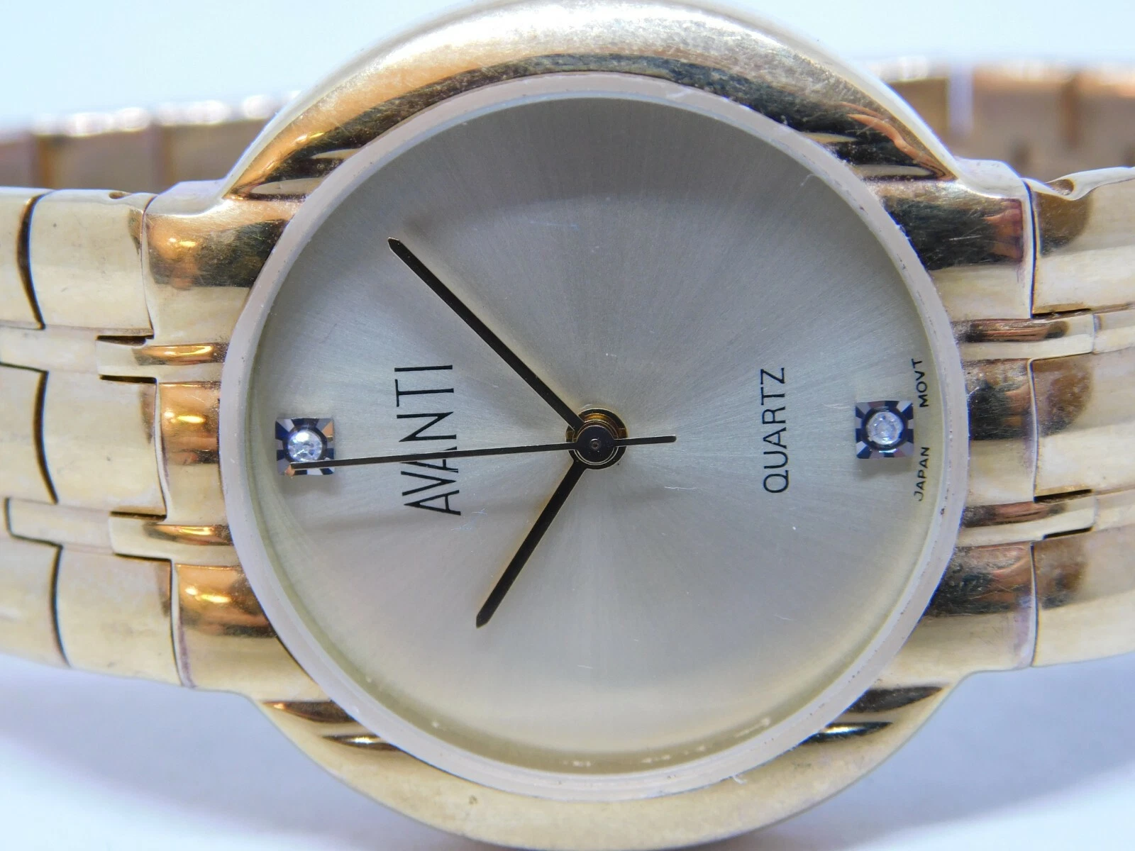 Avanti Gold Tone Diamond Quartz Analog Women's Watch Sz. 6 3/4" New Battery