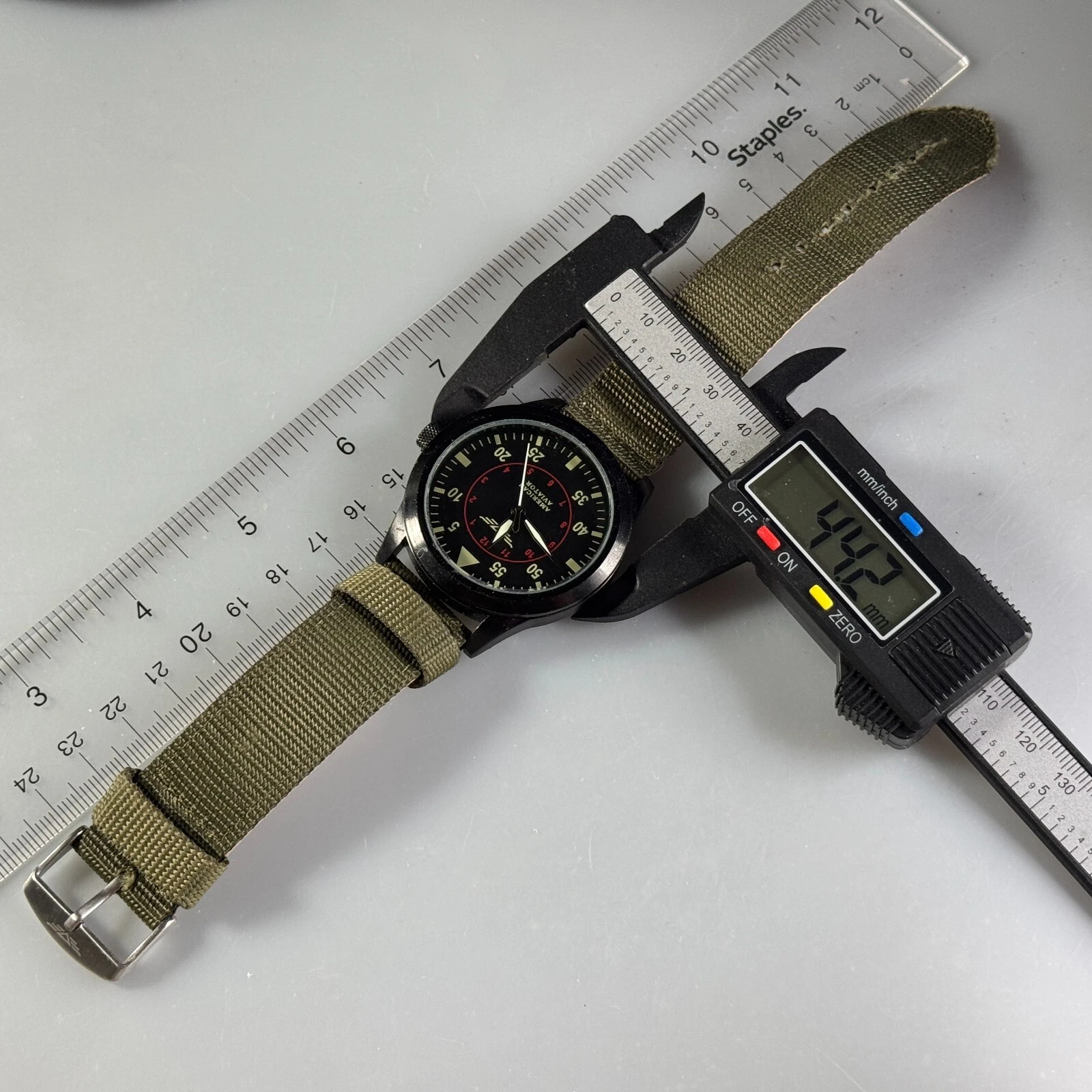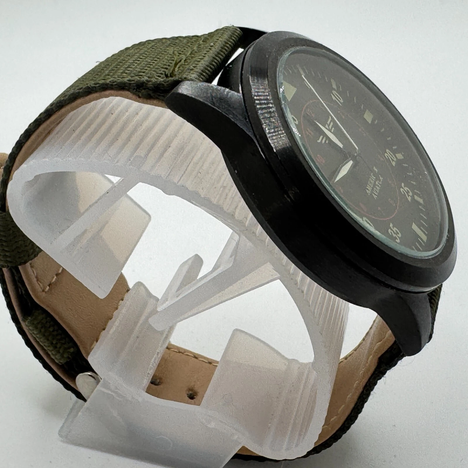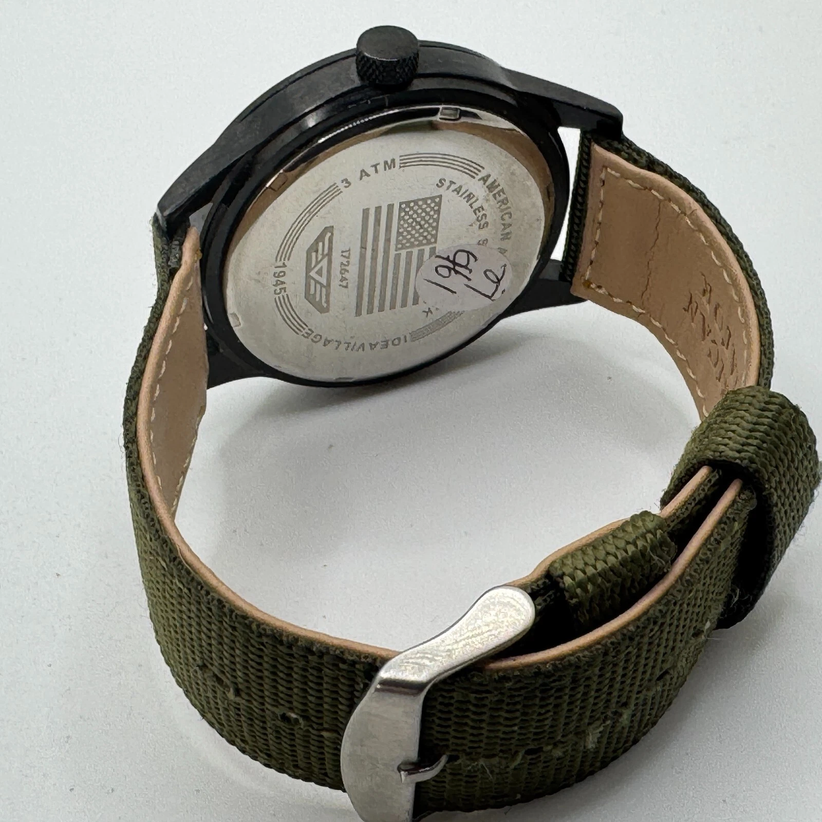 American Aviator Quartz Watch Men 30m Black Green Canvas Analog New Battery