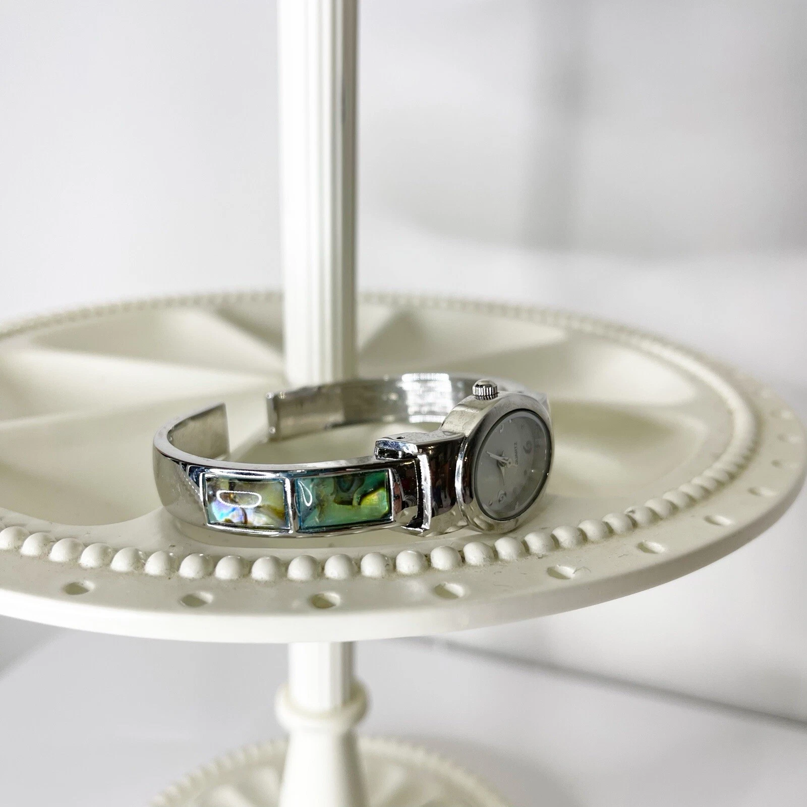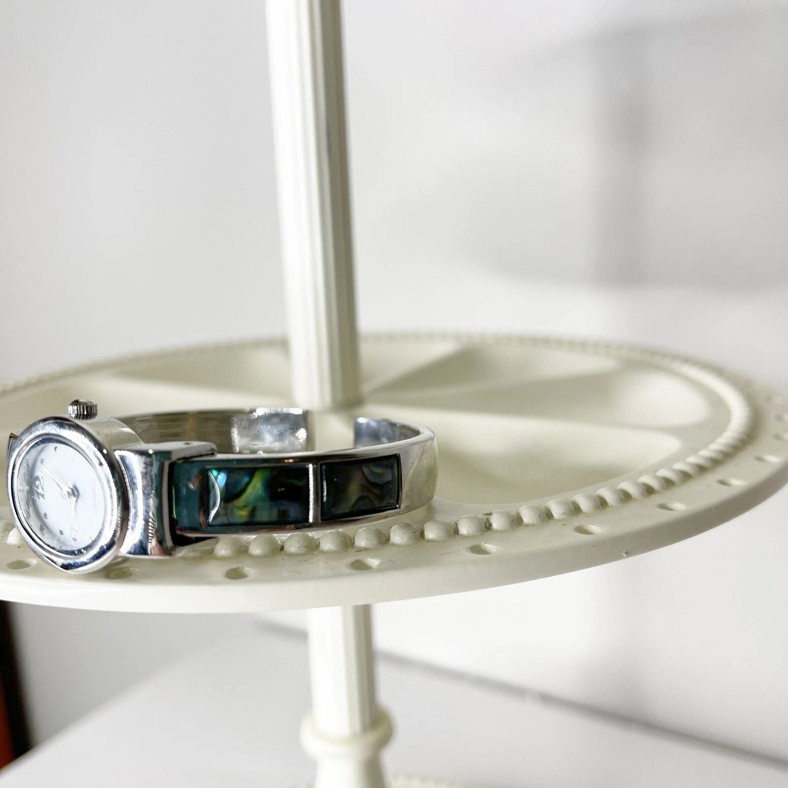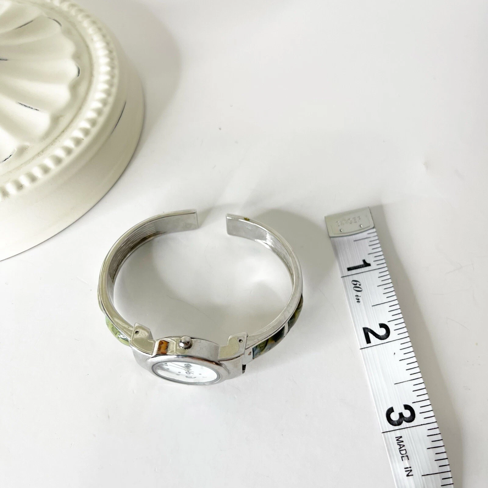 Vintage Avon Abalone Watch Women Cuff Bracelet Silver Tone Japan Movement