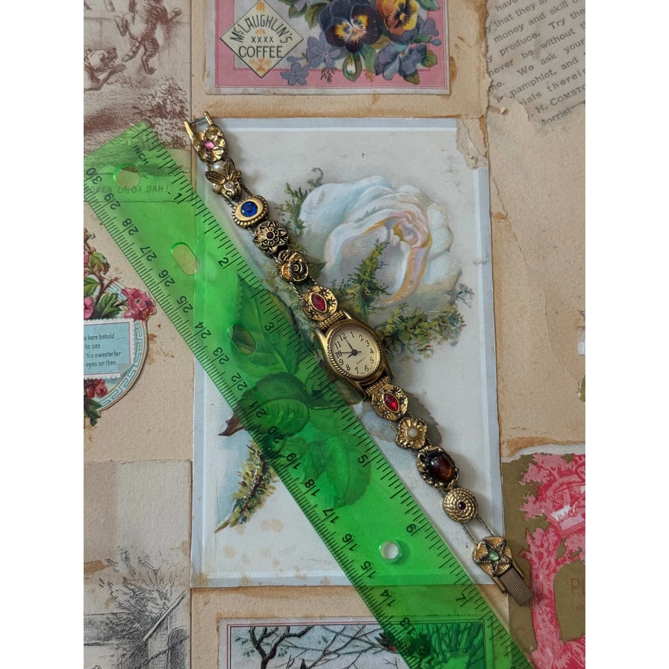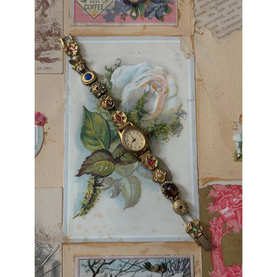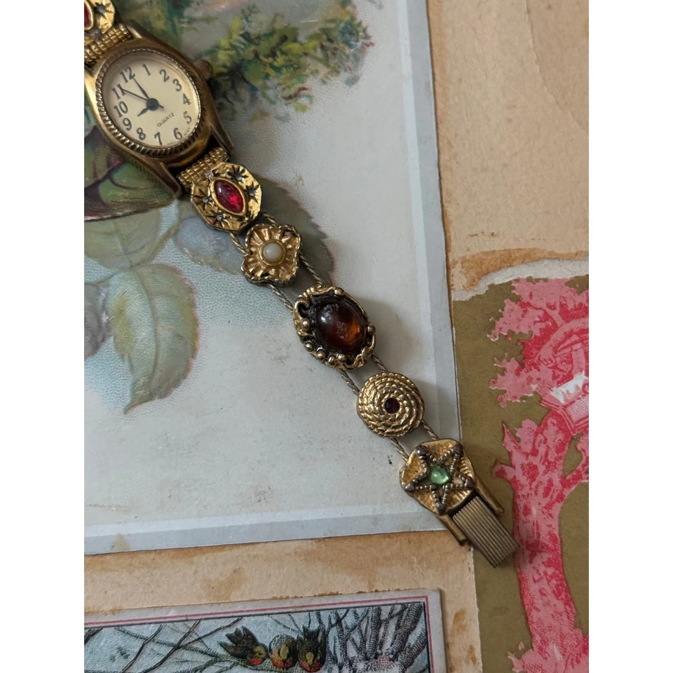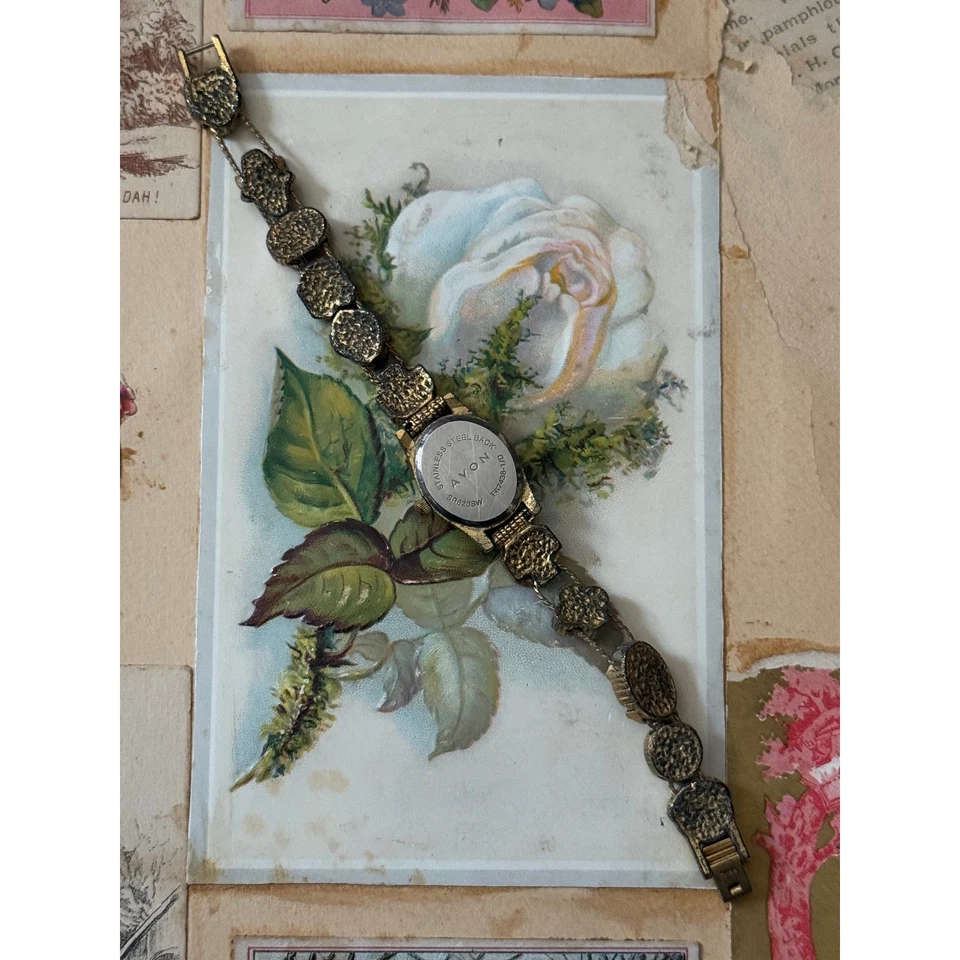 avon gold tone victorian slider charm watch working new battery sold as is