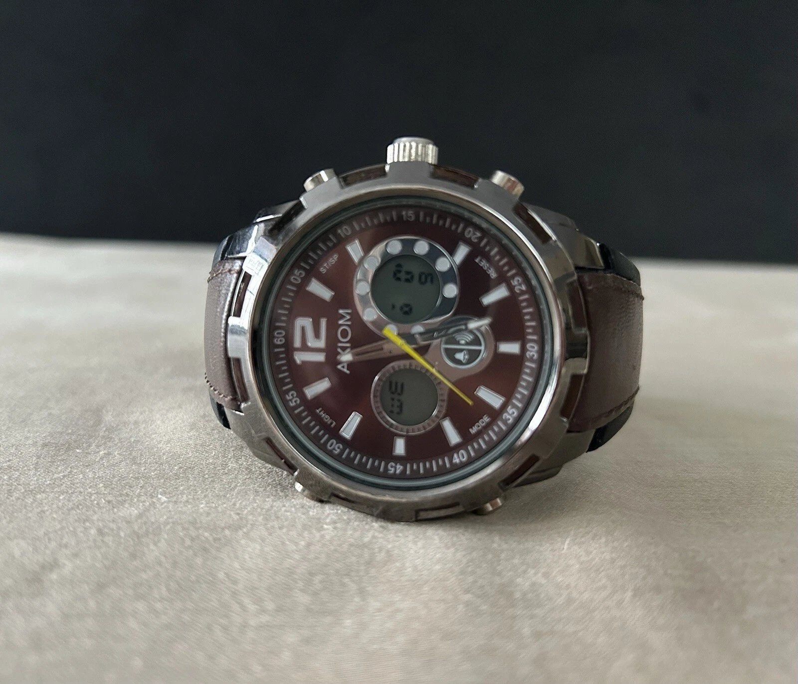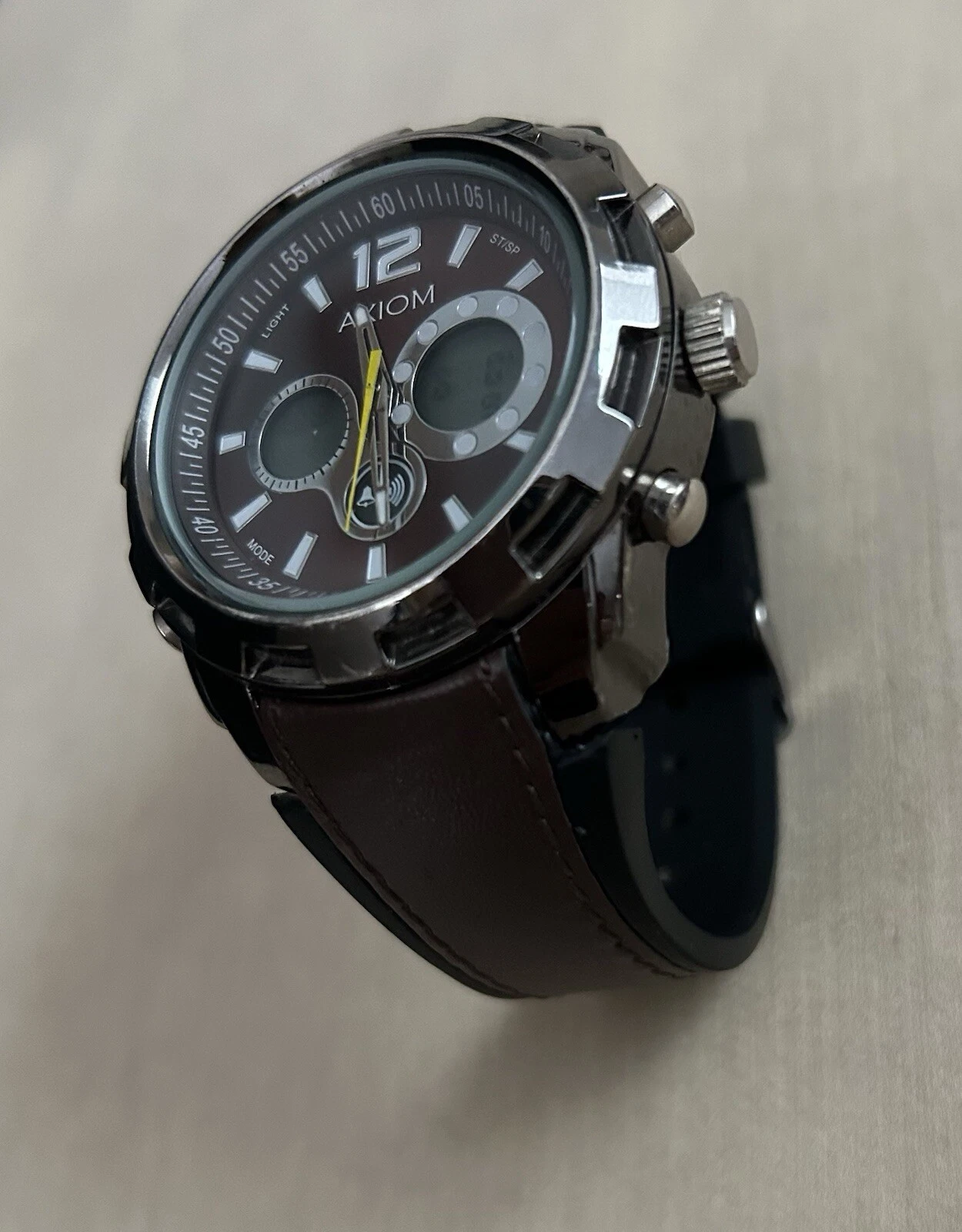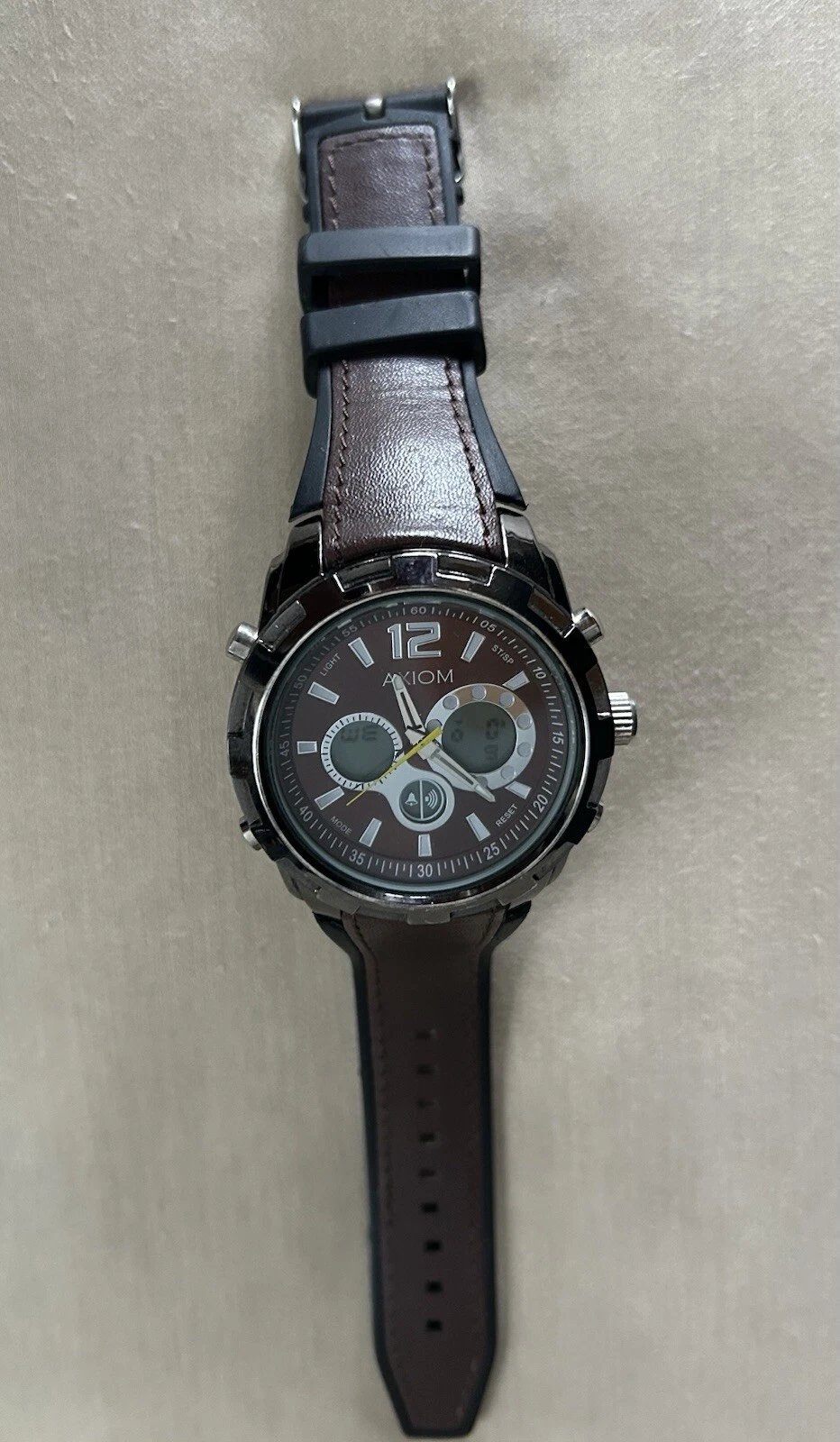 Axiom Men’s Chronograph Watch Brown Dial Leather Band 2 New Batteries