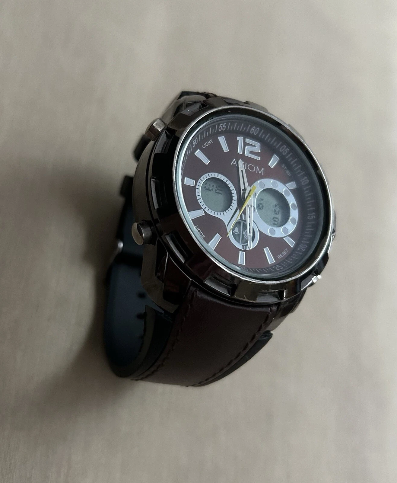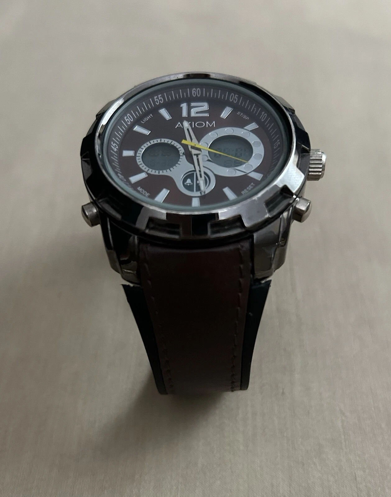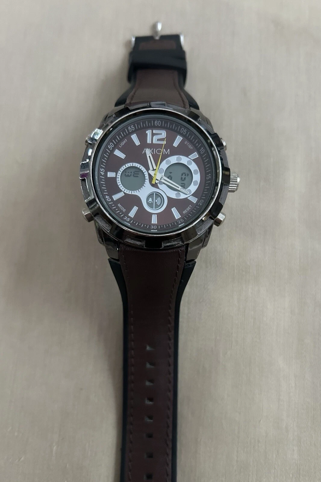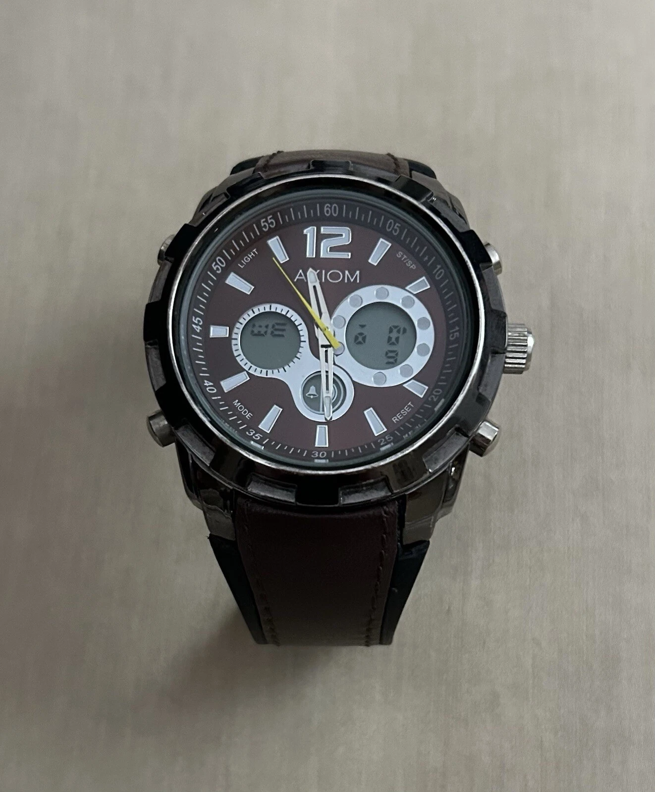 Axiom Men’s Chronograph Watch Brown Dial Leather Band 2 New Batteries