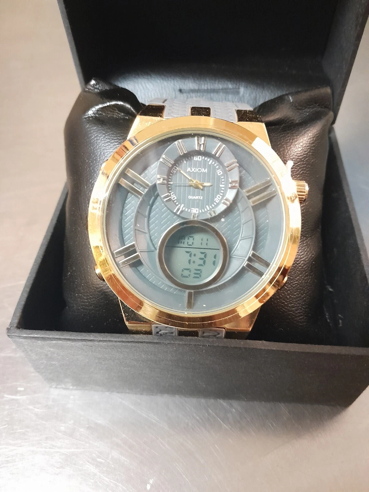Axiom Men's Digital / Analog Watch Black Gold Silicone Band