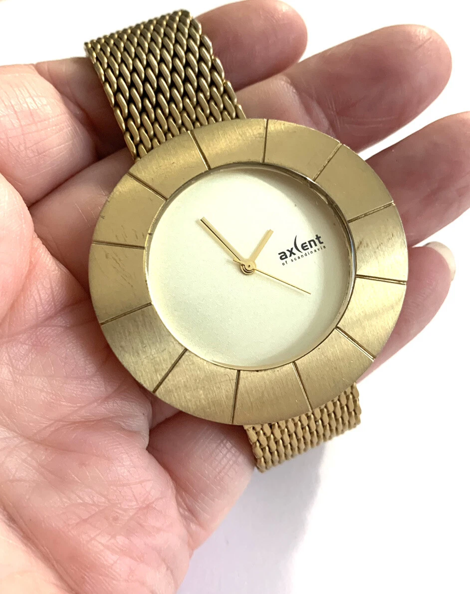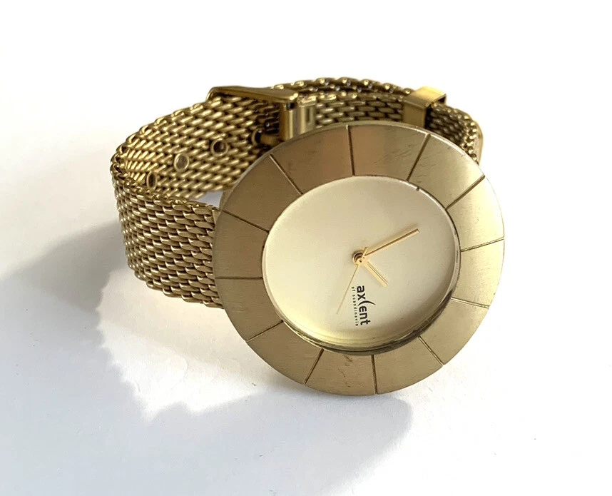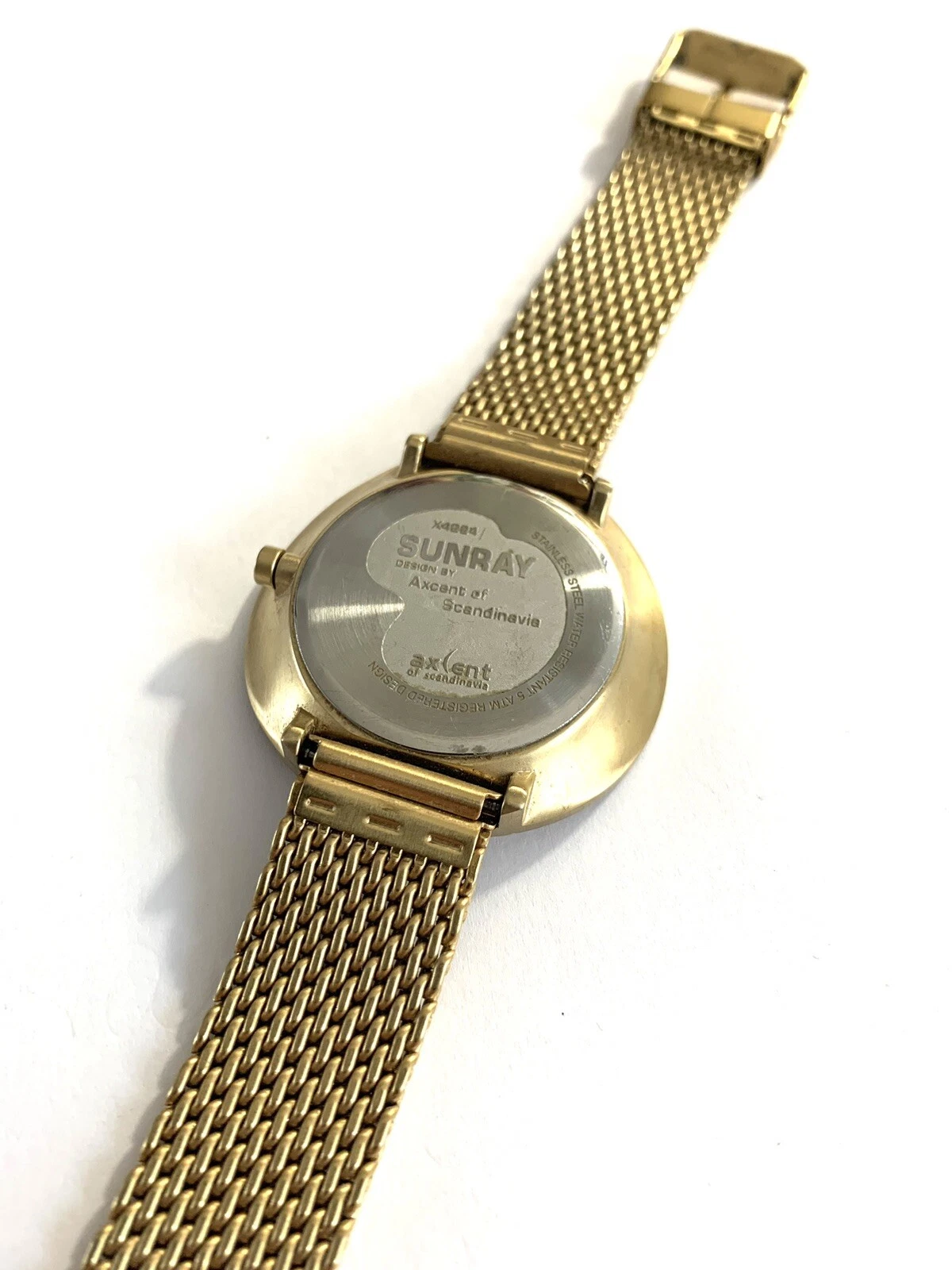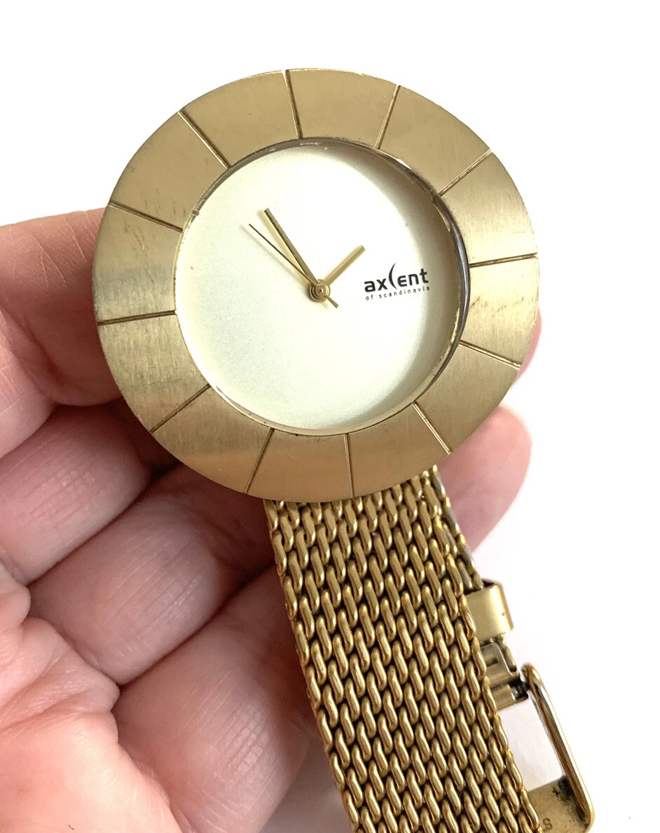 Fine ladies Axcent Big face Scandinavian Gold Plated Sunray wrist watch