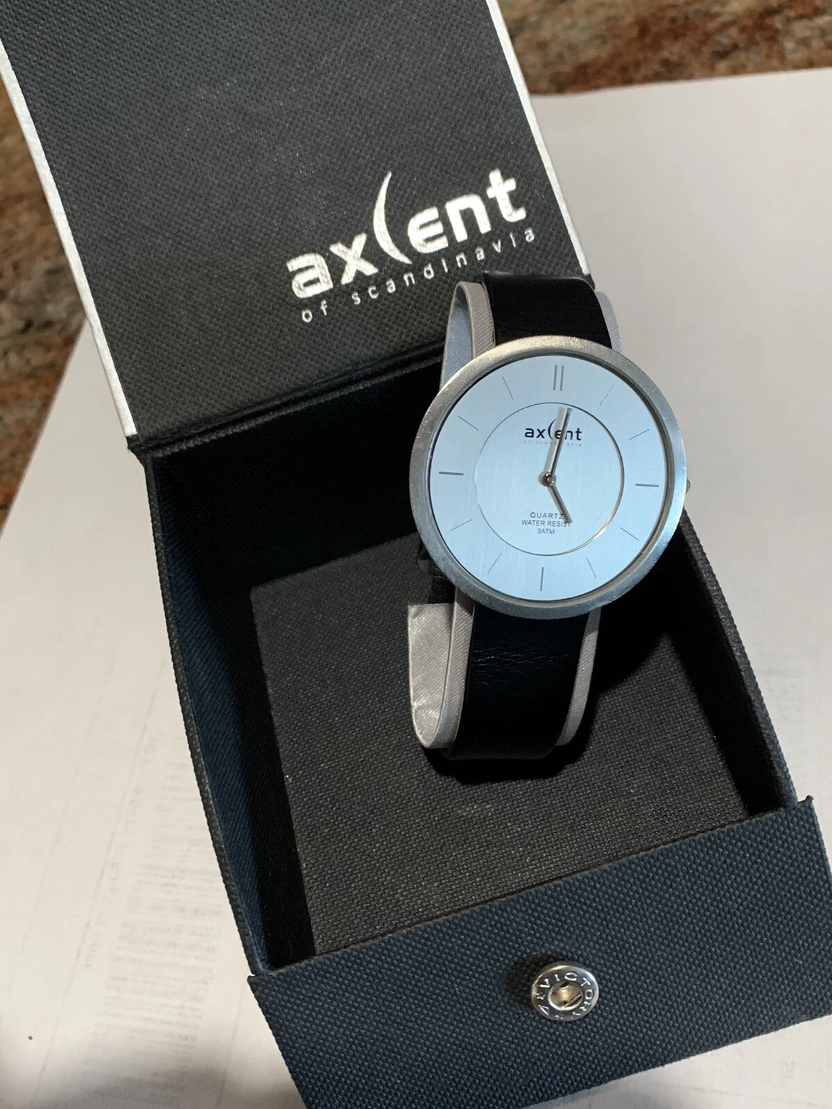 Axcent Of Scandinavia Water Resistant Quartz SS Watch W/Leather Band