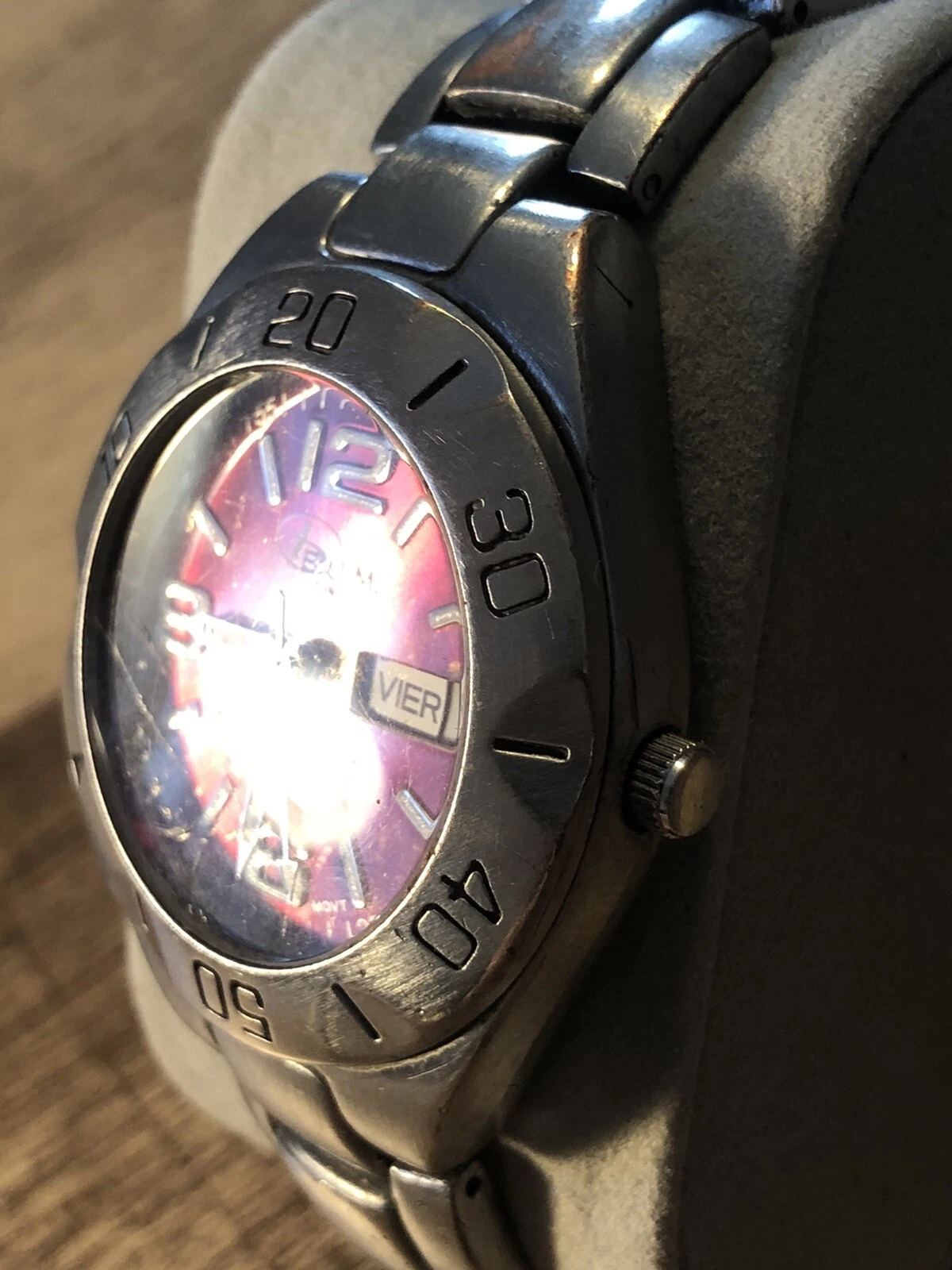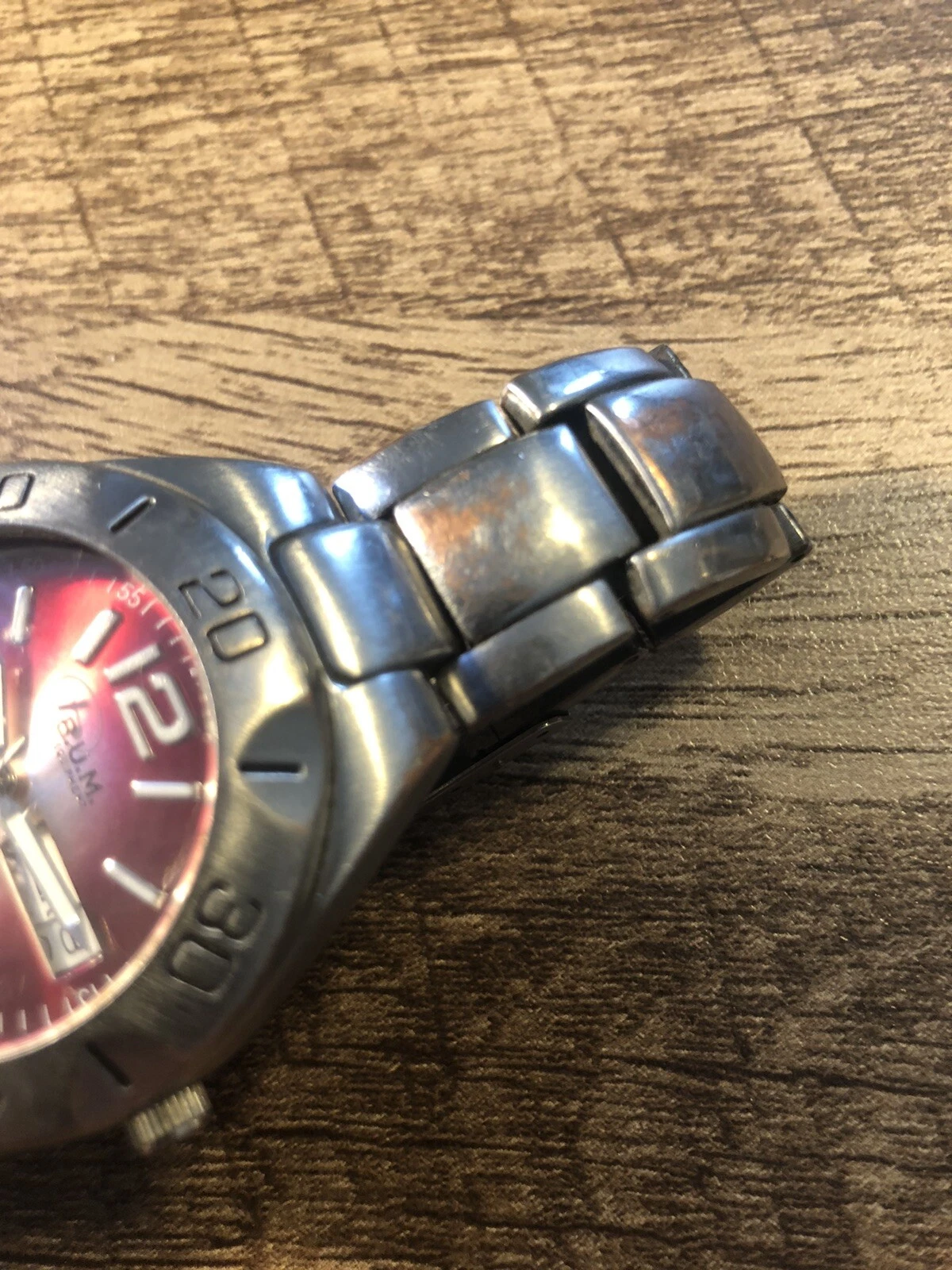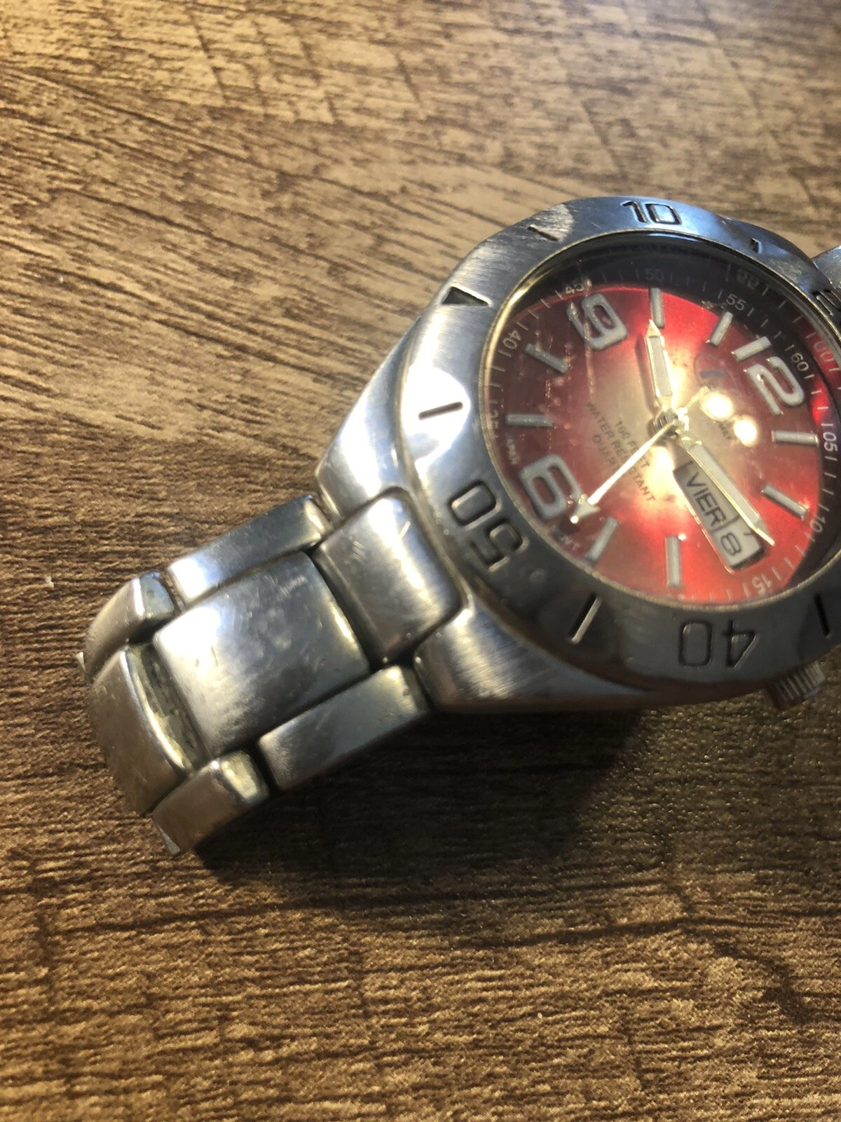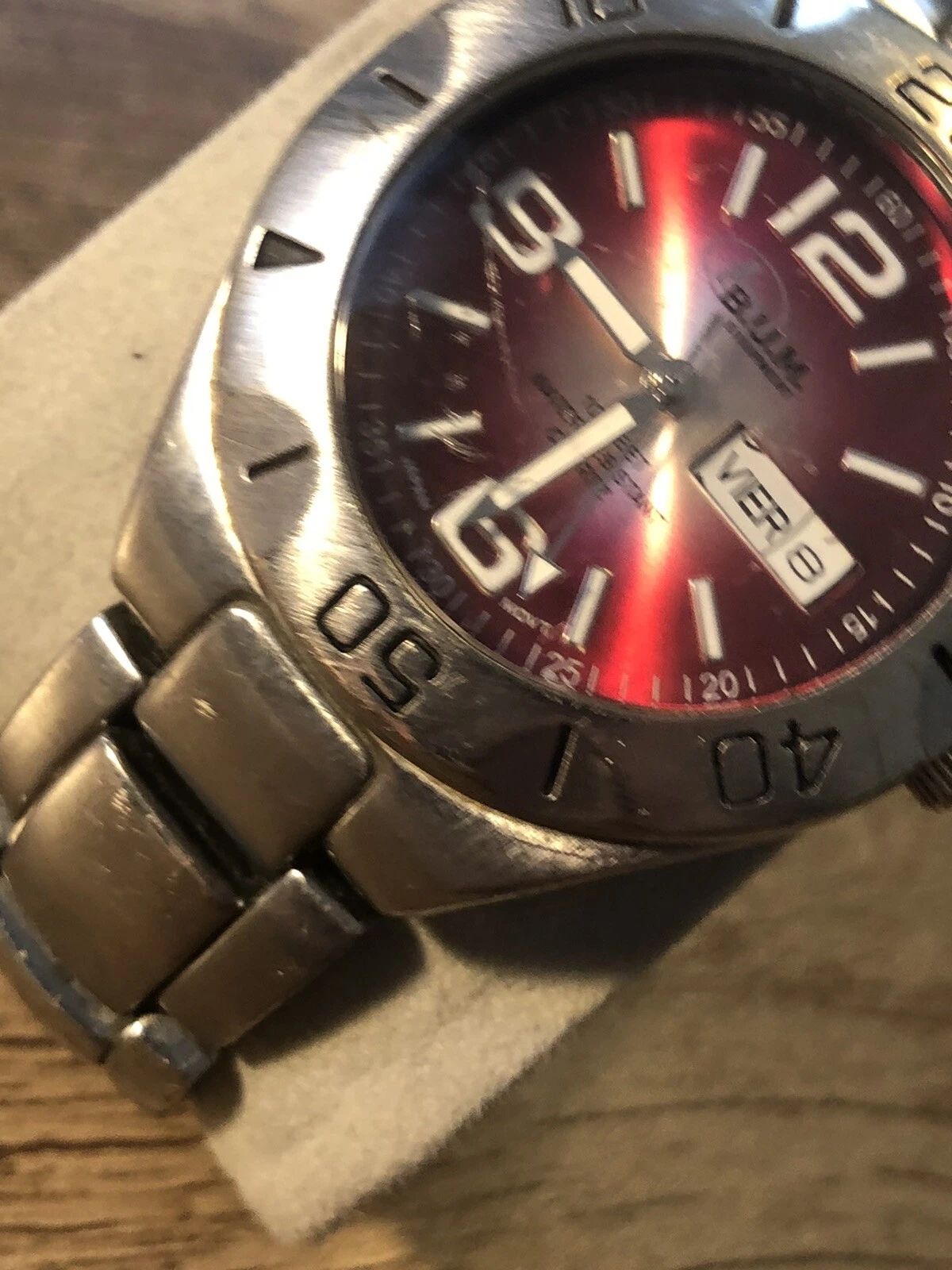 Vintage Bum Equipment men’s watch 100 Feet Water Resistant Red Dial New Battery