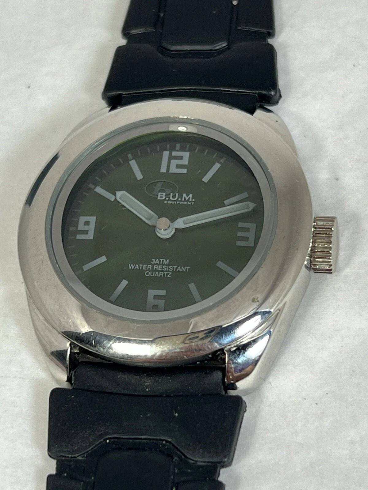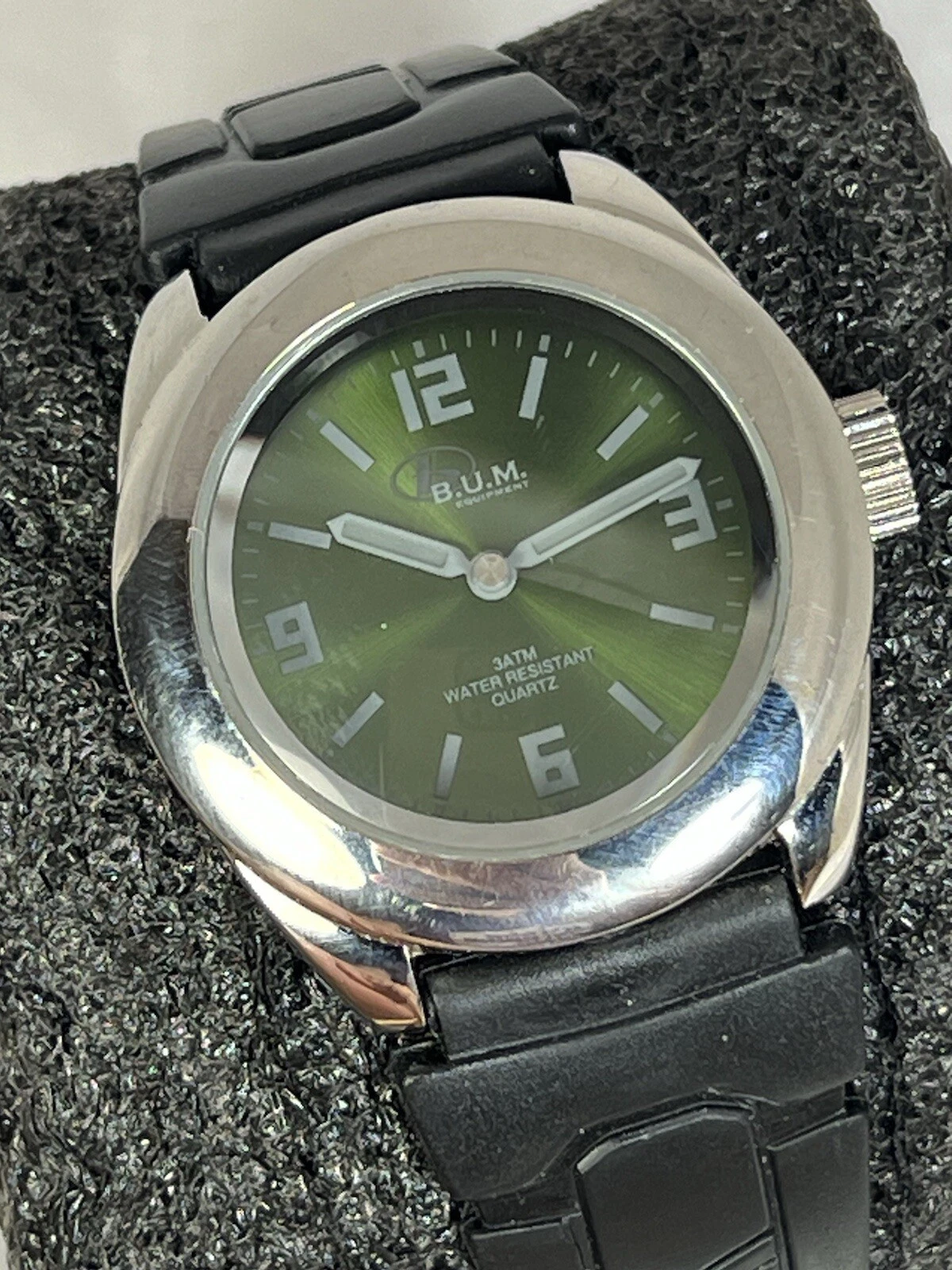 Vintage B.U.M. Equipment Watch w/Color Changing Black To Green Dial -New Battery