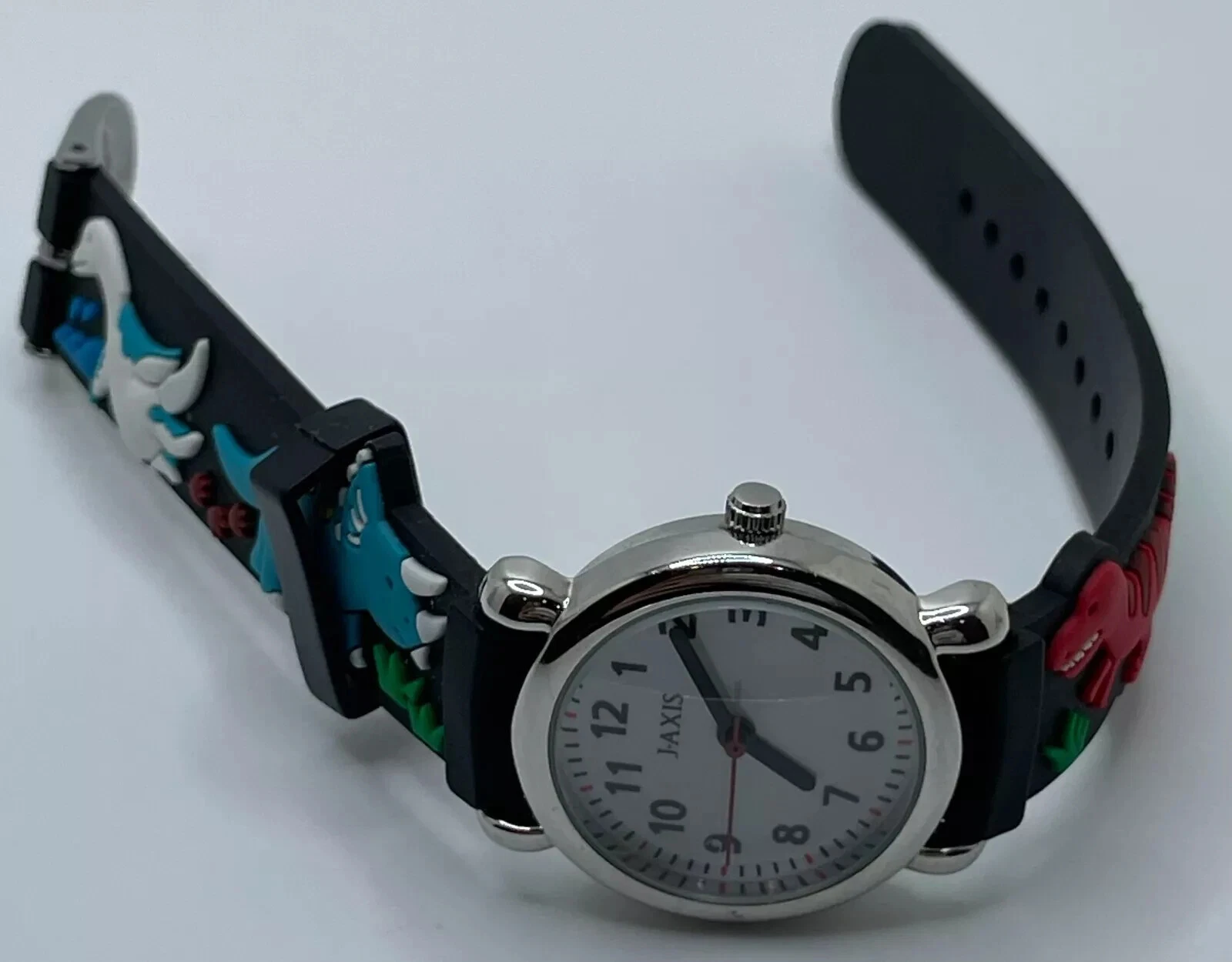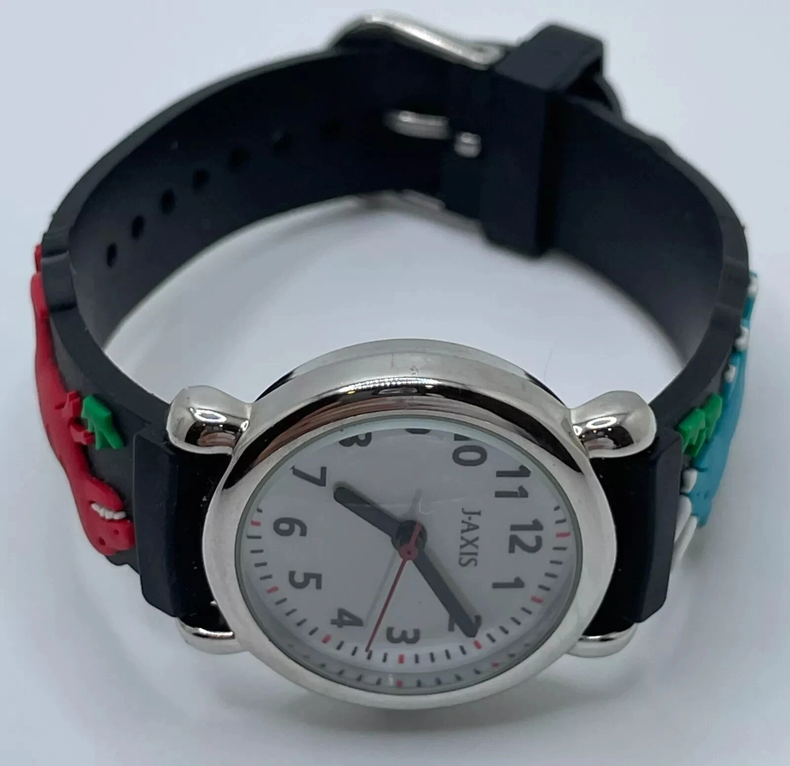 J-Axis Watch Kids Dinosaur 27mm Case Rubber Strap Quartz Three Hands