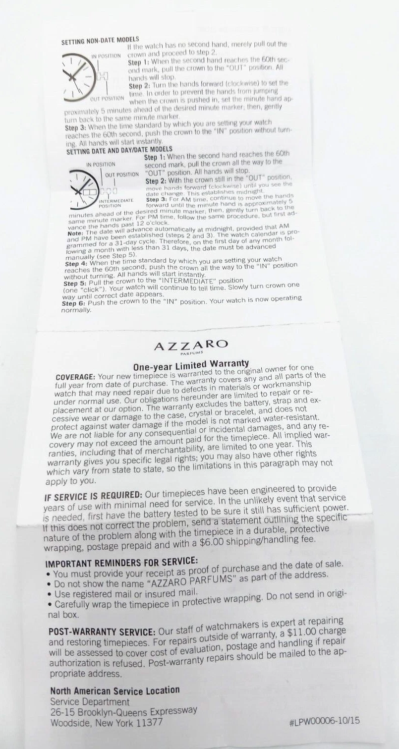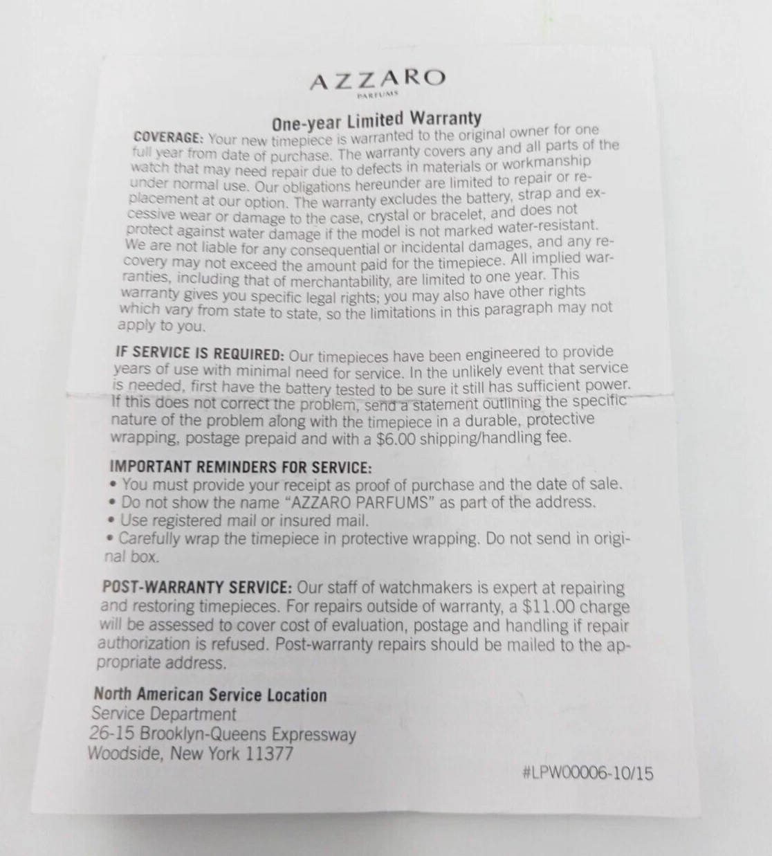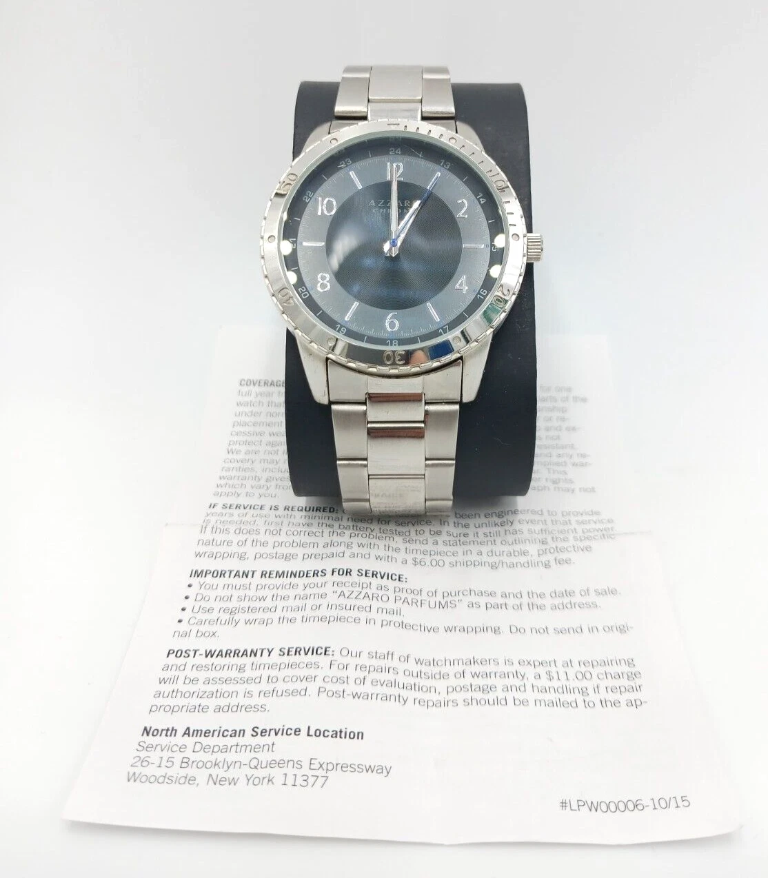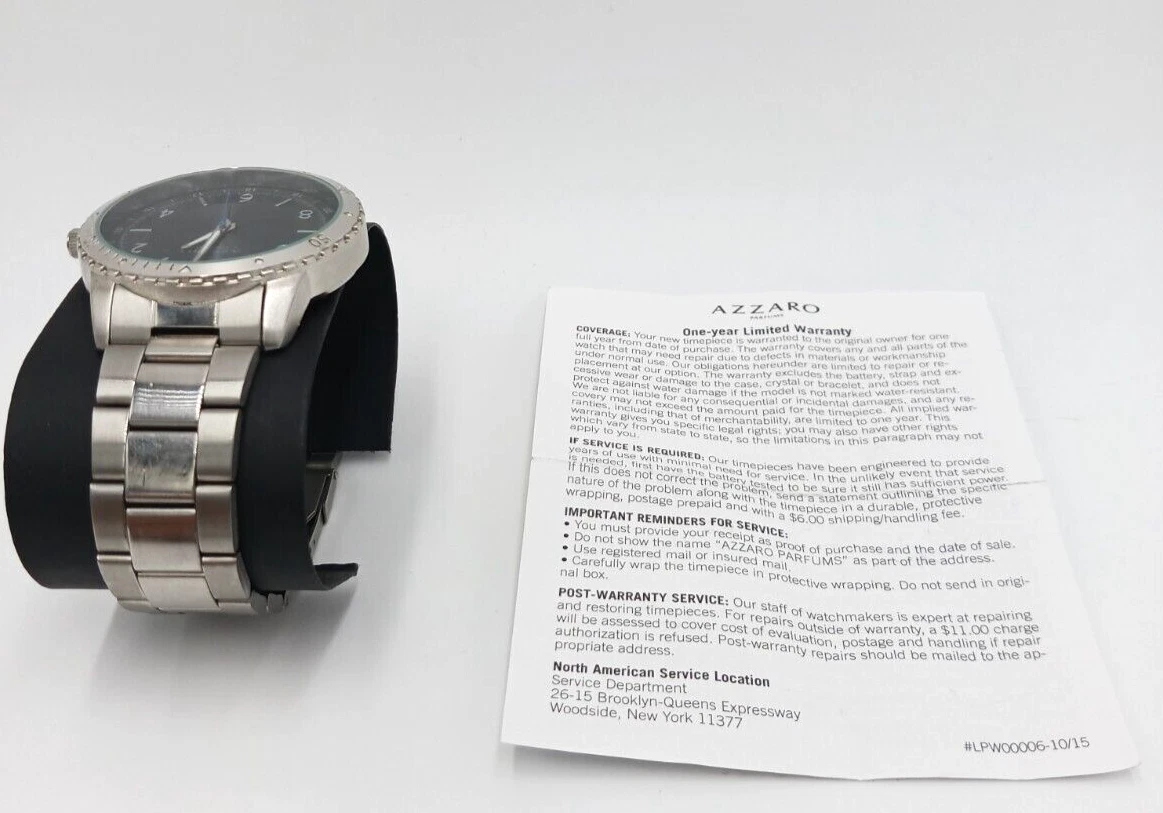 Azzaro Chrome Black Silver Tone Stainless Band Watch