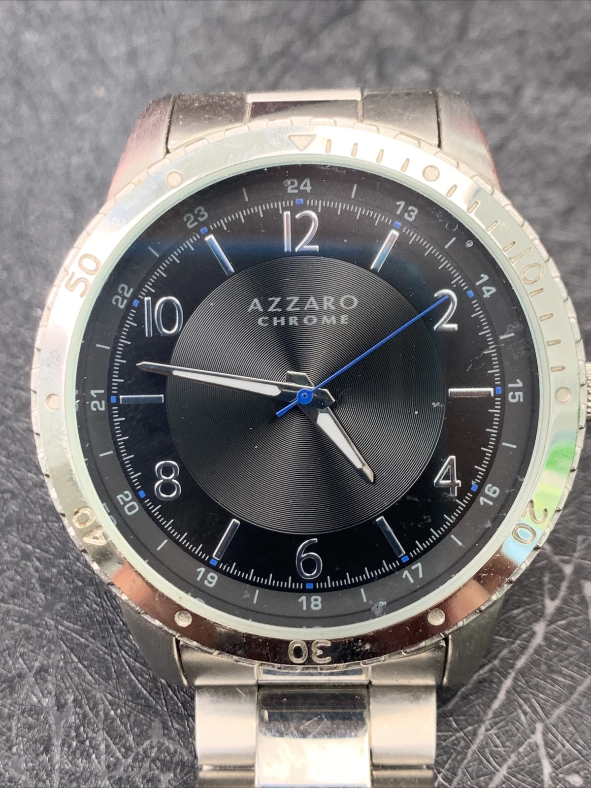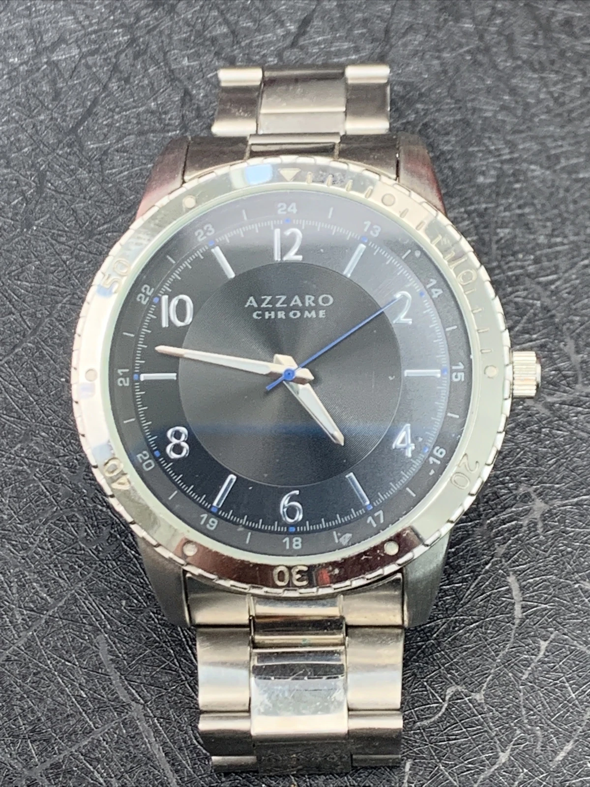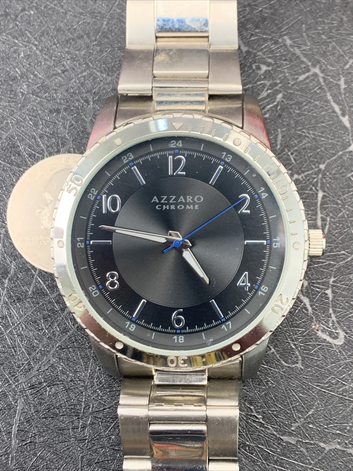 Azzaro Parfums Chrome Watch 36A107 Black Dial Round Stainless Steel Band