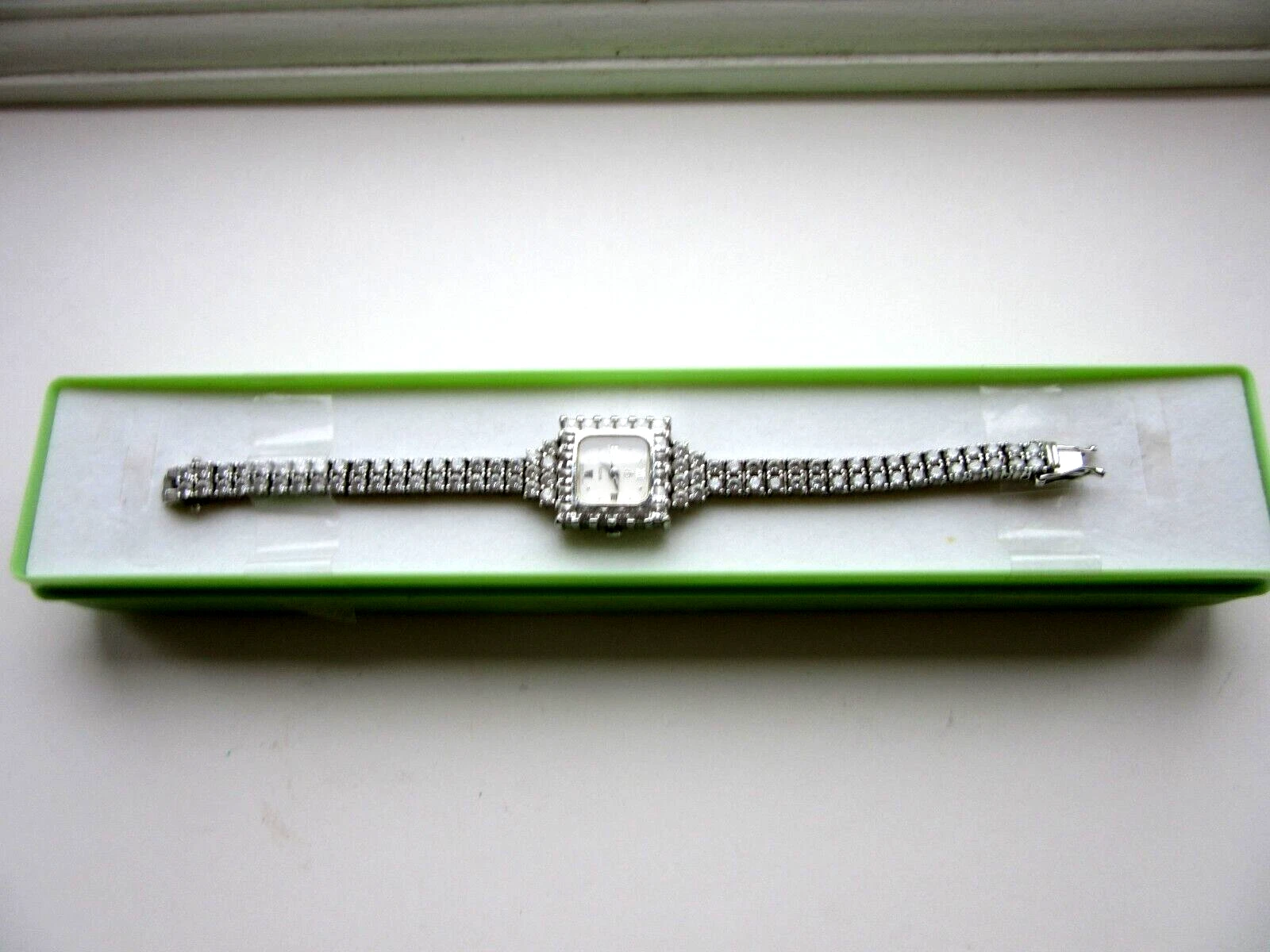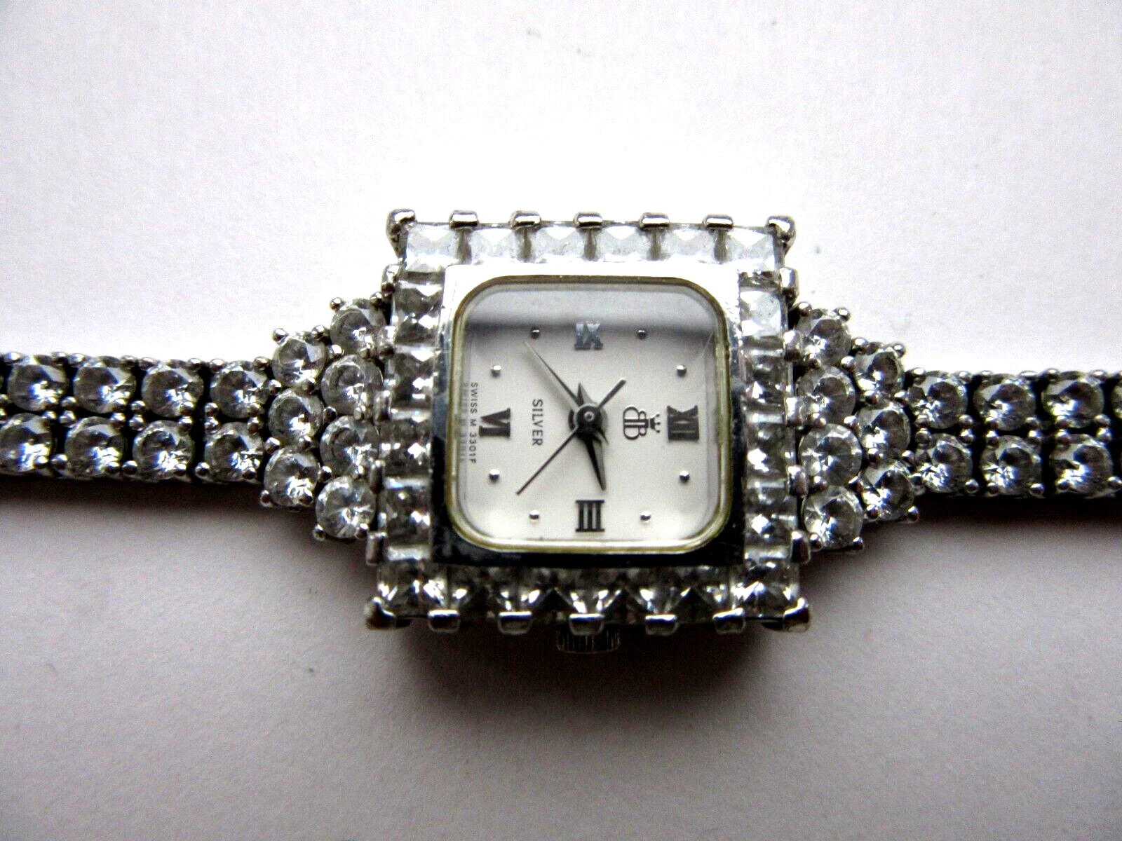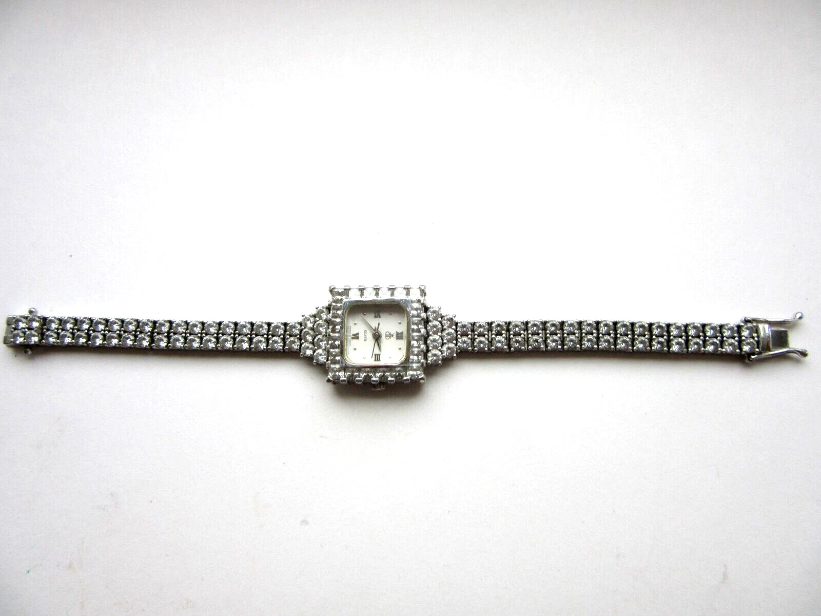 Stunning Vintage B.B. Sterling Silver & Sapphire Crystal Ladies Wrist Watch, W/O