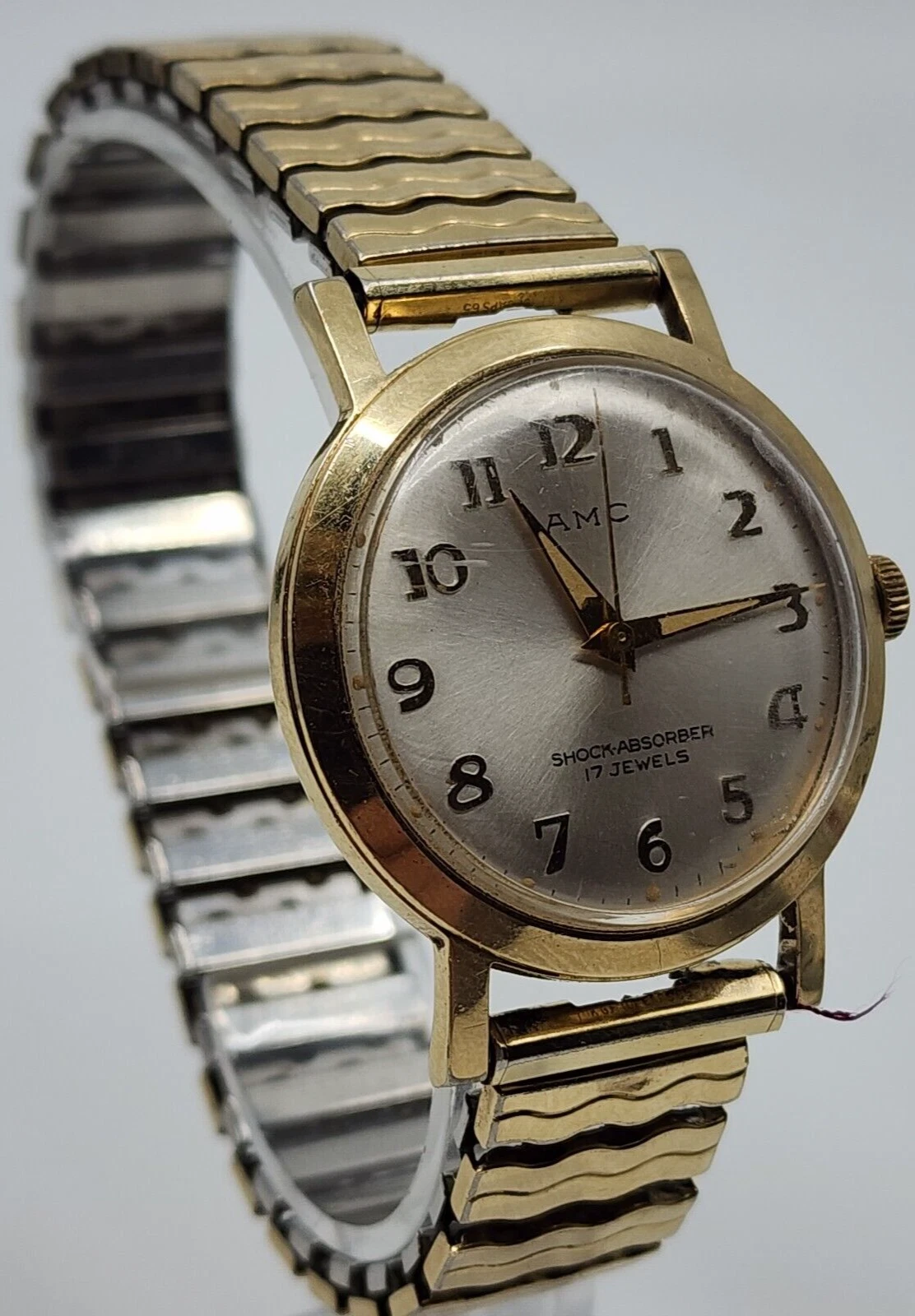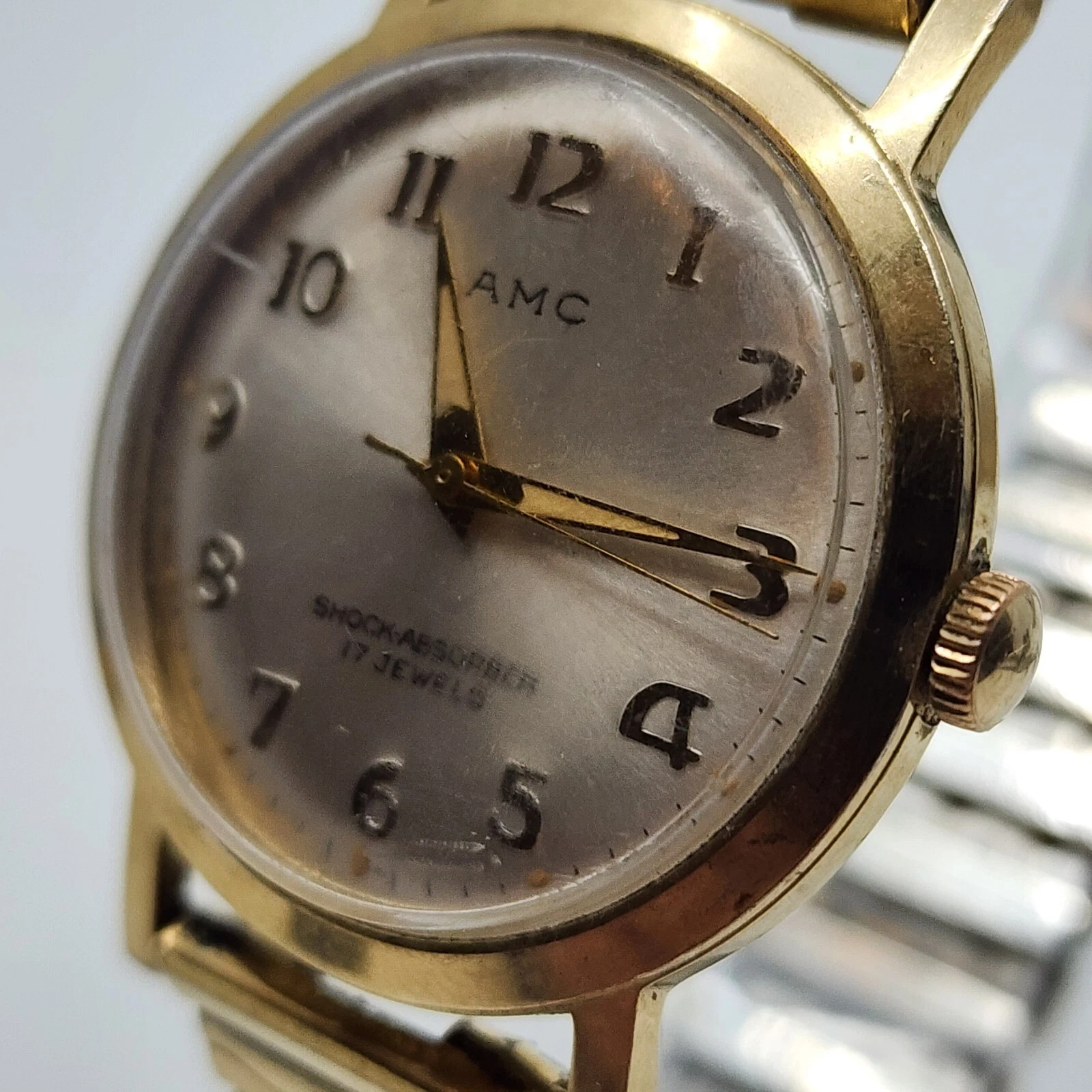 Vintage AMC Cal 11e4bb 17 Jewels Shock Absorber Watch Running Well