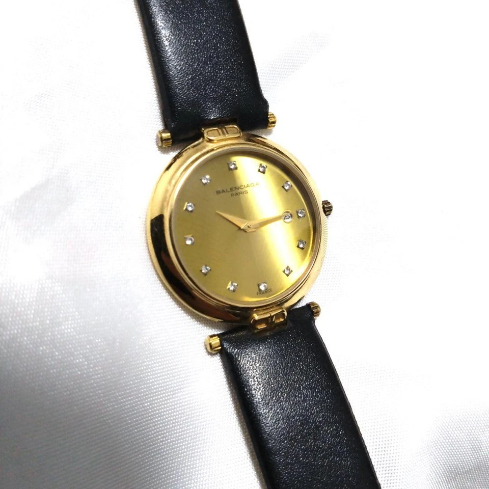 Super Balenciaga 12P Diamond Date Gold Watch