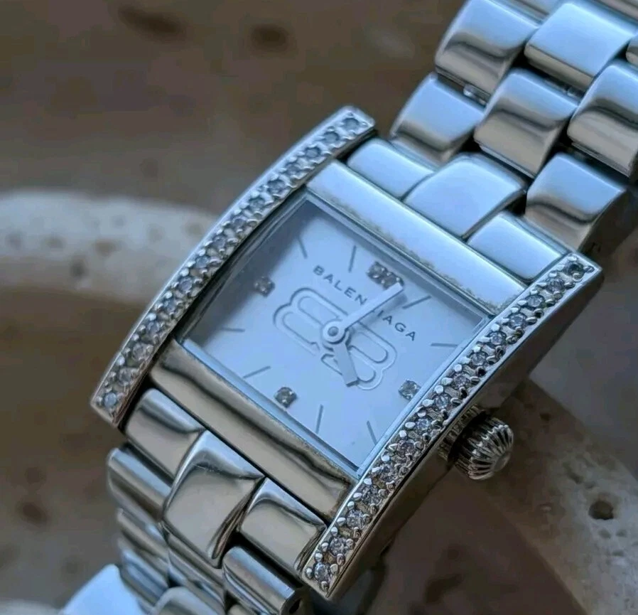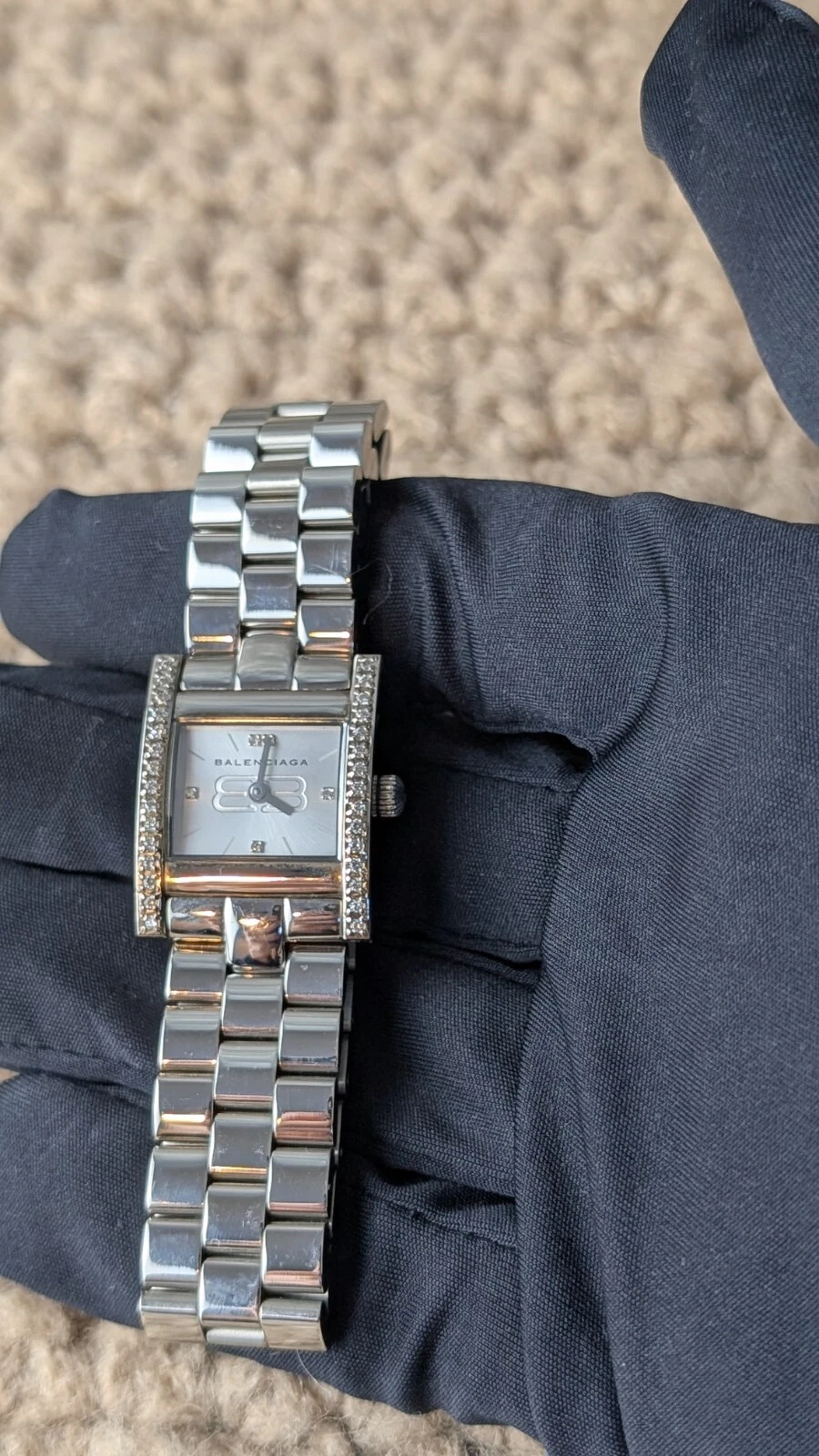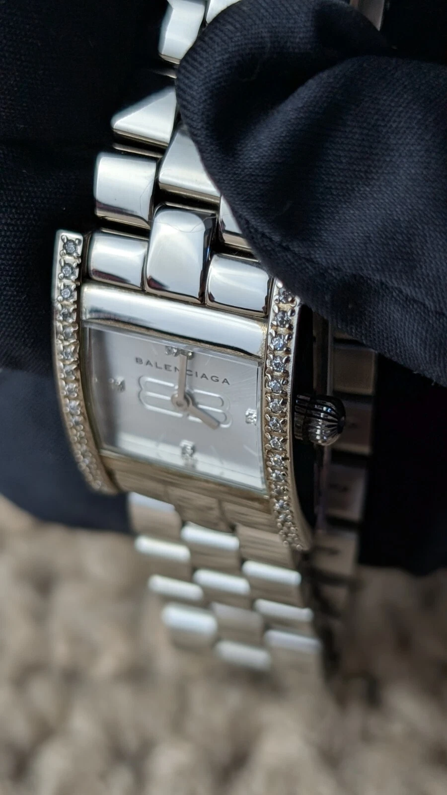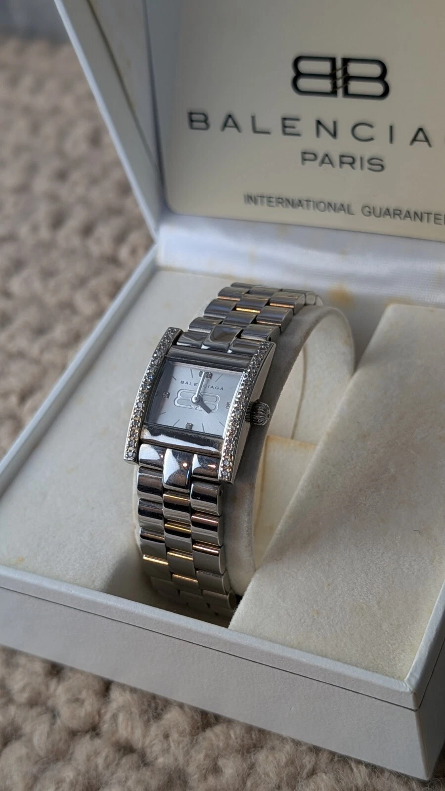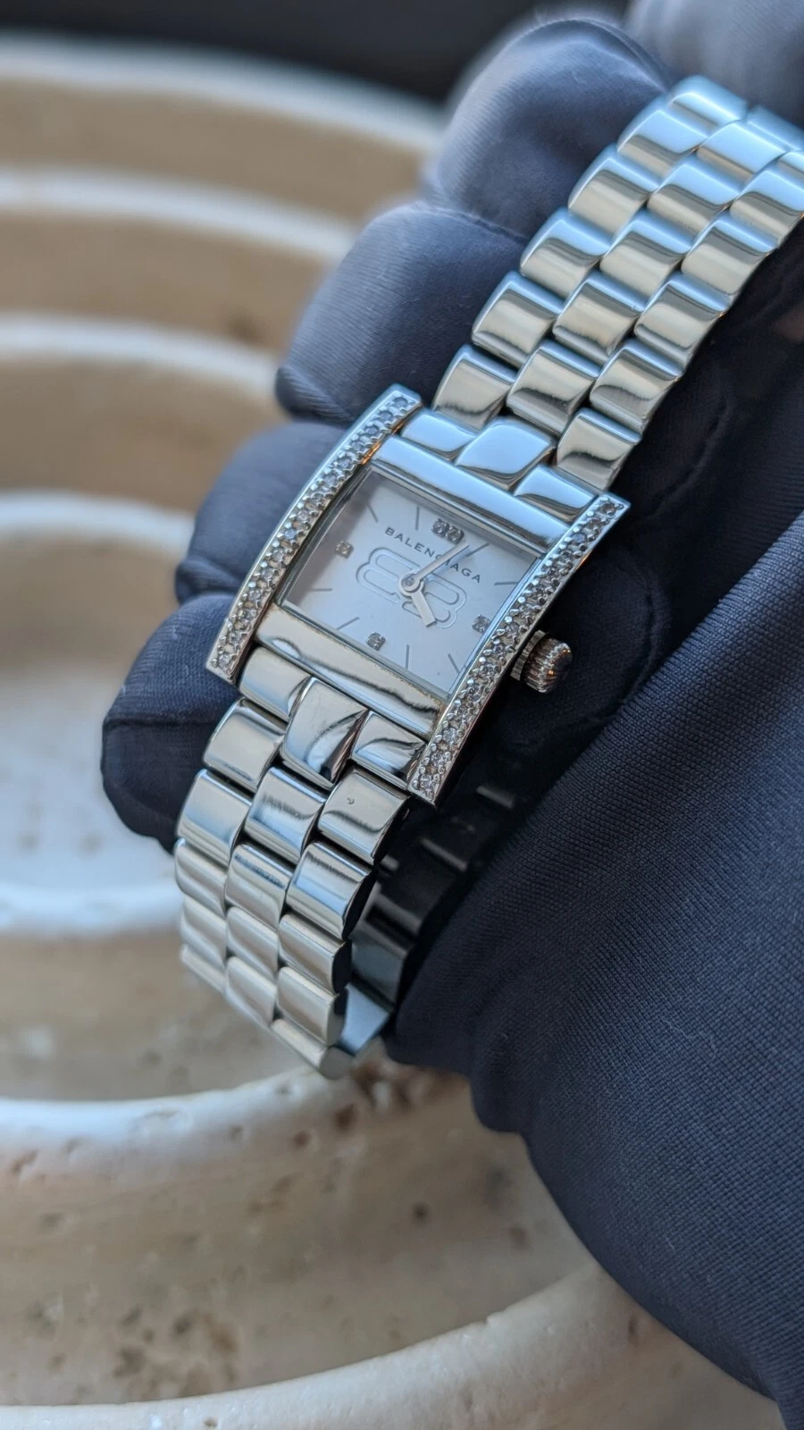 Wristwatch Balenciaga Paris 0547 Stone Bezel GOAC Water Resistant Silver Dial