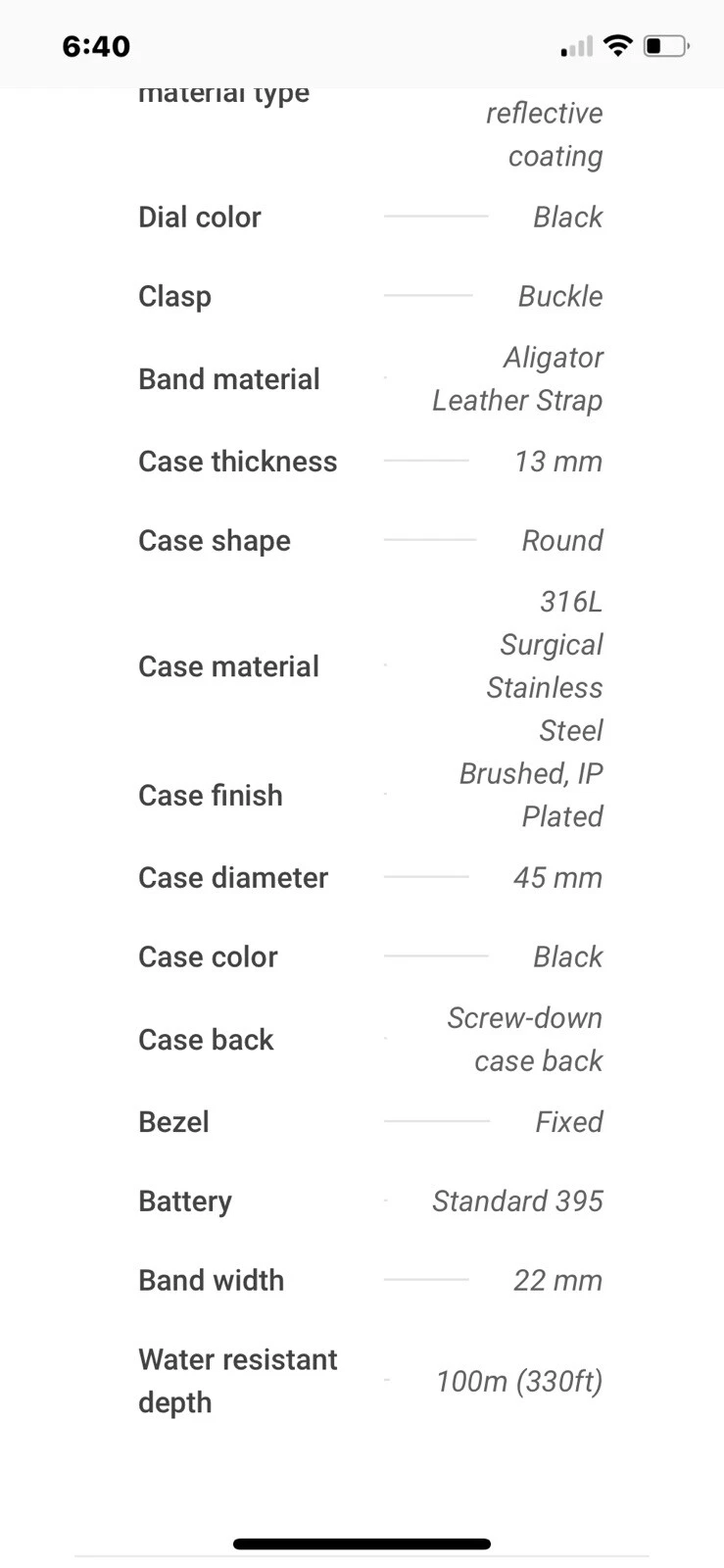 Water Resistance:100 m (10 ATM)