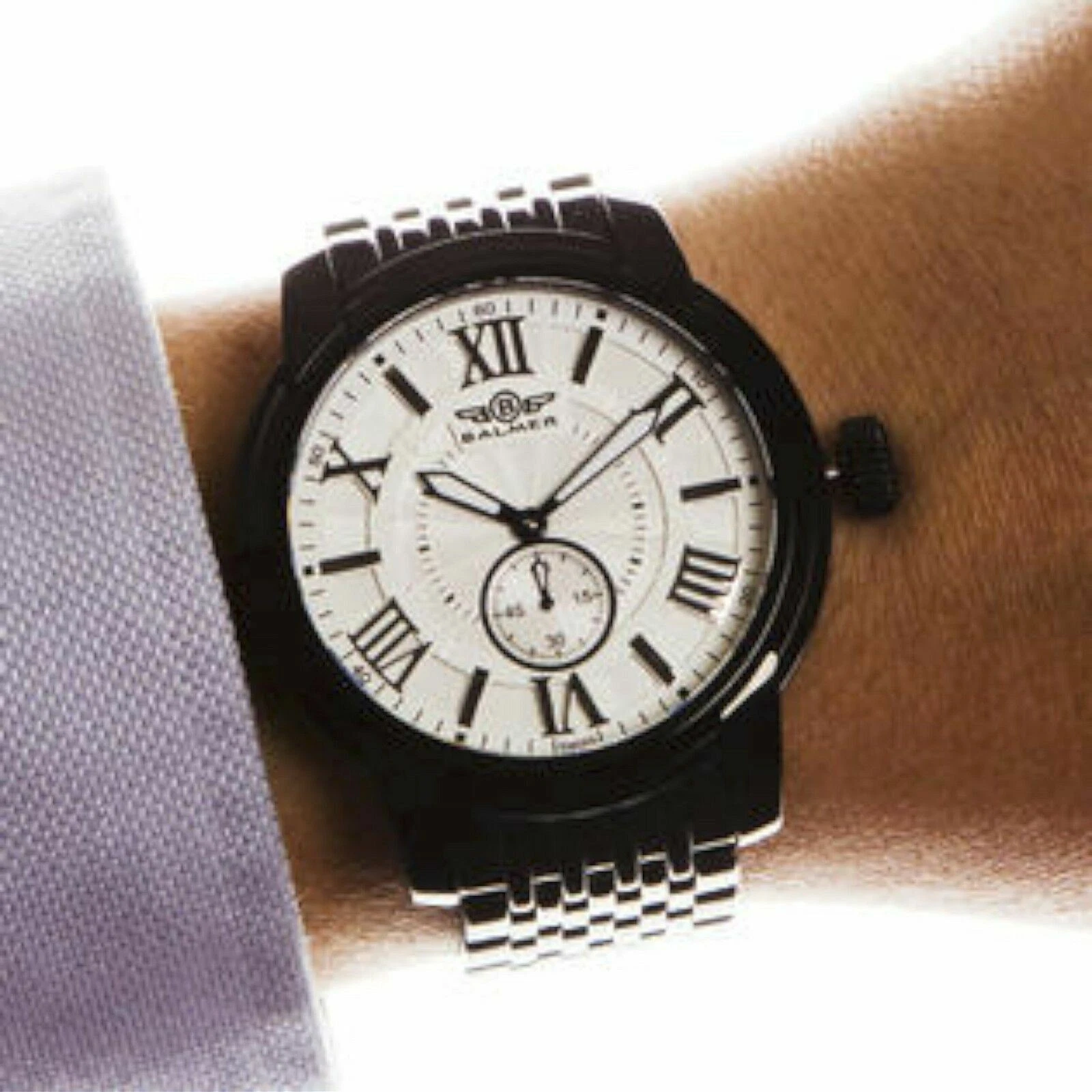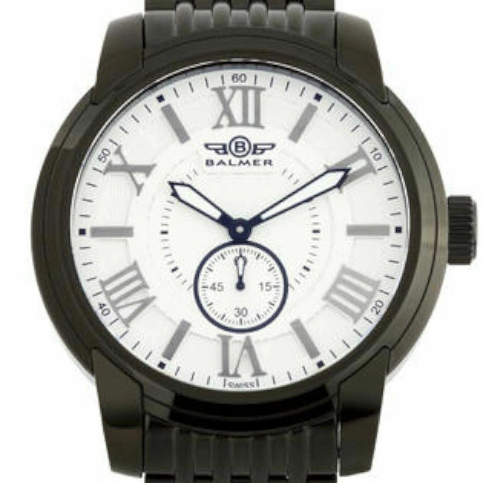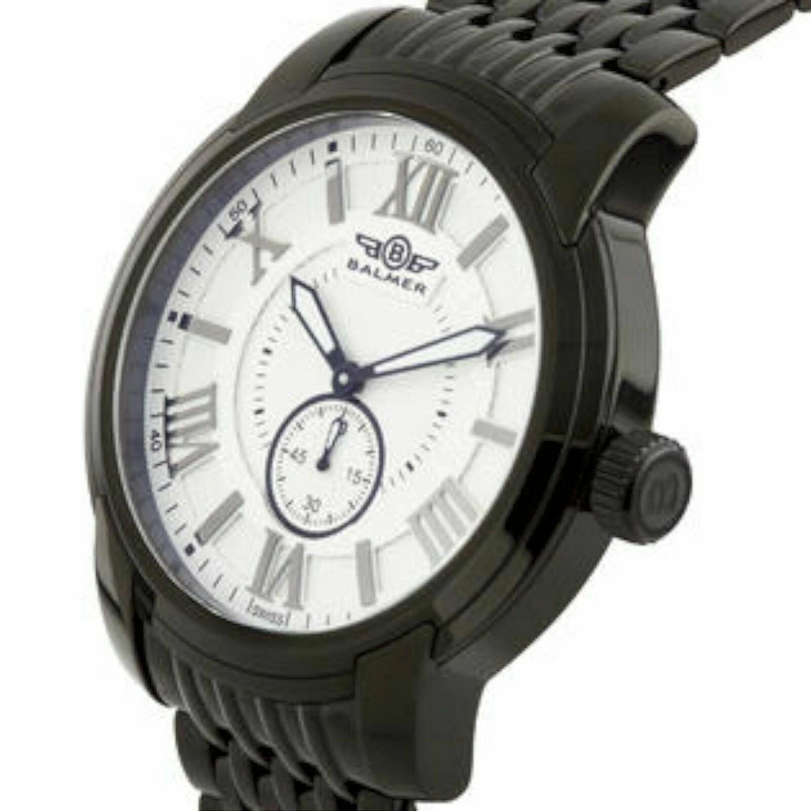 NEW Balmer 14058 Mens Noble Collection White Dial Black St Steel Mesh Band Watch