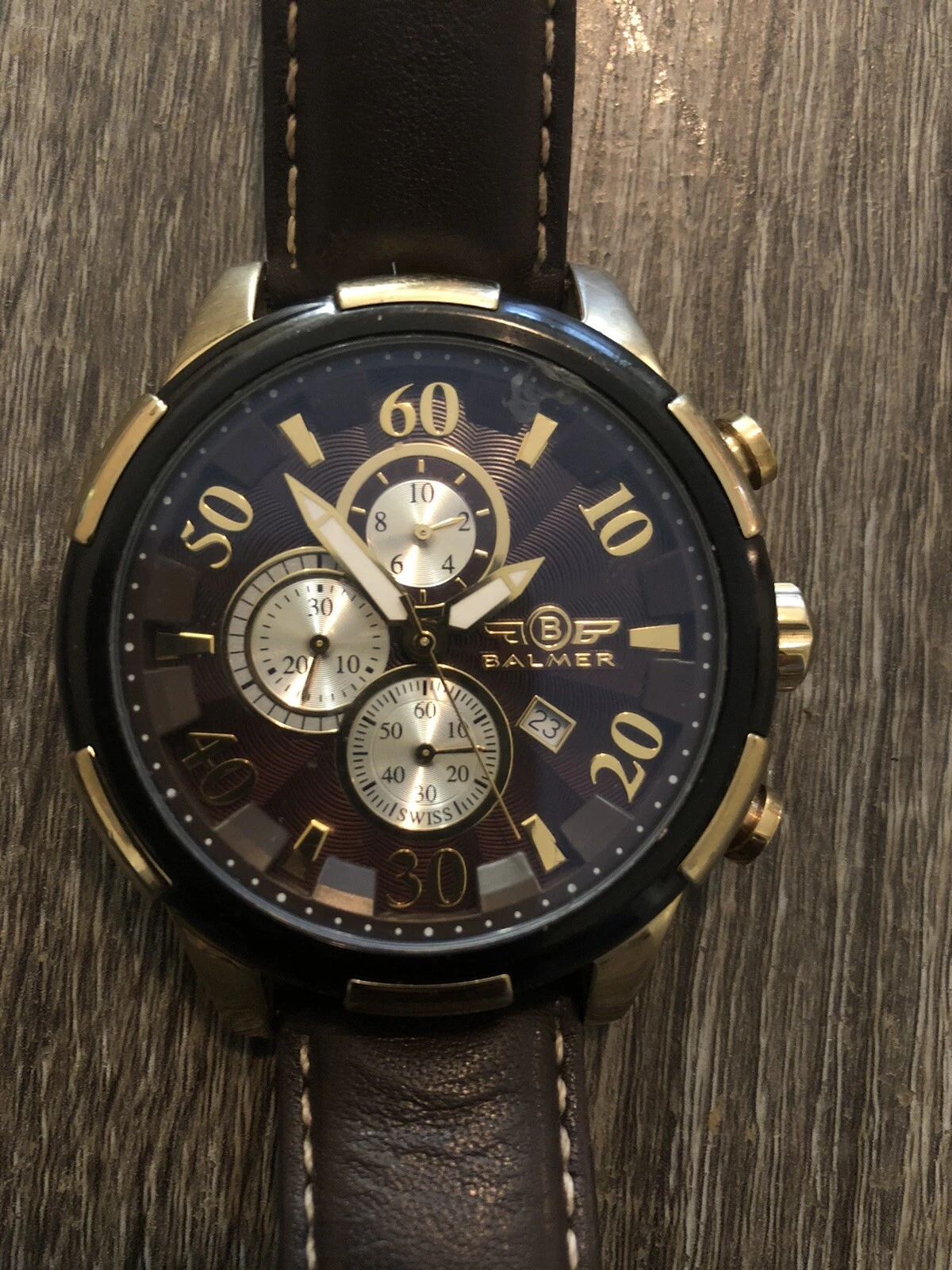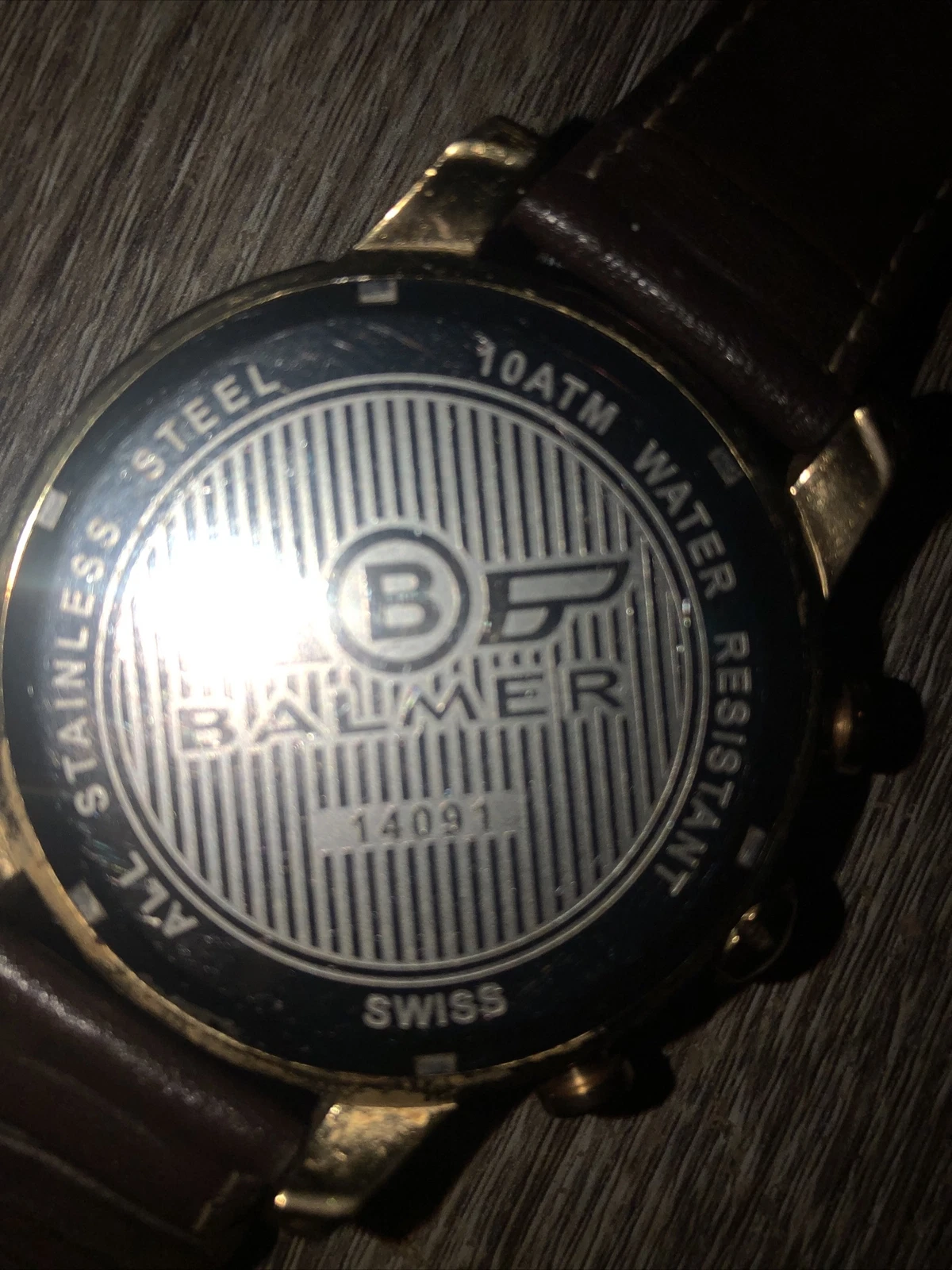 Balmer 14091 Men's Watch Round 45mm Gold/Genuine leather In Working Condition