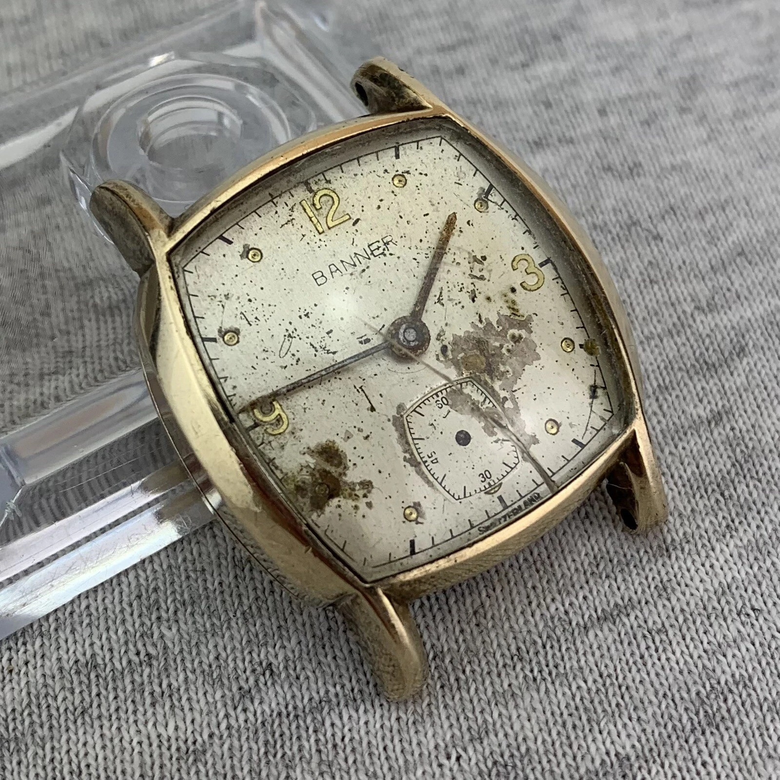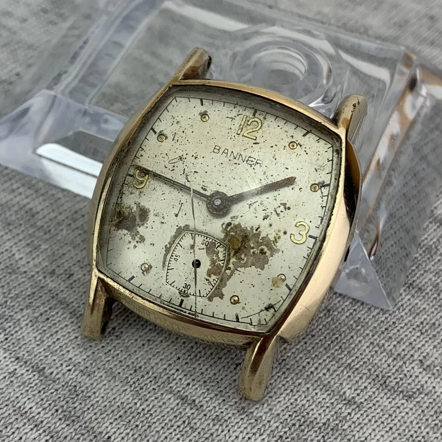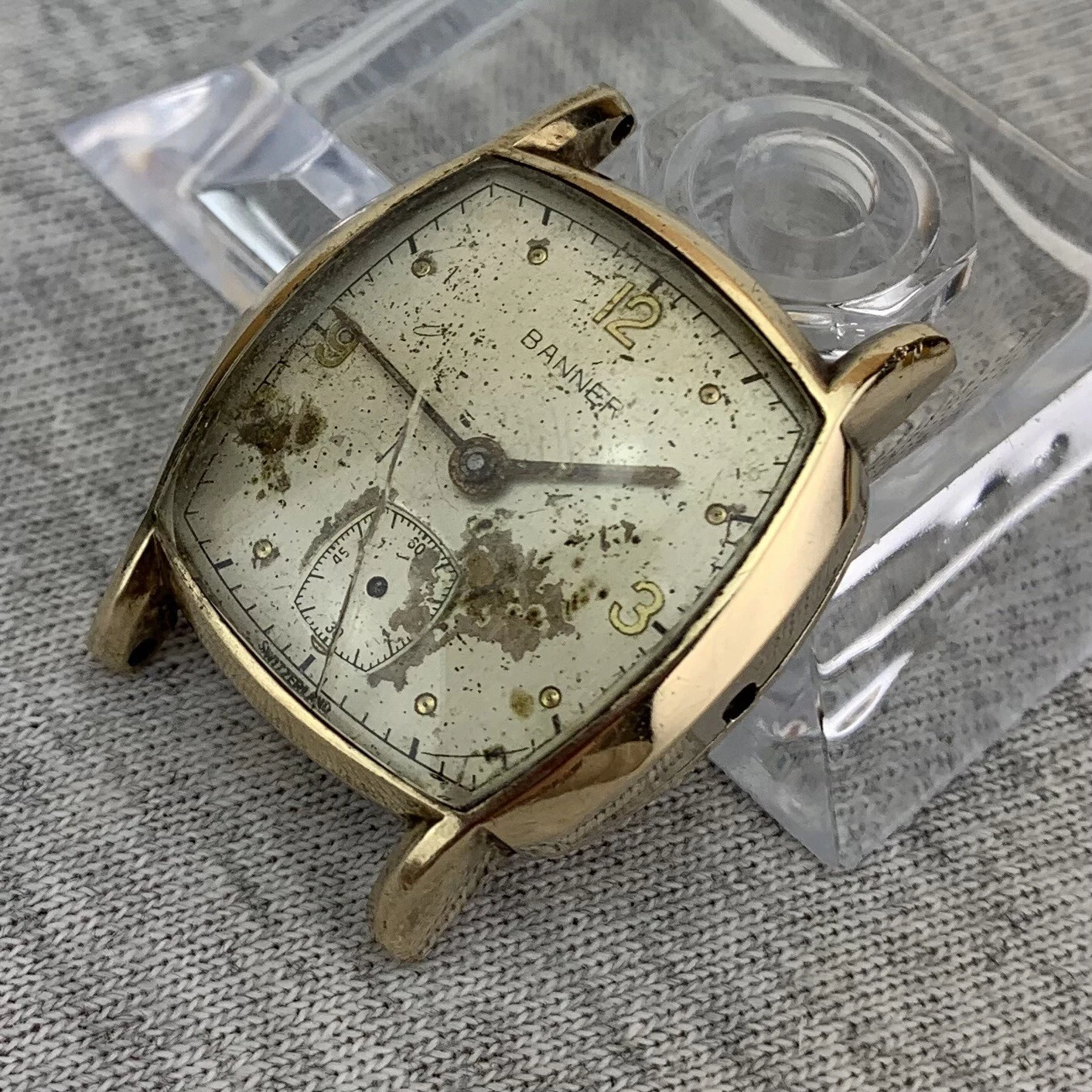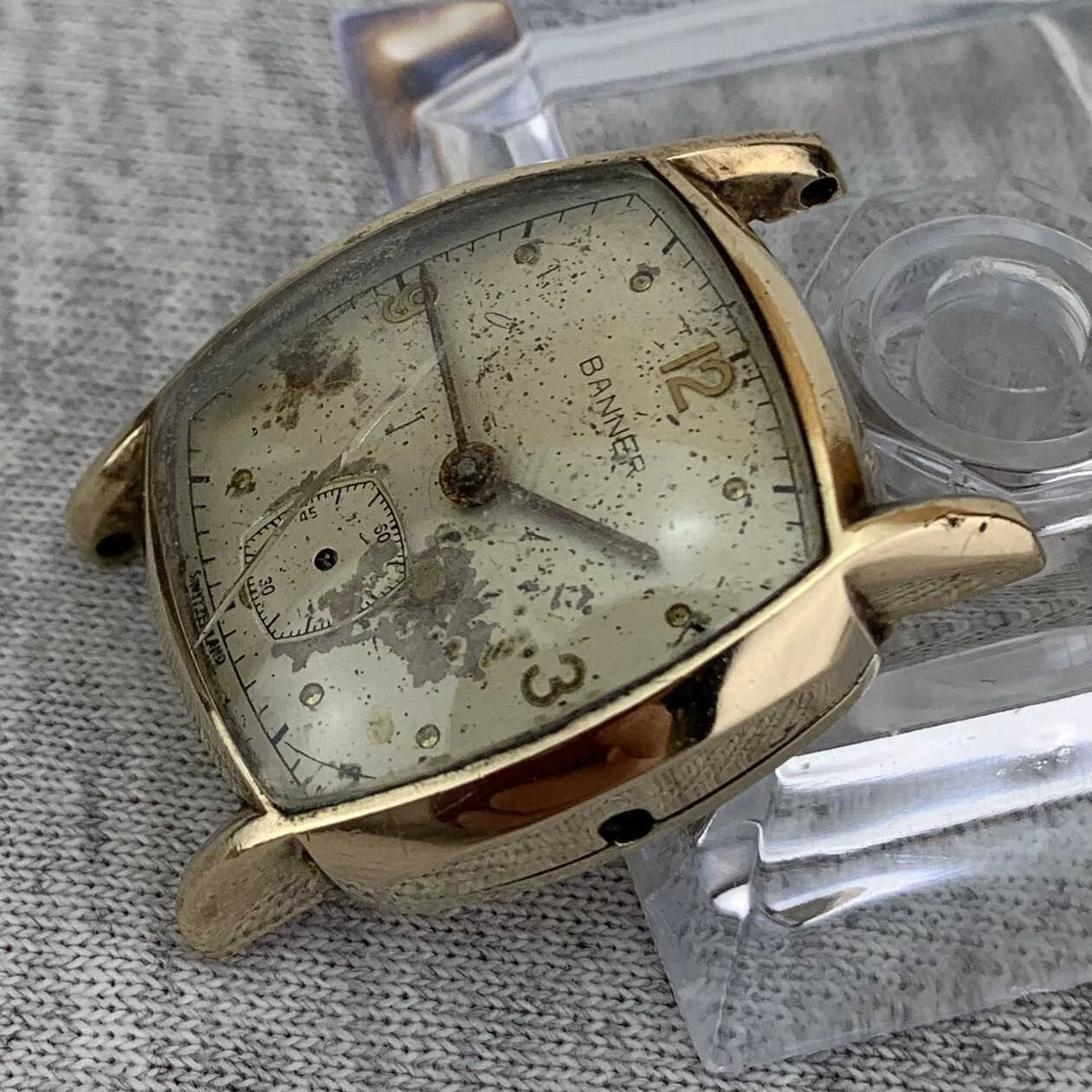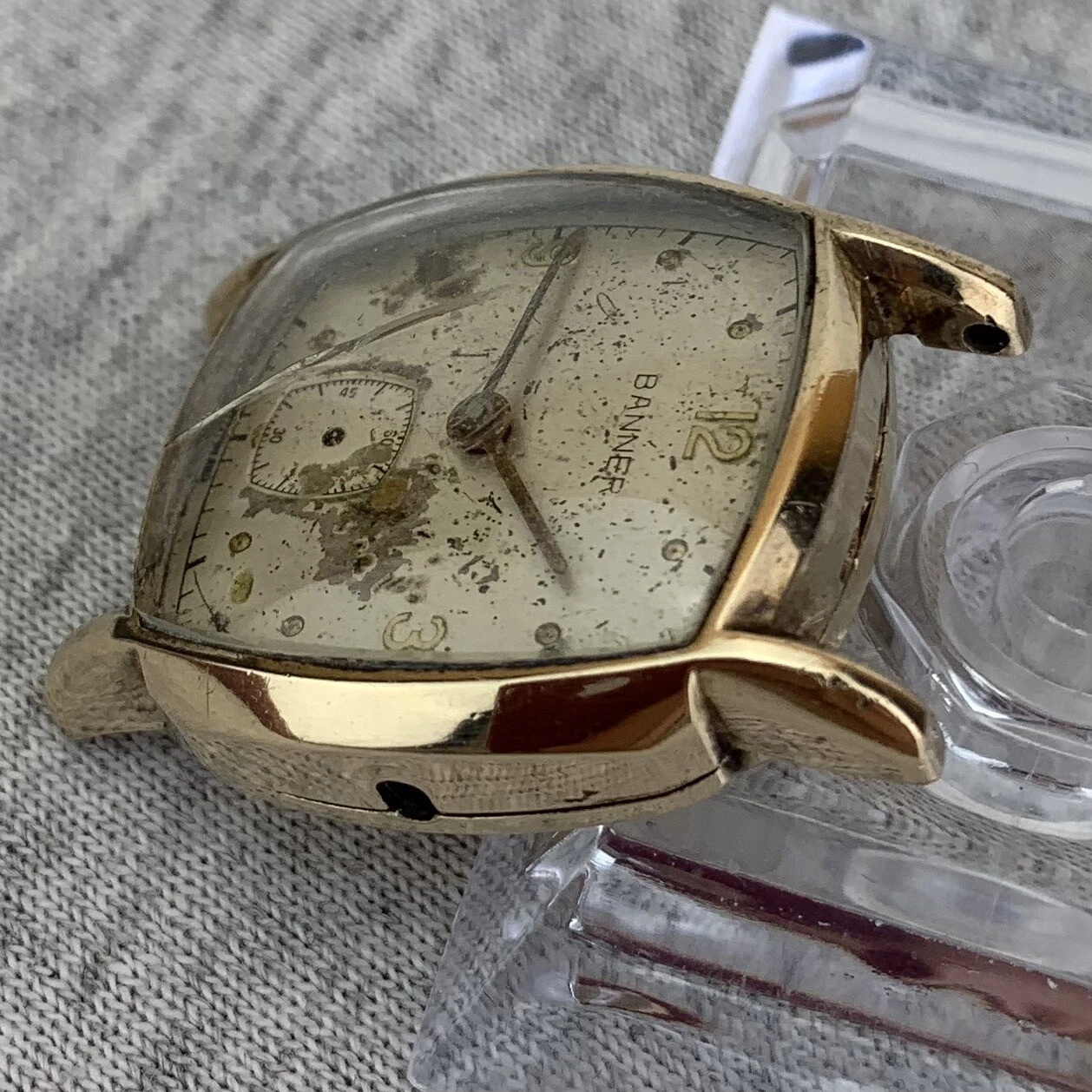 Vintage Banner Mens Watch 1940’s Sub Dial 10K Gold Filled 28mm Repair Parts