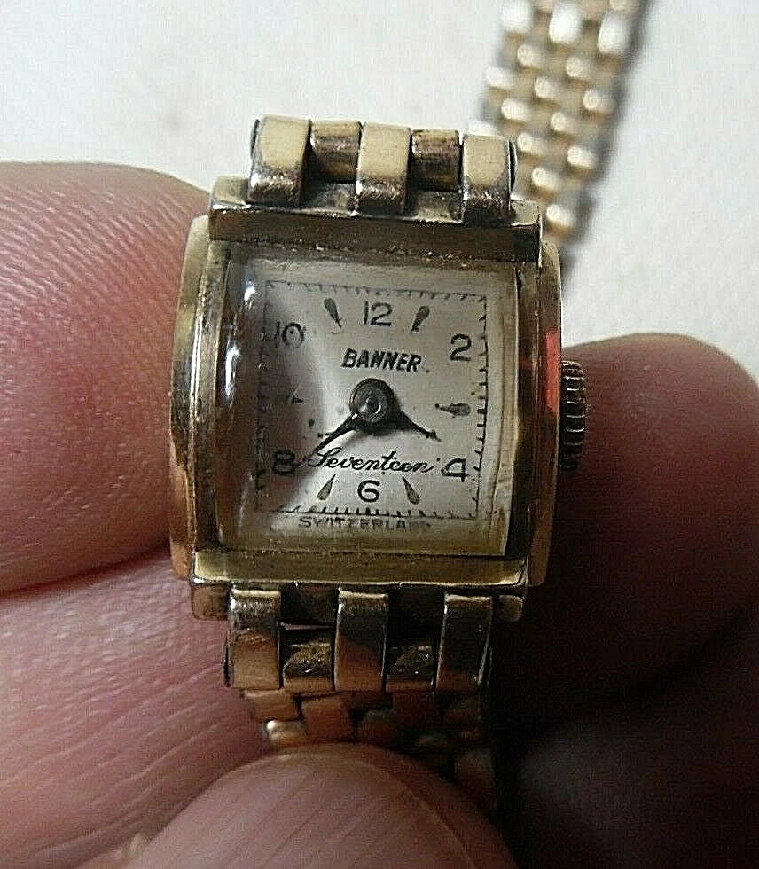 VINTAGE 1940'S BANNER SEVENTEEN 17J 10K RGP CASE & BAND WOMENS WRISTWATCH SWISS