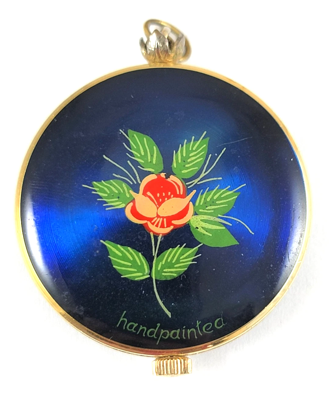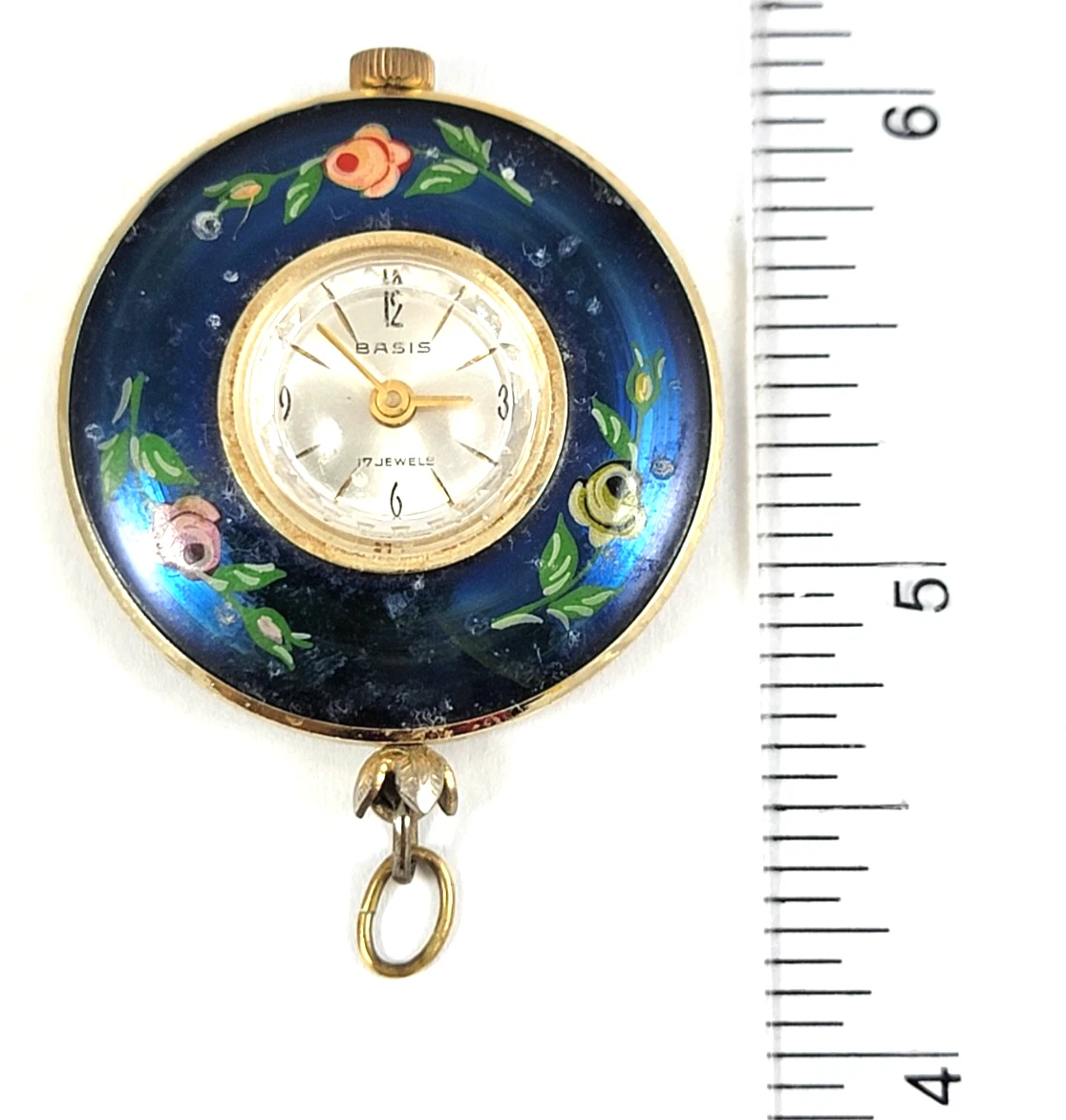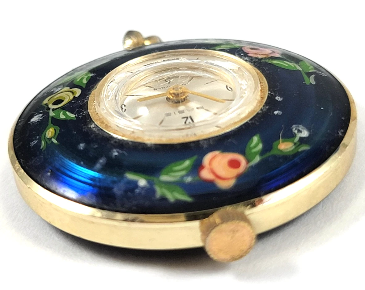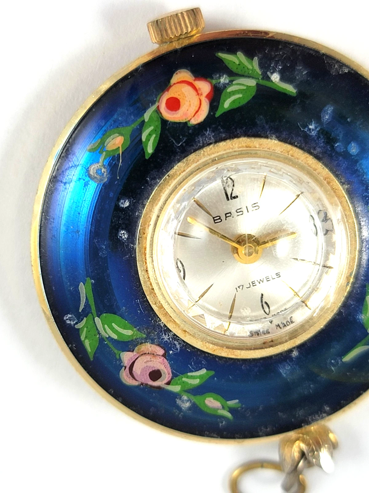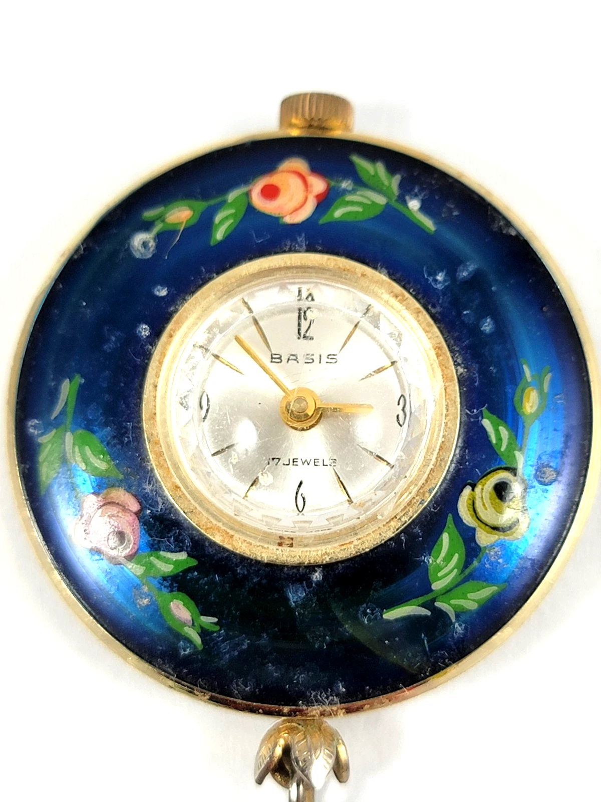 Vintage Basis Hand Painted Pendant Watch 17 Jewel Royal Blue