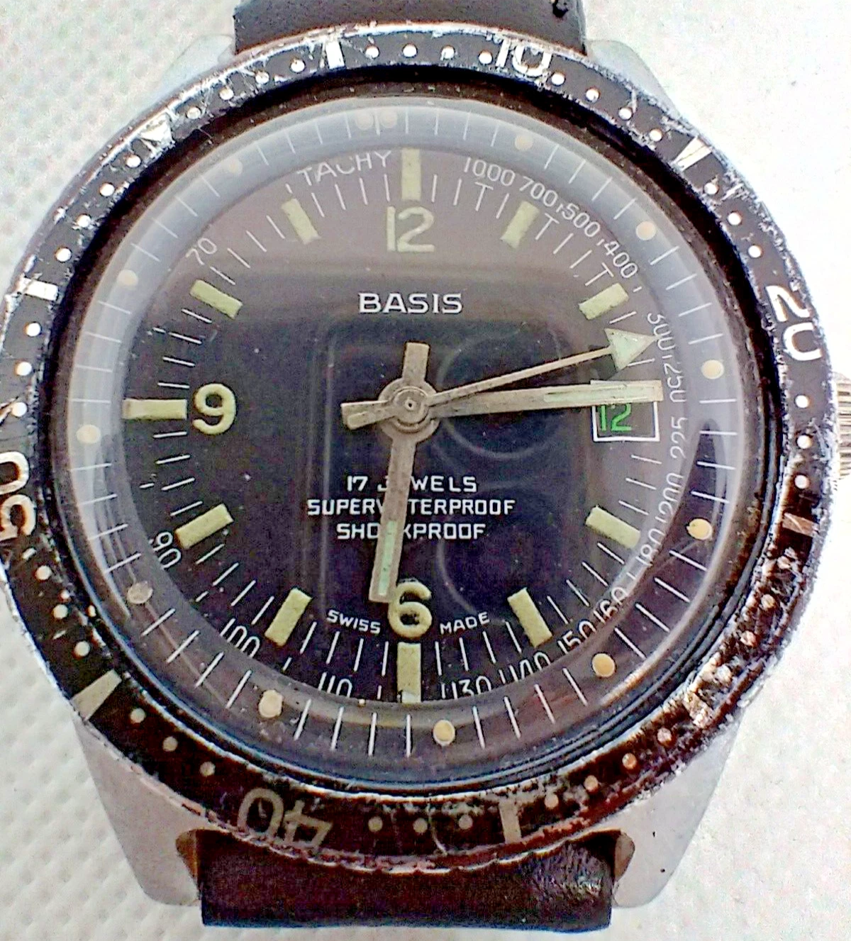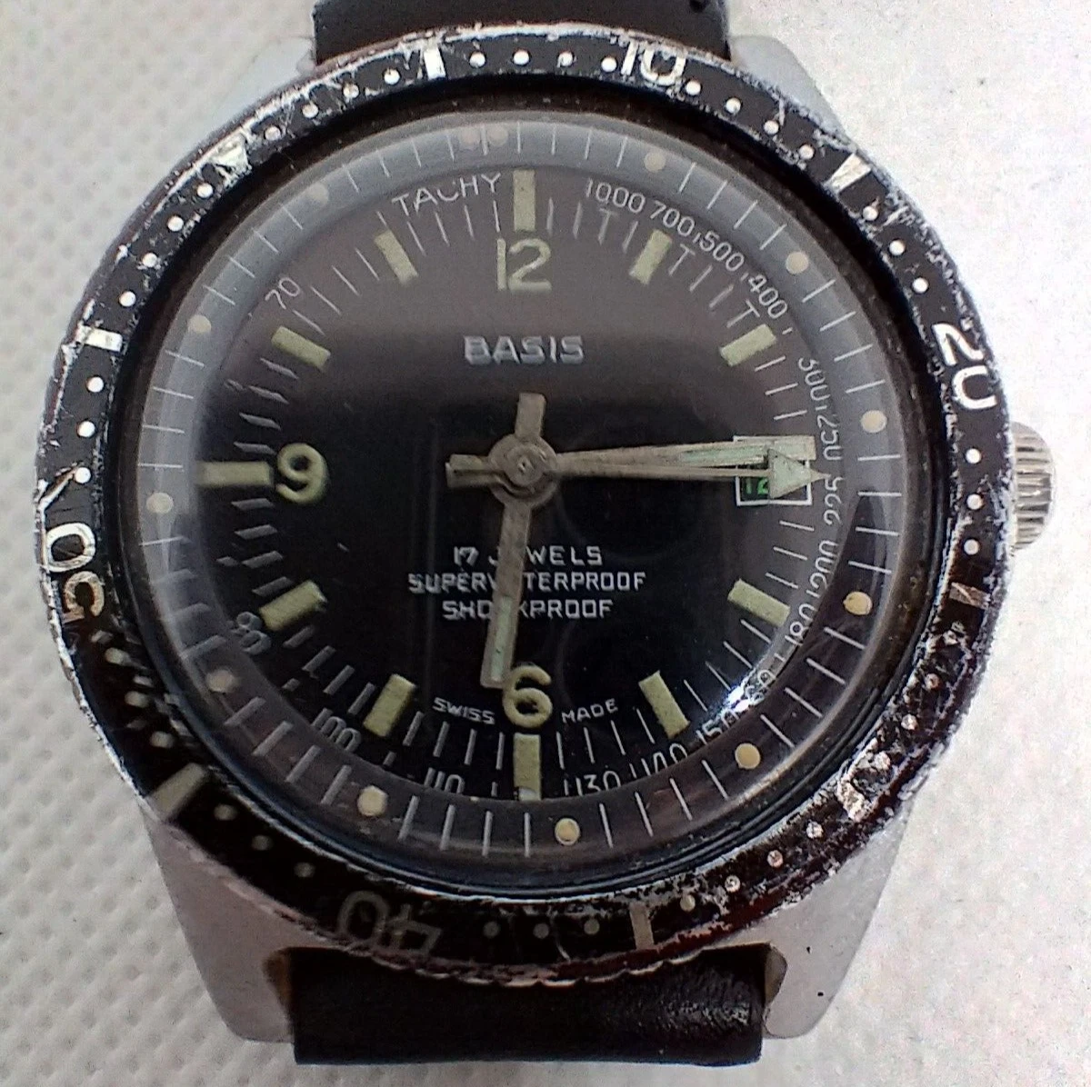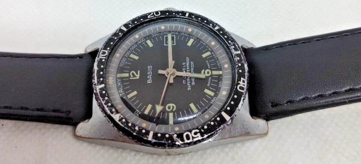Vintage Men's Diver Watch Basis 17 Jewels Swiss Made