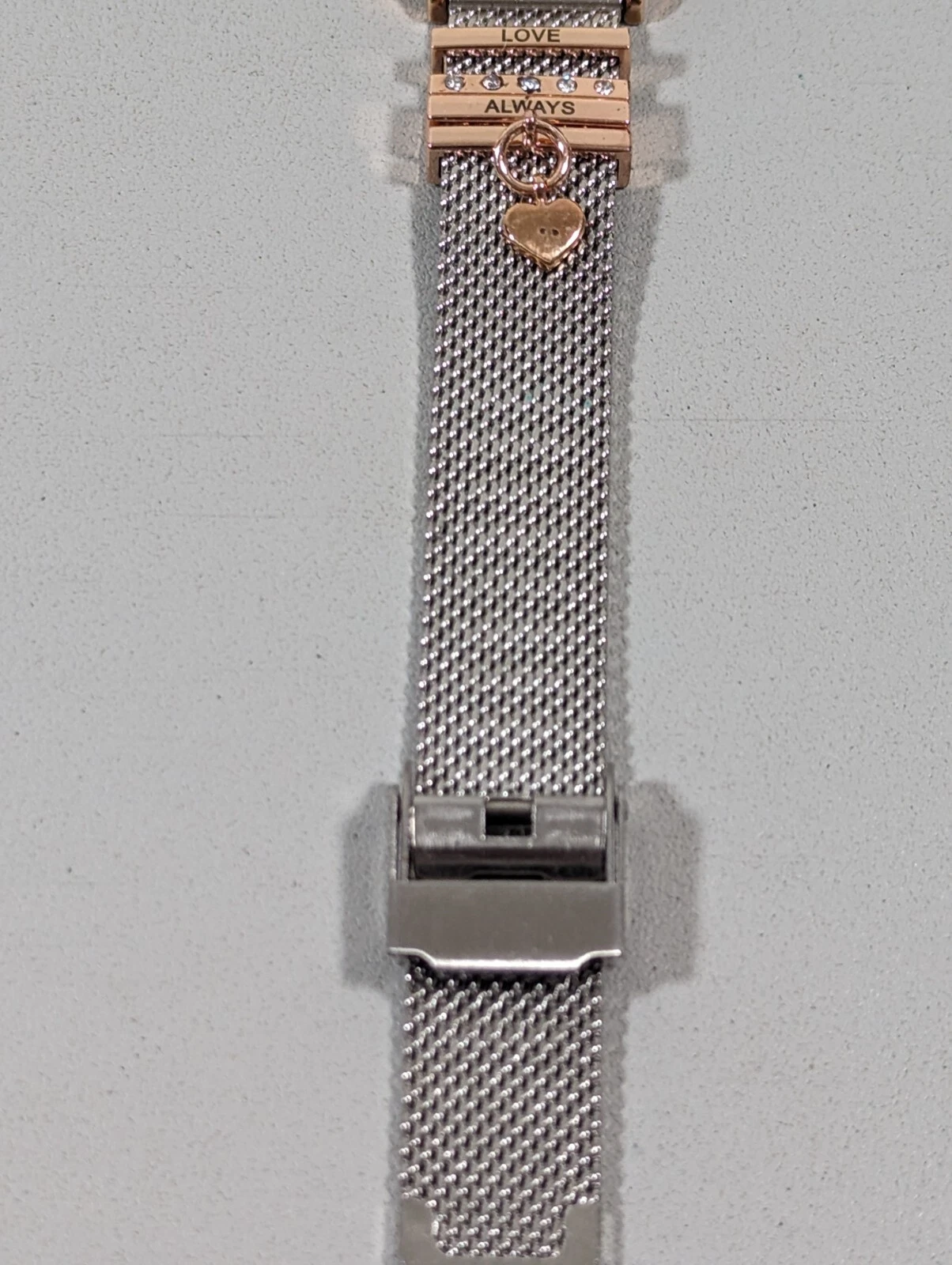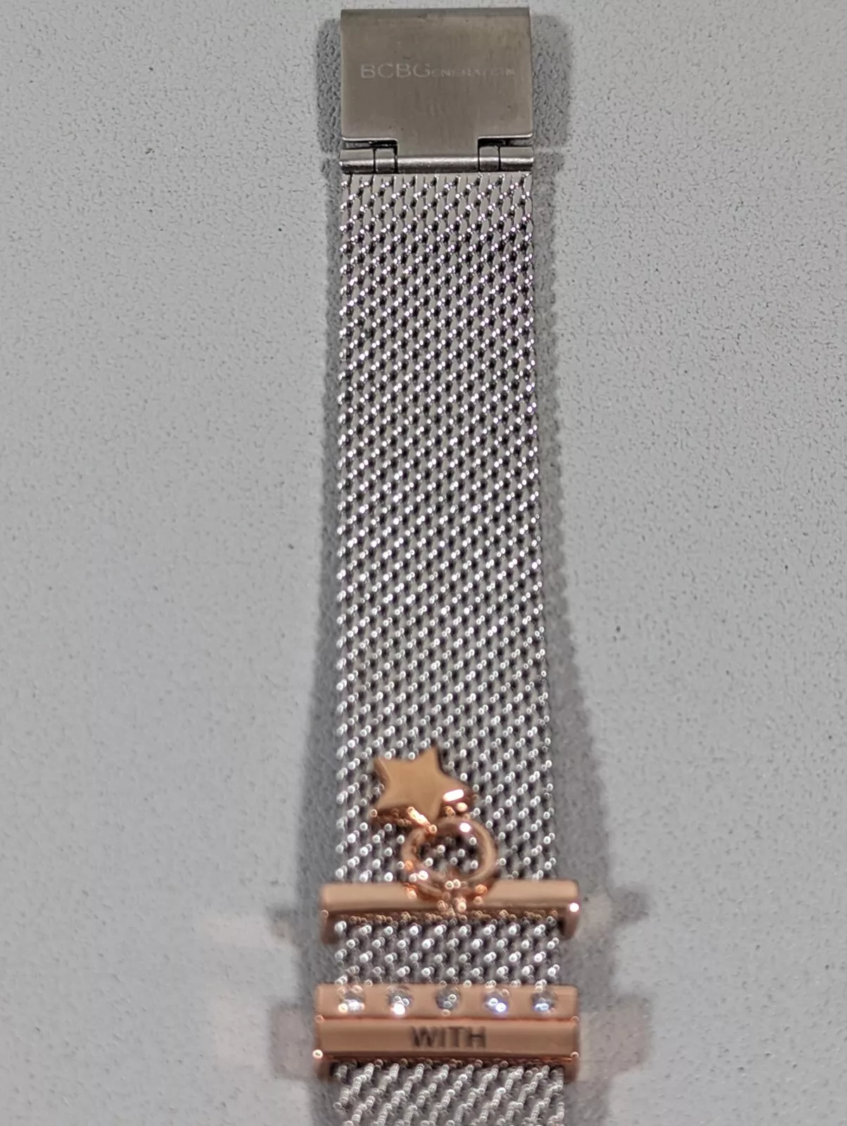 BCBGeneration Gold Tone Round Case Stainless Steel Mesh Style Band Watch