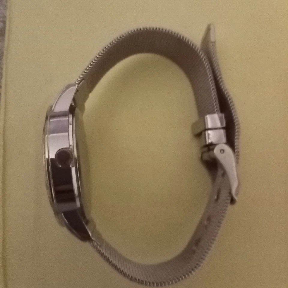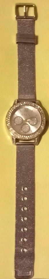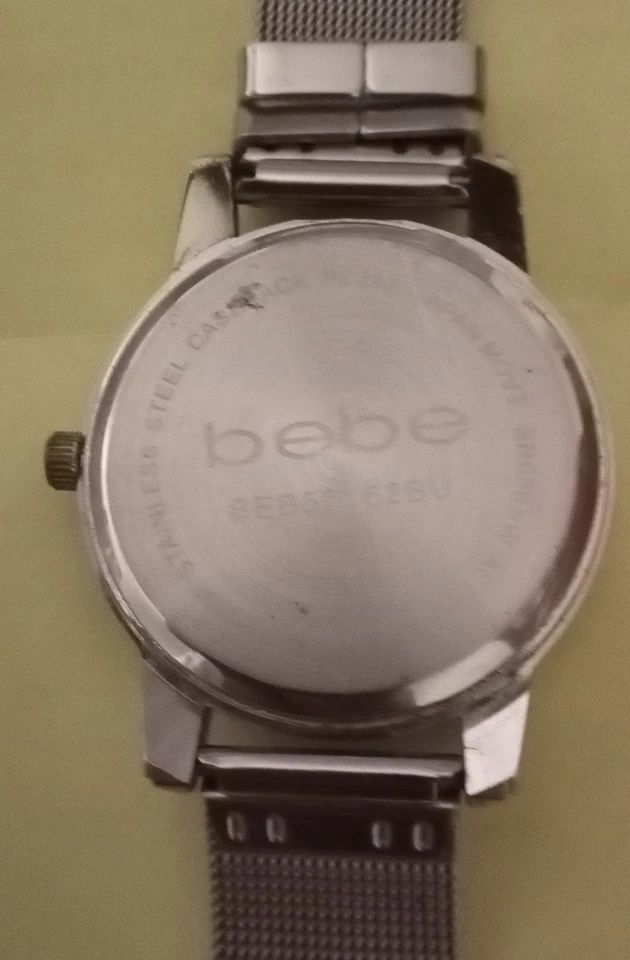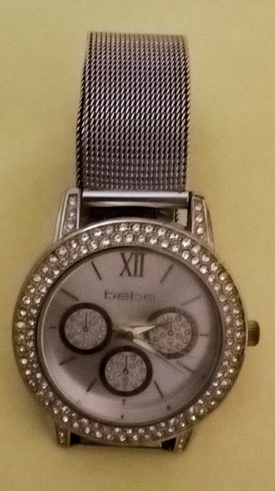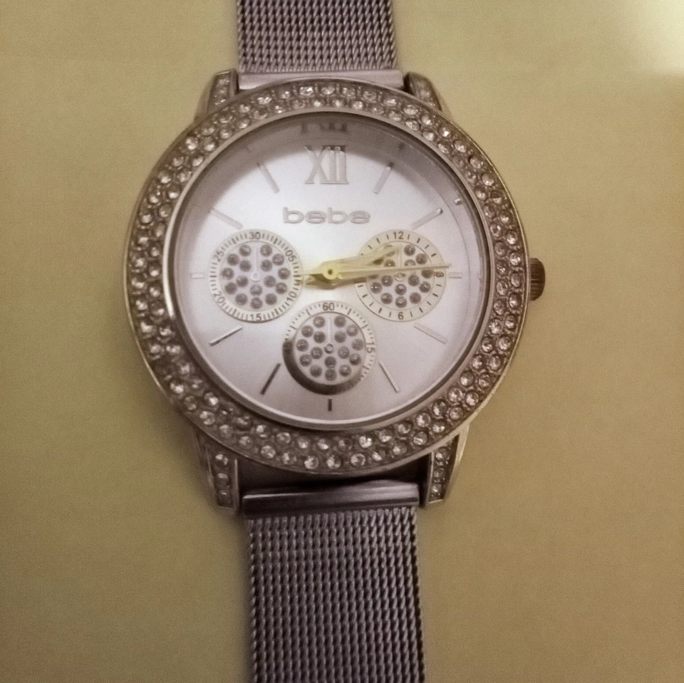 BeBe Silver Tone Dial Crystal Accent Round Case Mesh Stainless Steel Band Works