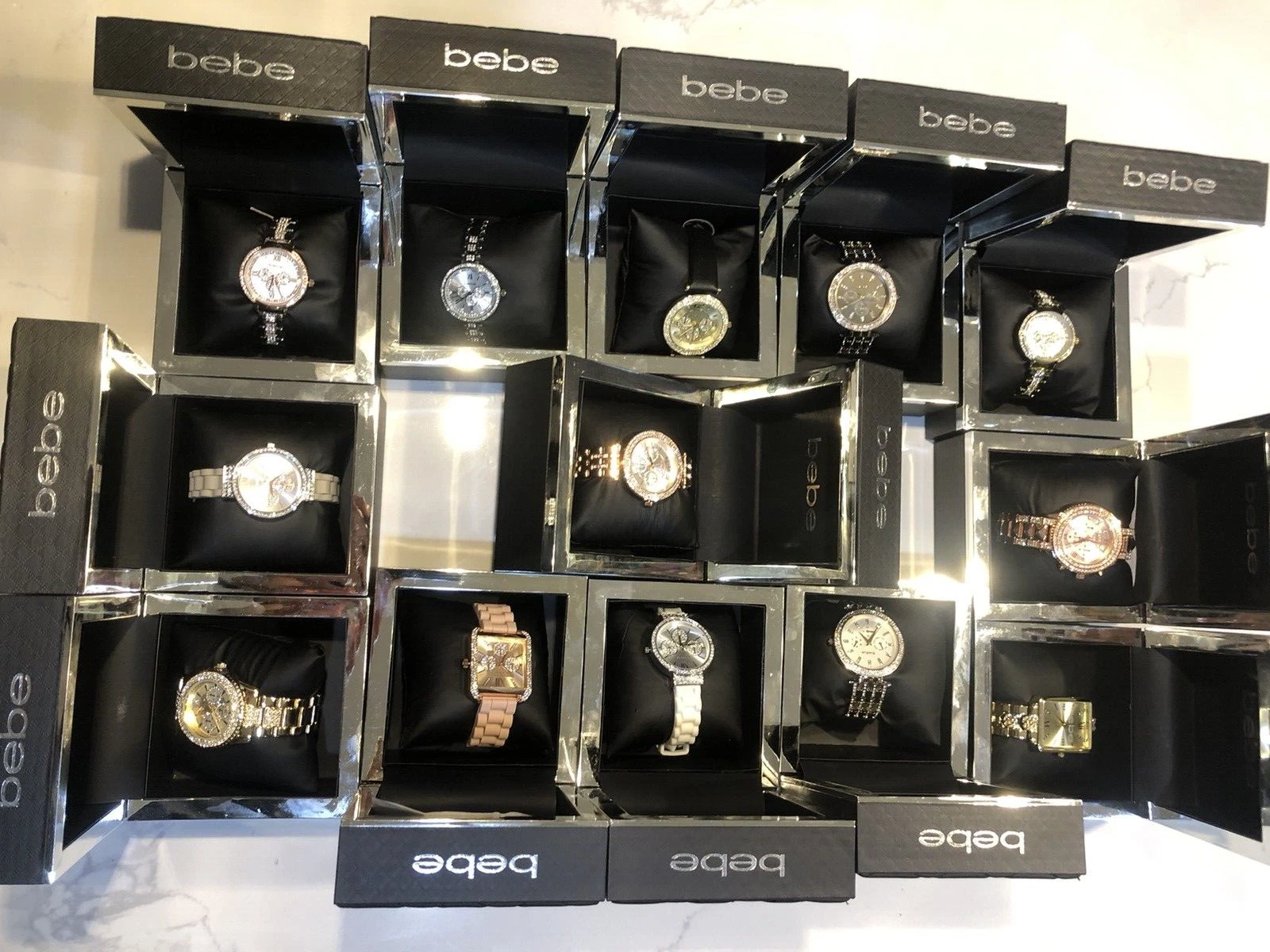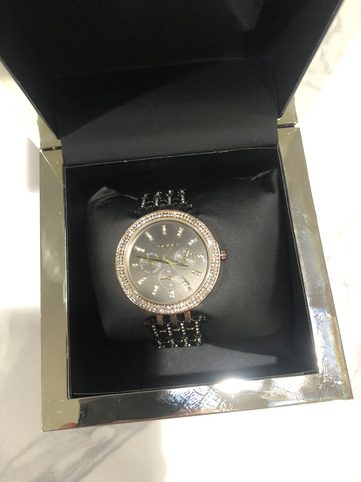 NWT BEBE TWO-TONE BLACK AND GOLD CRYSTAL BEZEL WATCH Modern & glamorous colors!