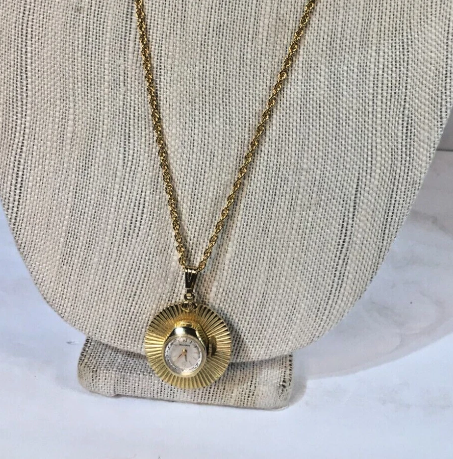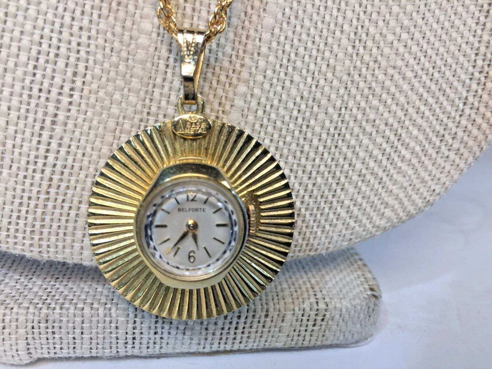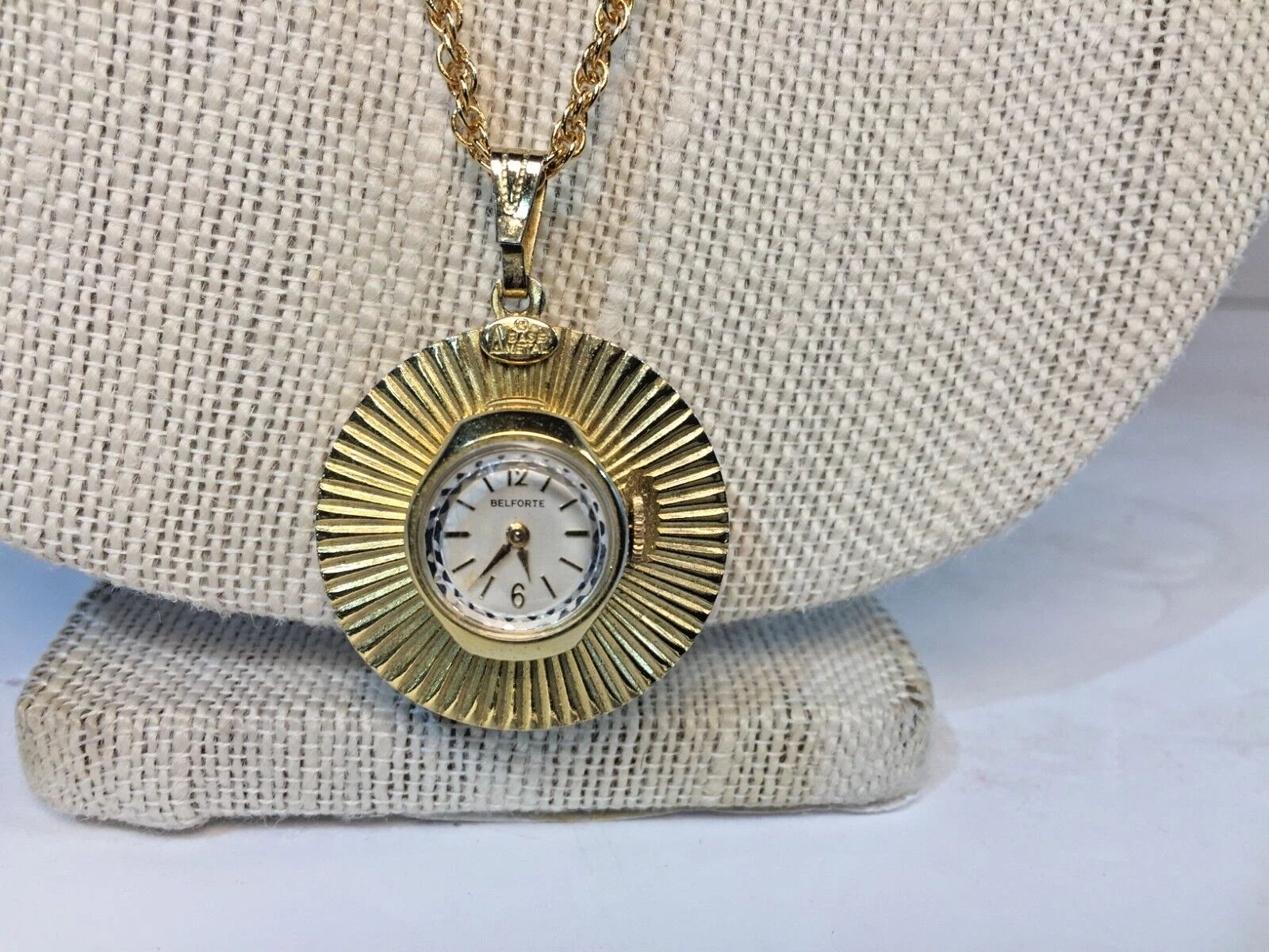 Lovely Vintage Gold Tone Wind Up 7J BELFORTE Ladies Pendant Watch Working 32"!