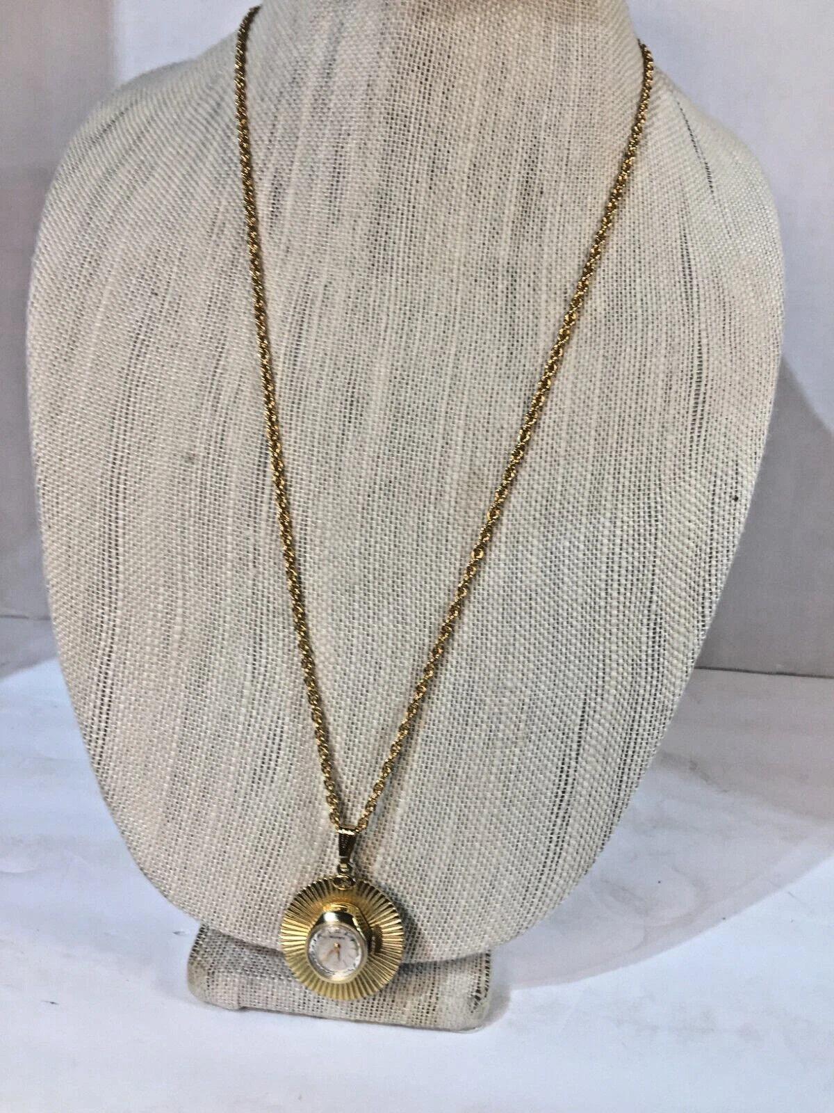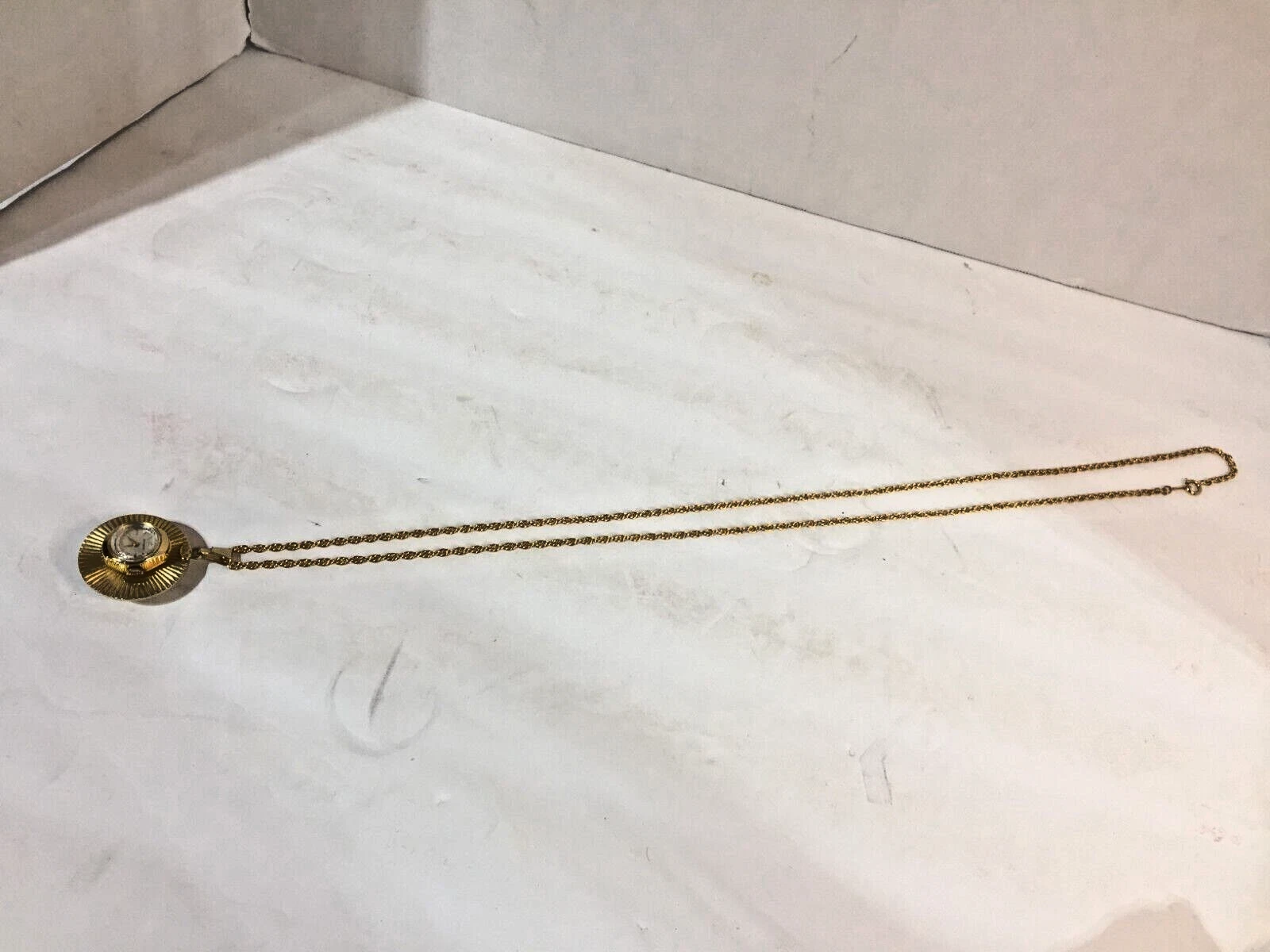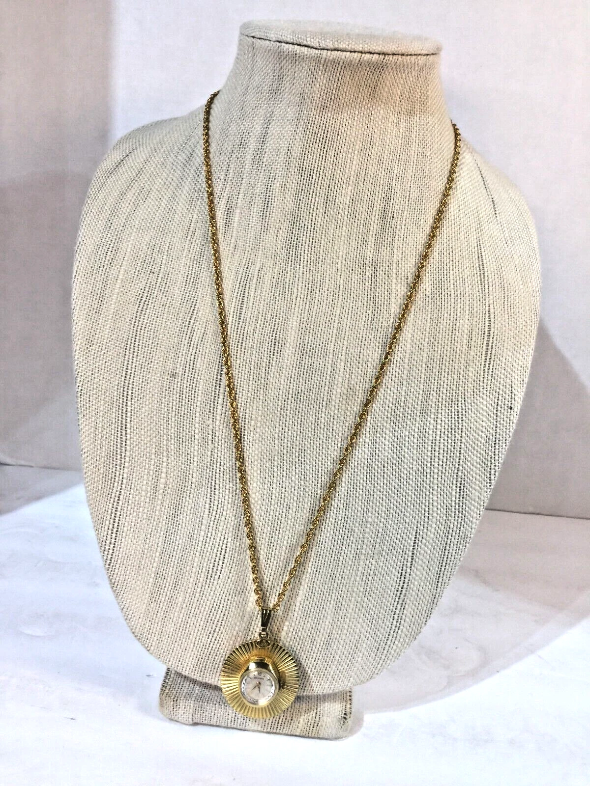 Lovely Vintage Gold Tone Wind Up 7J BELFORTE Ladies Pendant Watch Working 32"!