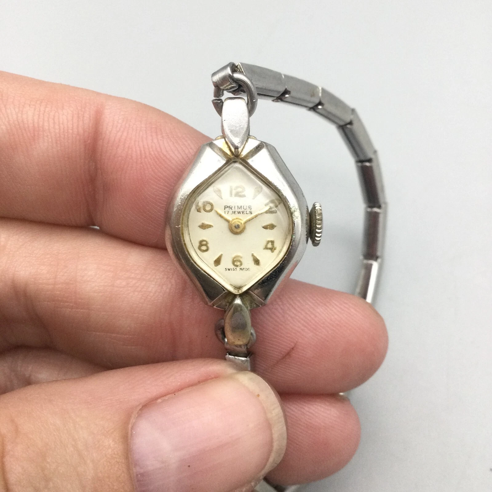 Vtg Primus Watch Women 10K Rolled Gold Plated 16mm Oval 17 Jewels Manual Wind