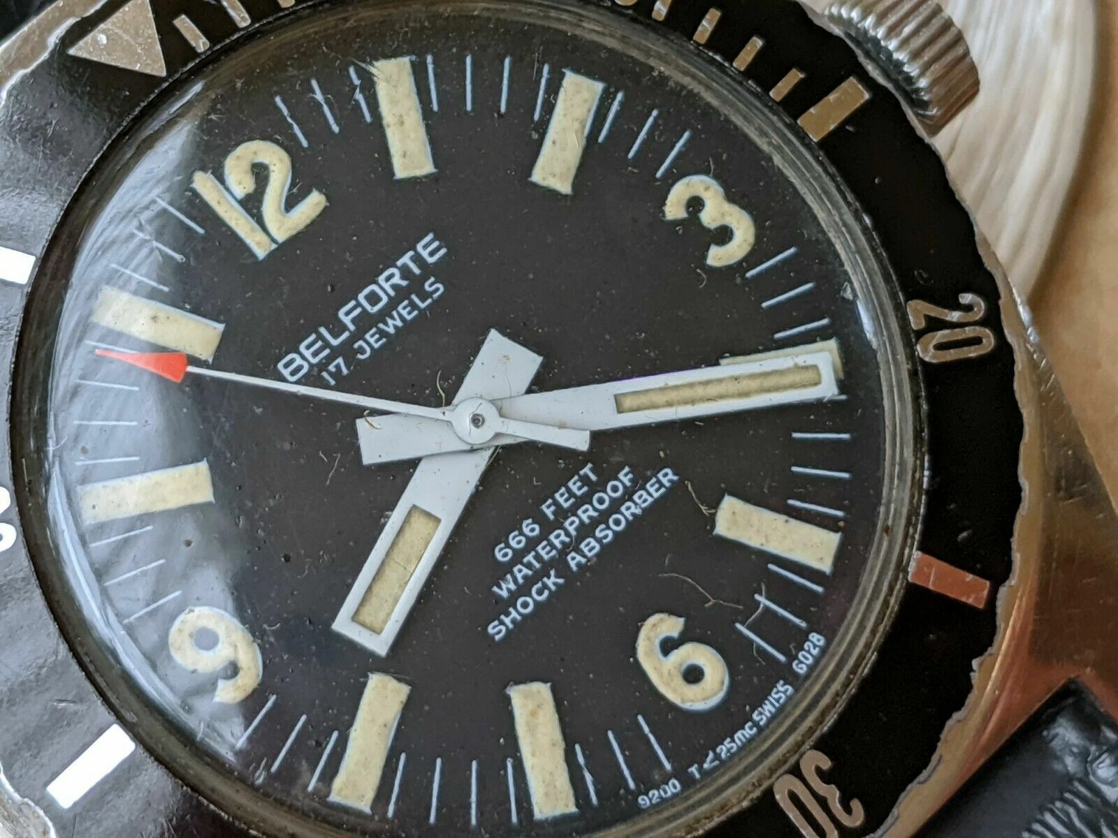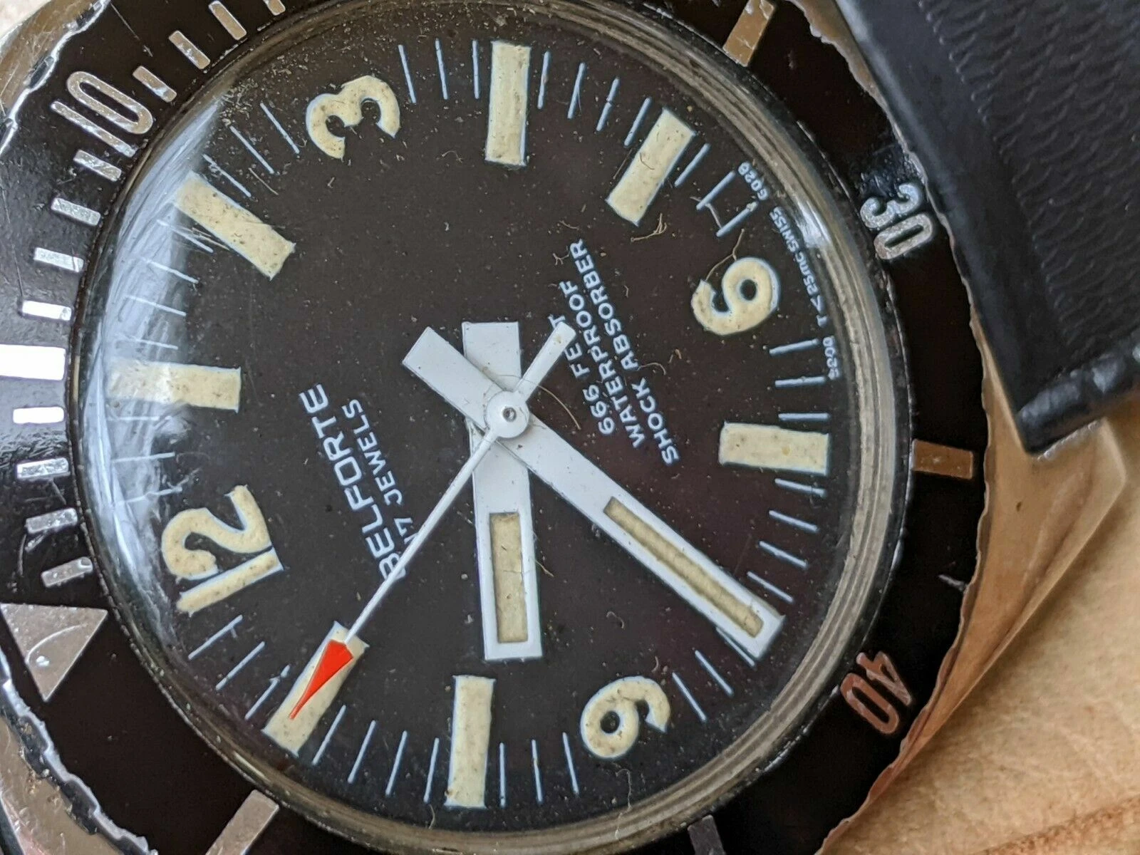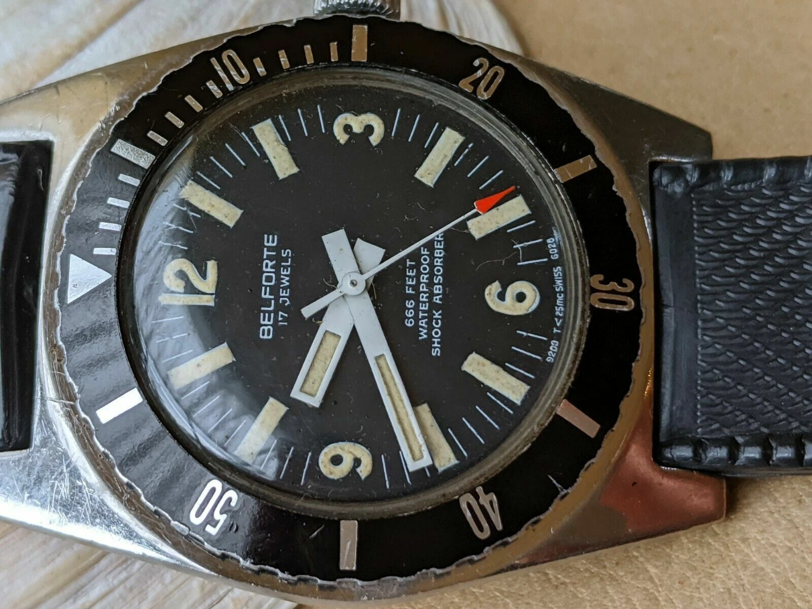 Vintage 1970's Belforte 666 FT Diver w/Warm Patina,All SS Case,NOS SUB Strap