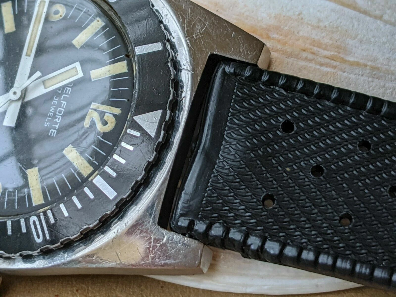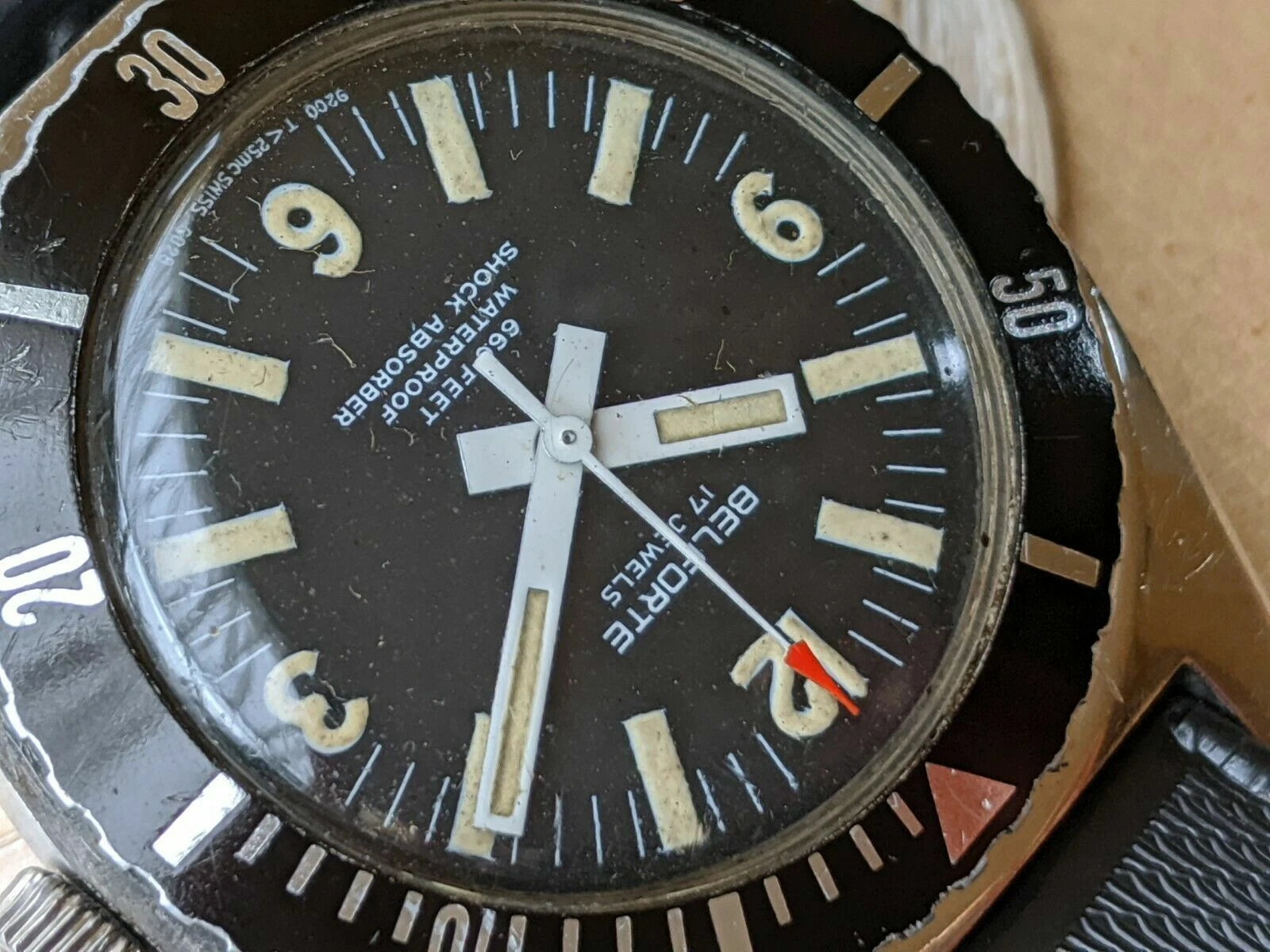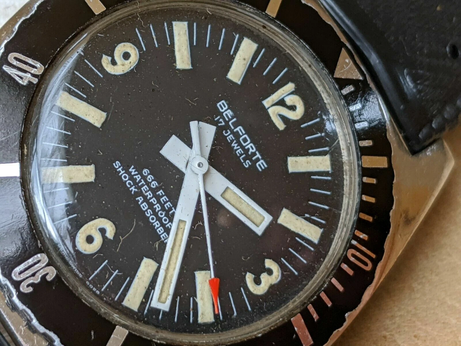 Vintage 1970's Belforte 666 FT Diver w/Warm Patina,All SS Case,NOS SUB Strap
