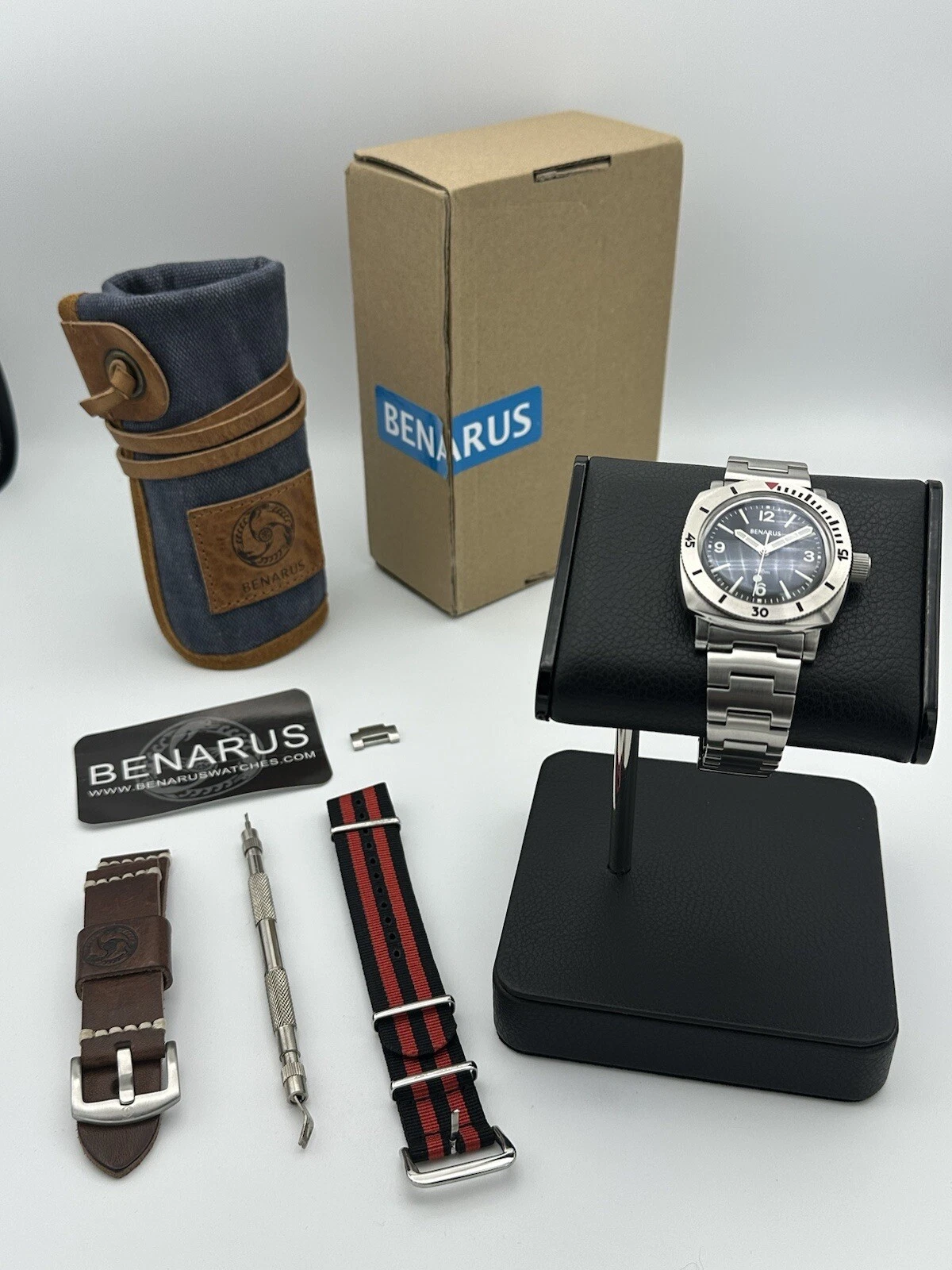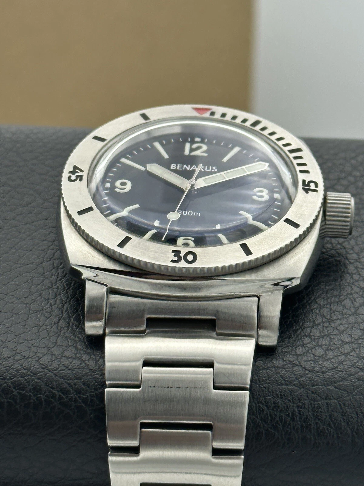 Benarus Moray 300m Diver Automatic 42mm Black Dial Stainless Steel Bracelet Set