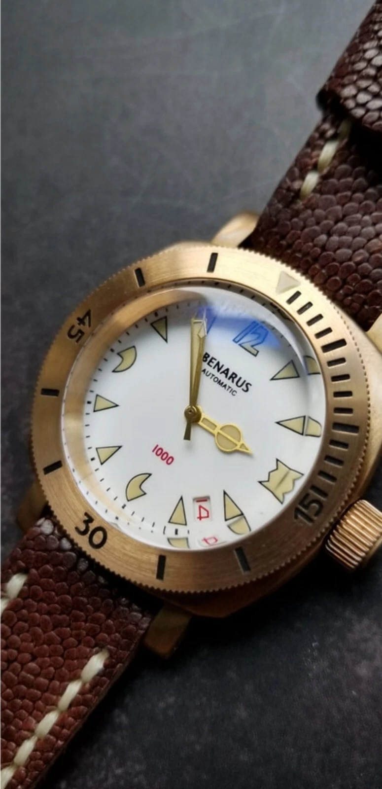 Benarus Moray Dive Watch 38 Moray bronze white vintage Shipped from USA