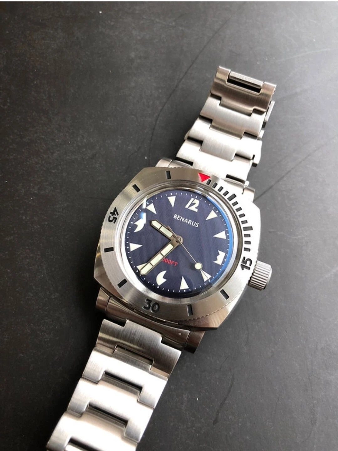 Benarus Moray Watch 42 vintage blue brushed Pacman C3 Shipped from USA