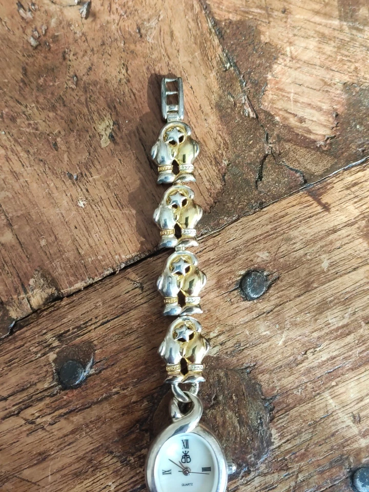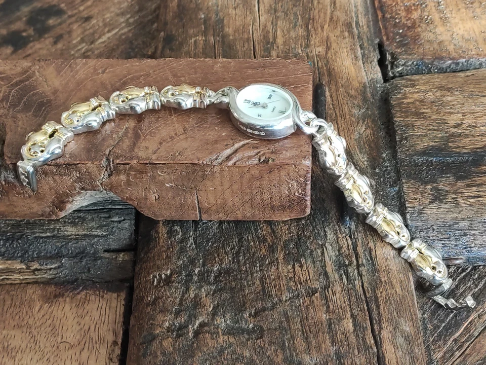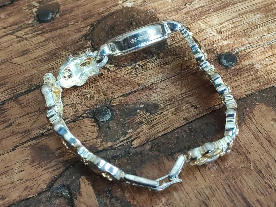 Sterling Silver  & 18ct Gold Plated Brooks & Bentley Watch Bracelet Cats Design
