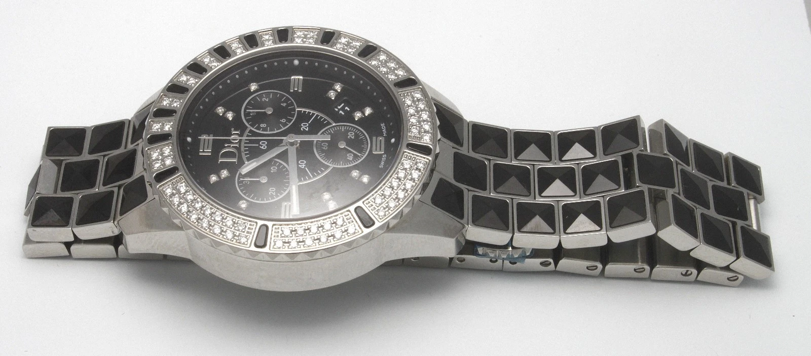 New Authentic Christian Dior Christal Diamond Dial Ceramic Strap Watch FN9592