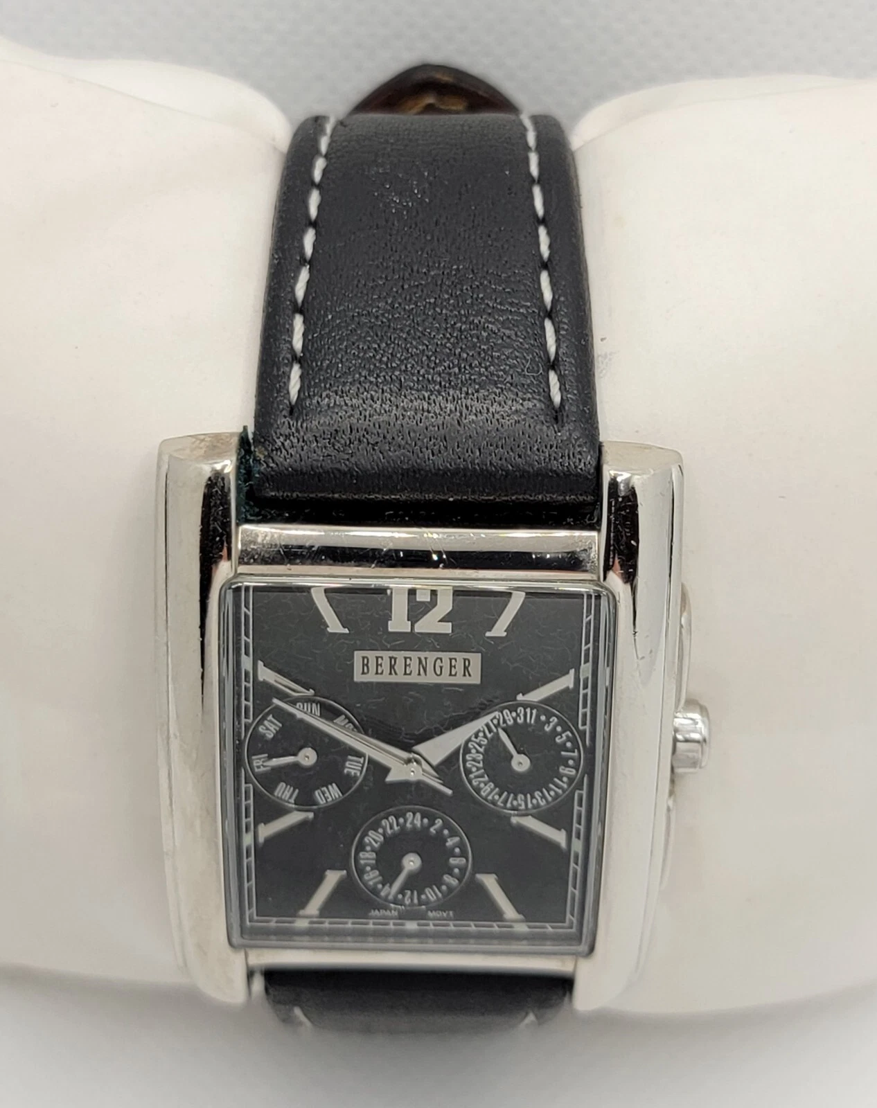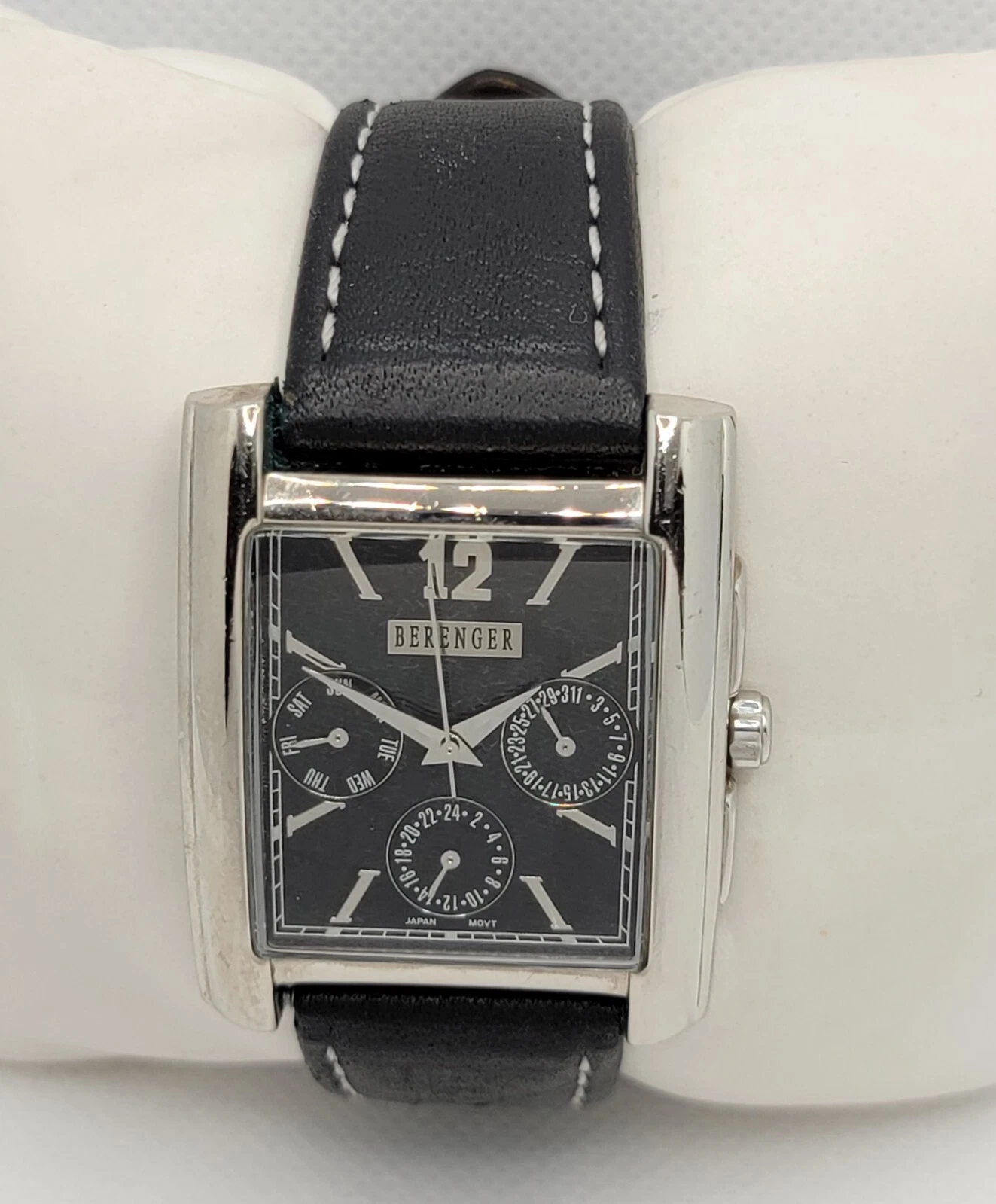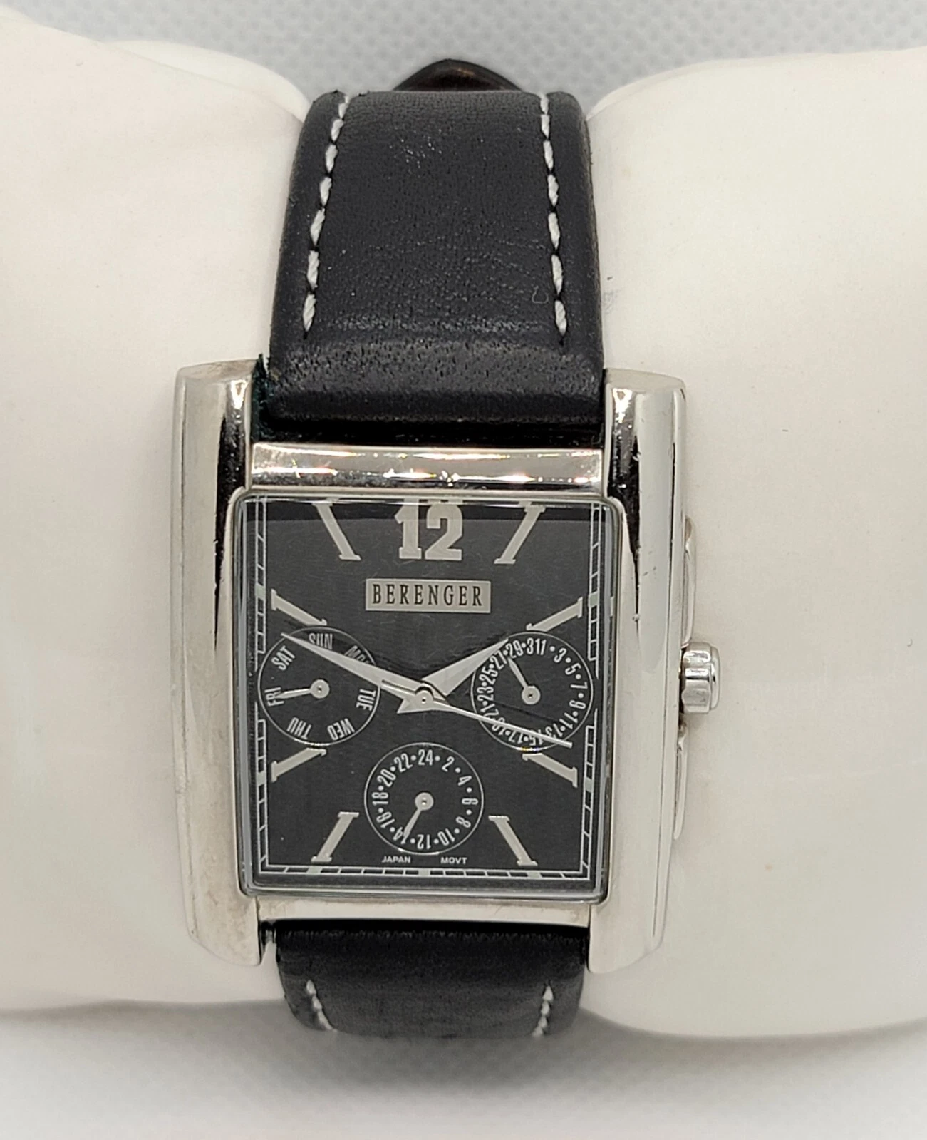 Mens Berenger Classic Tank Rectangle Silver Tone Black Dial Analog Watch F6