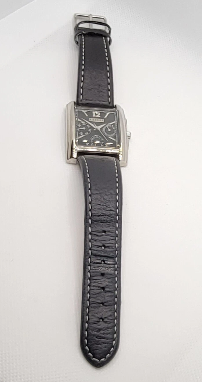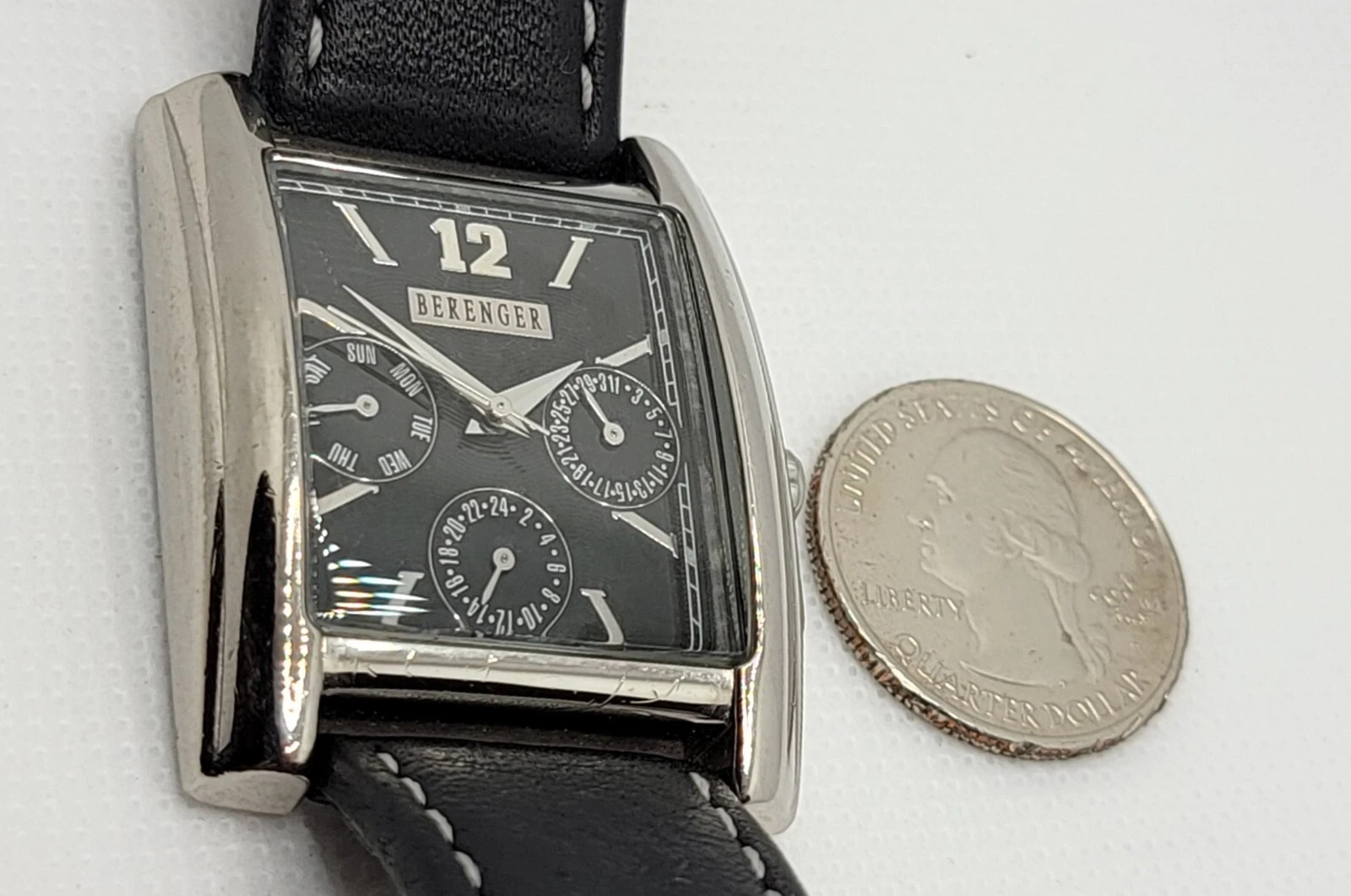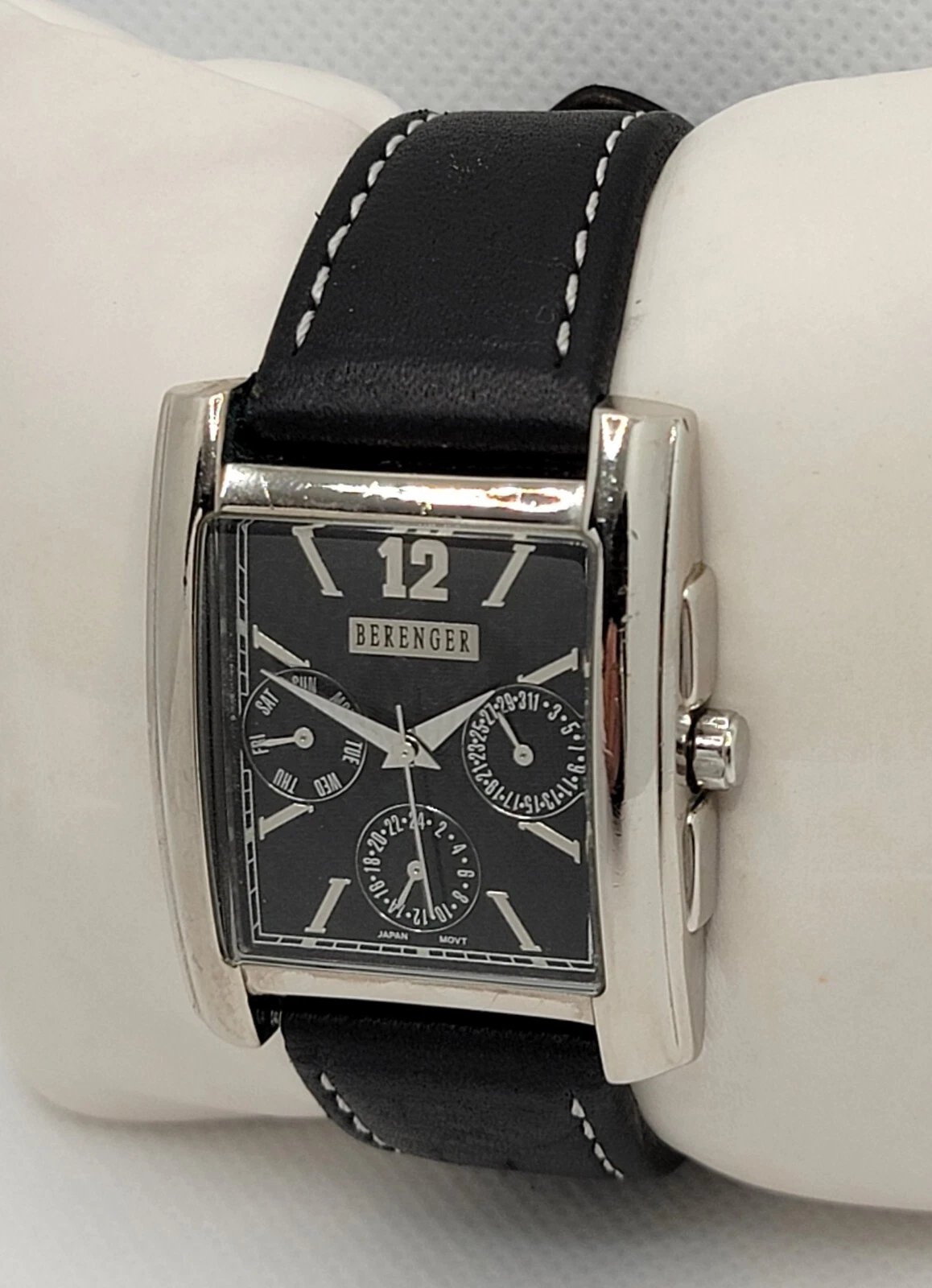 Mens Berenger Classic Tank Rectangle Silver Tone Black Dial Analog Watch F6