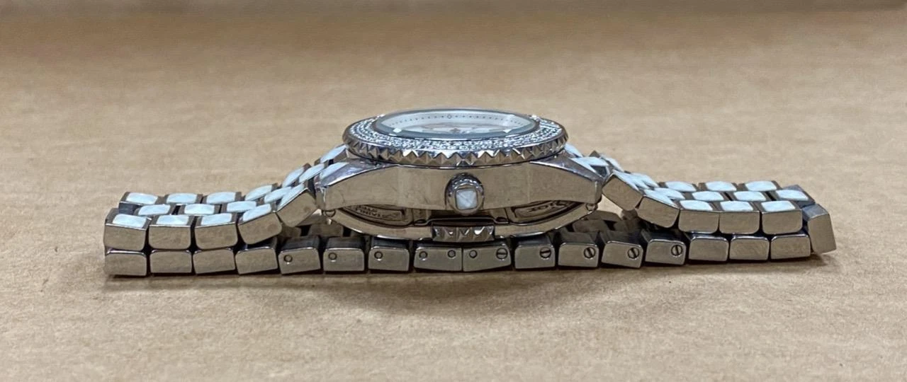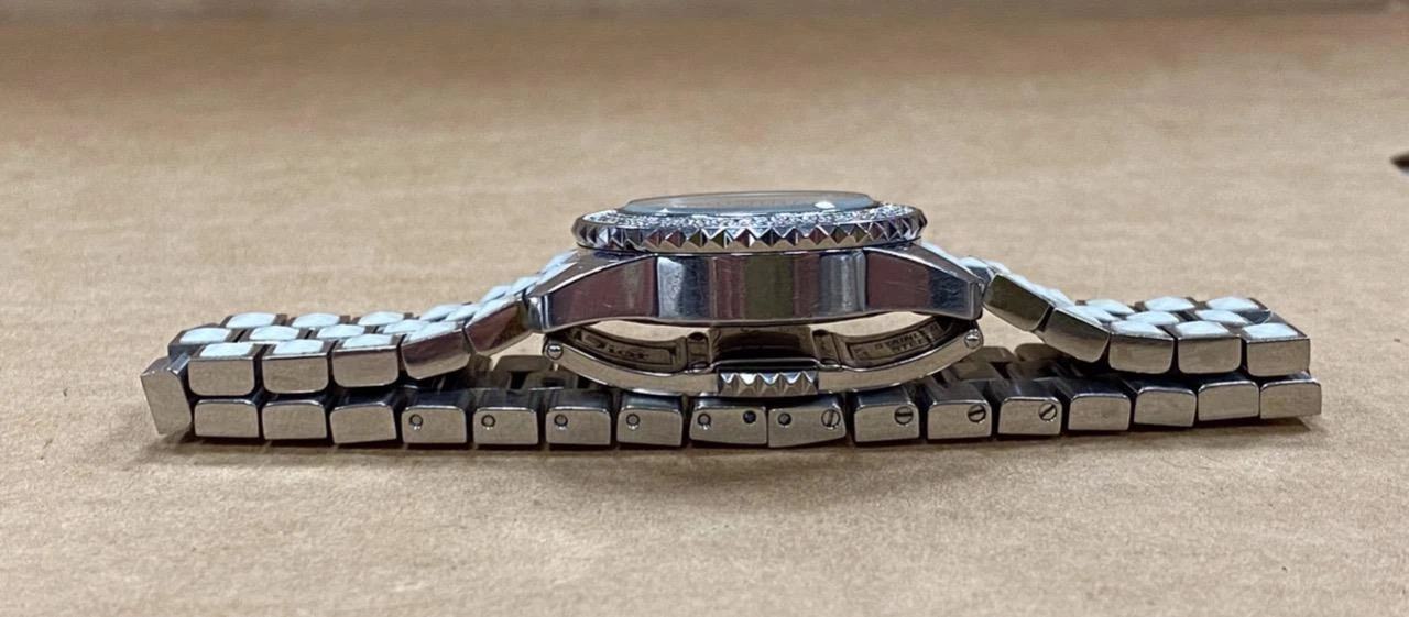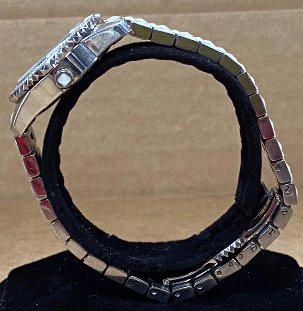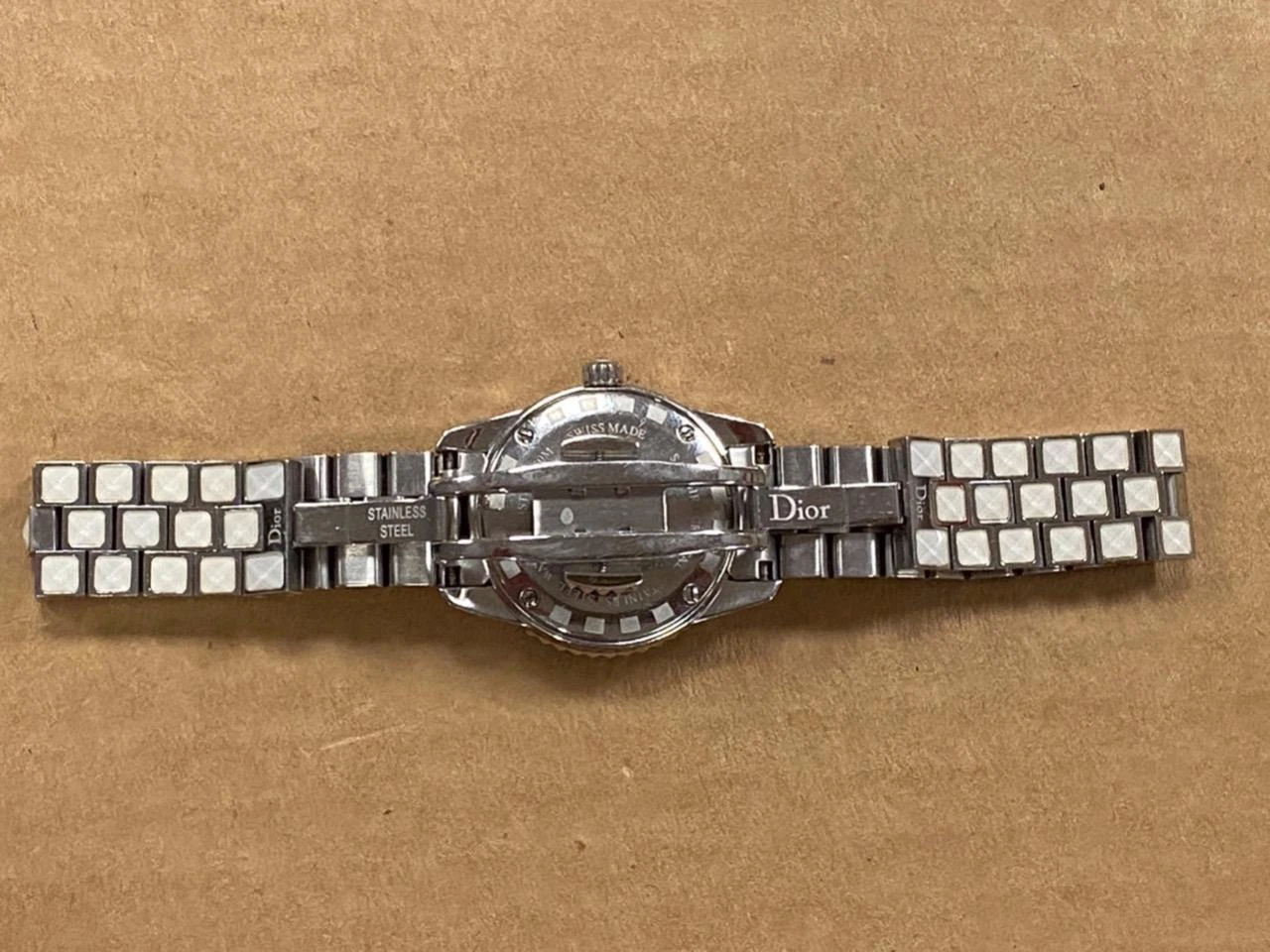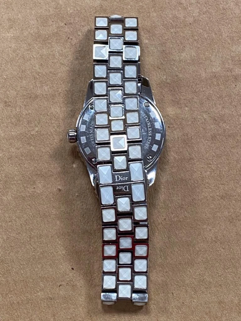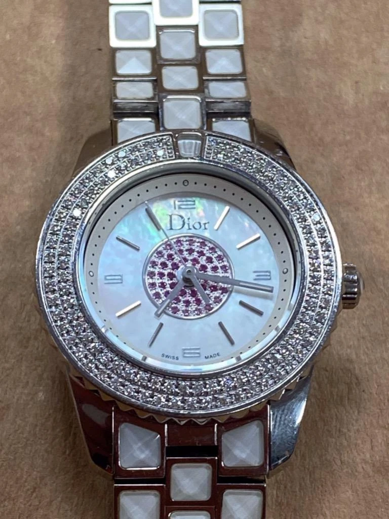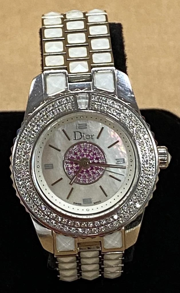 DIOR CHRISTAL MOP PINK SAPPHIRE DIAL DIAMOND BEZEL 28mm SS QUARTZ WATCH.