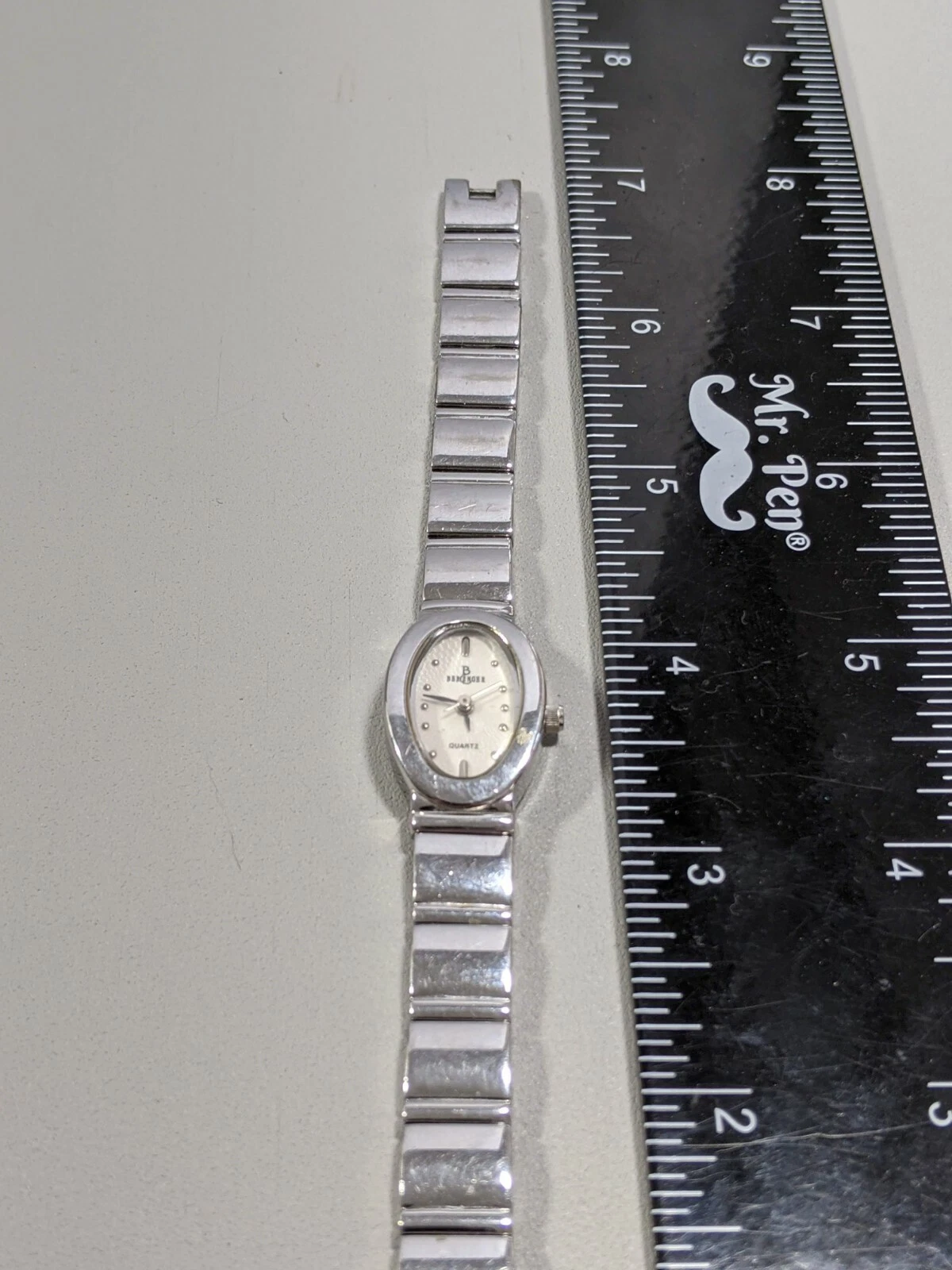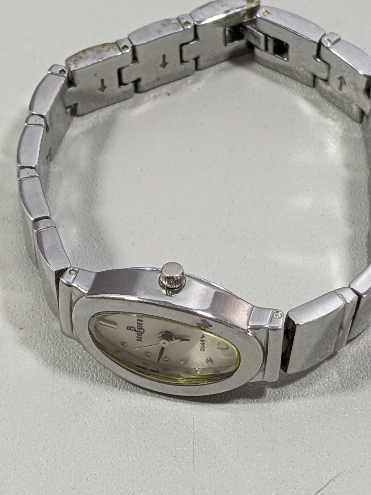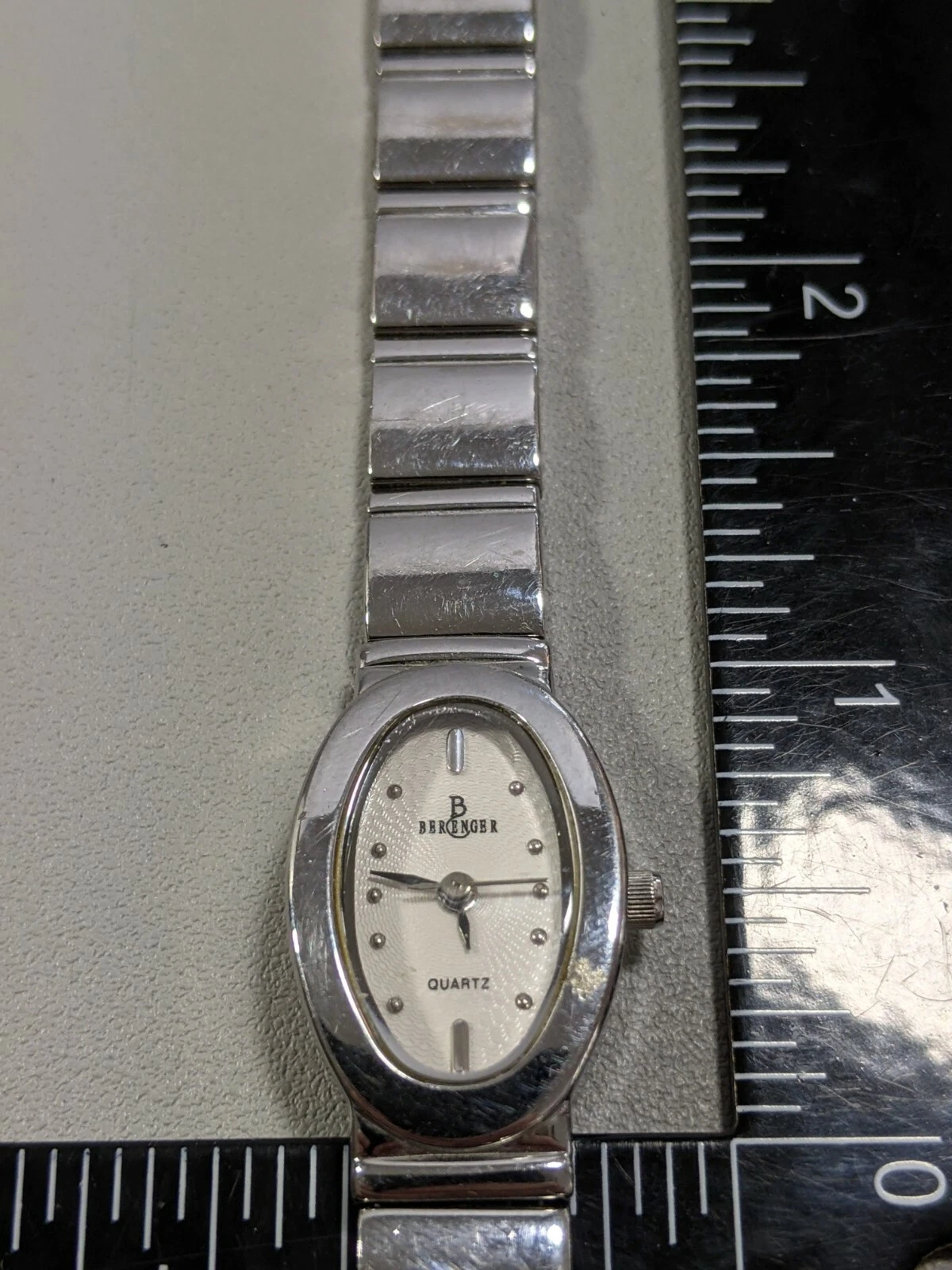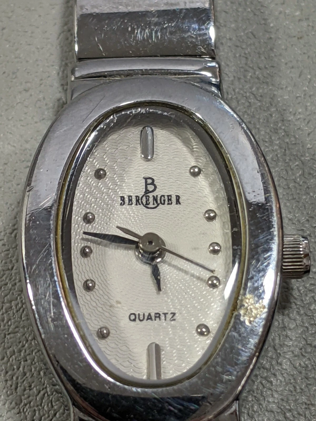 Berenger Silver Tone Oval Case White Dial Link Bracelet Band Watch 7 Inch