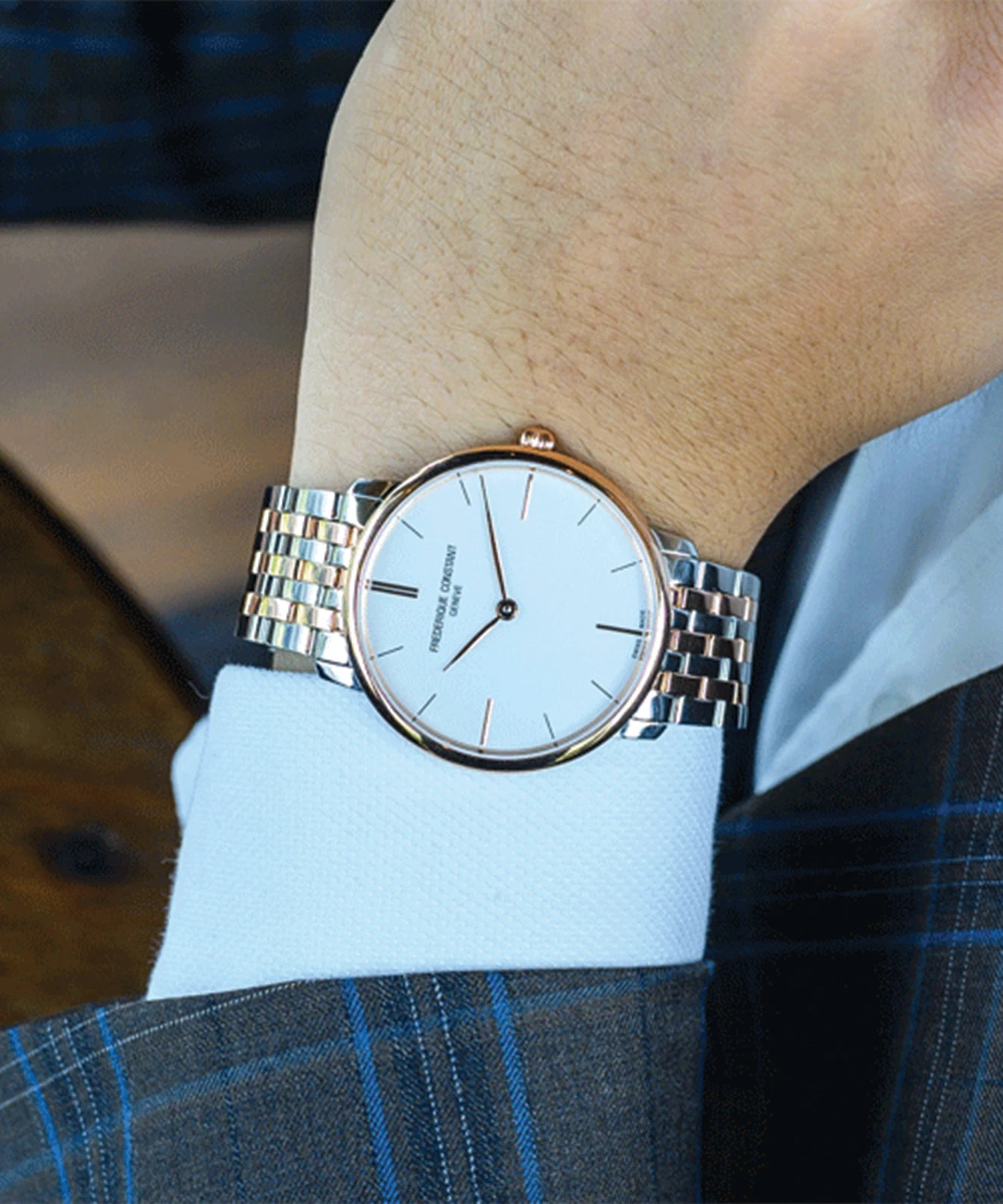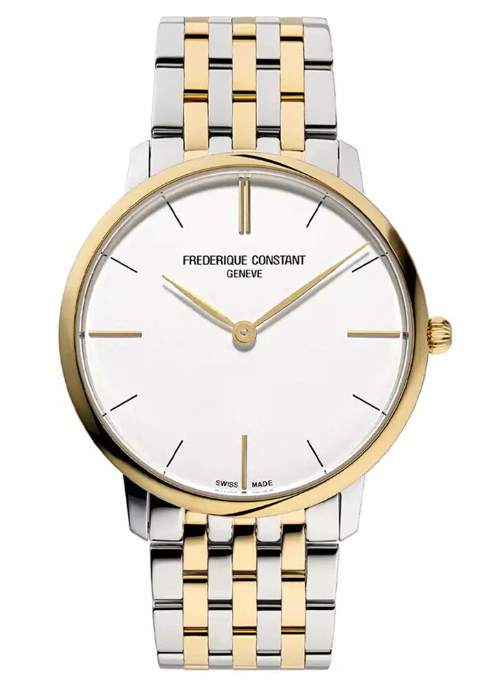 Frederique Constant Men's 'Slimline' White Dial Two Tone Bracelet FC-200V5S32B
