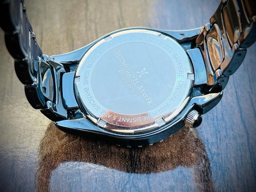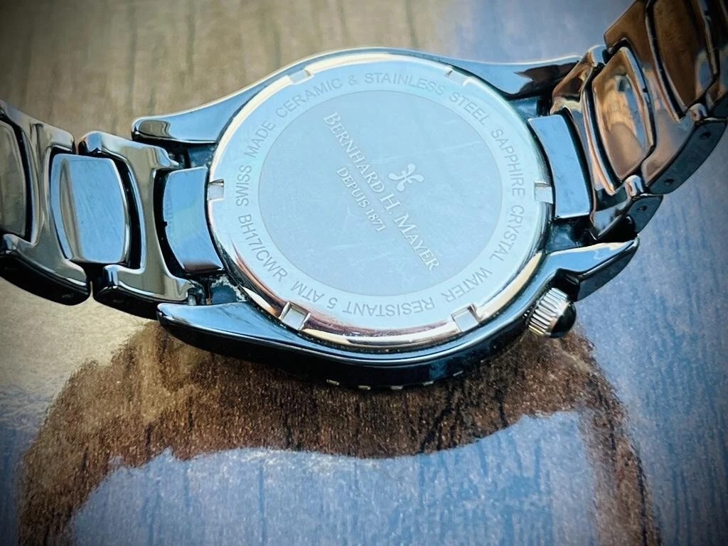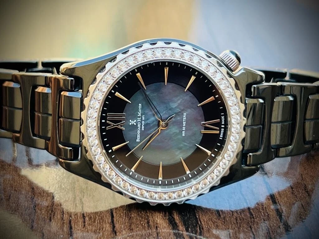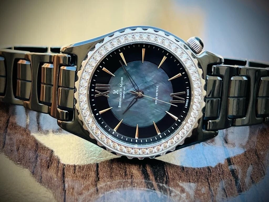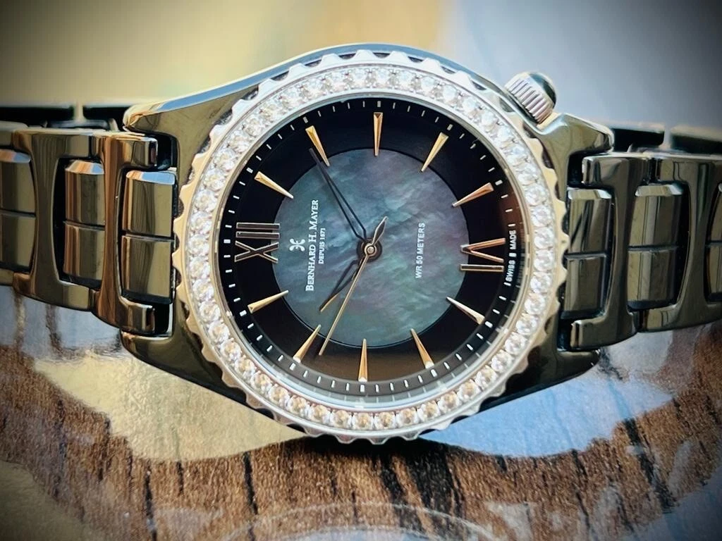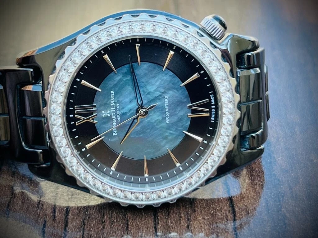 Bernhard H. Mayer La Vida MOP Dial Diamond Bezel Black Ceremic Mens Watch 38mm