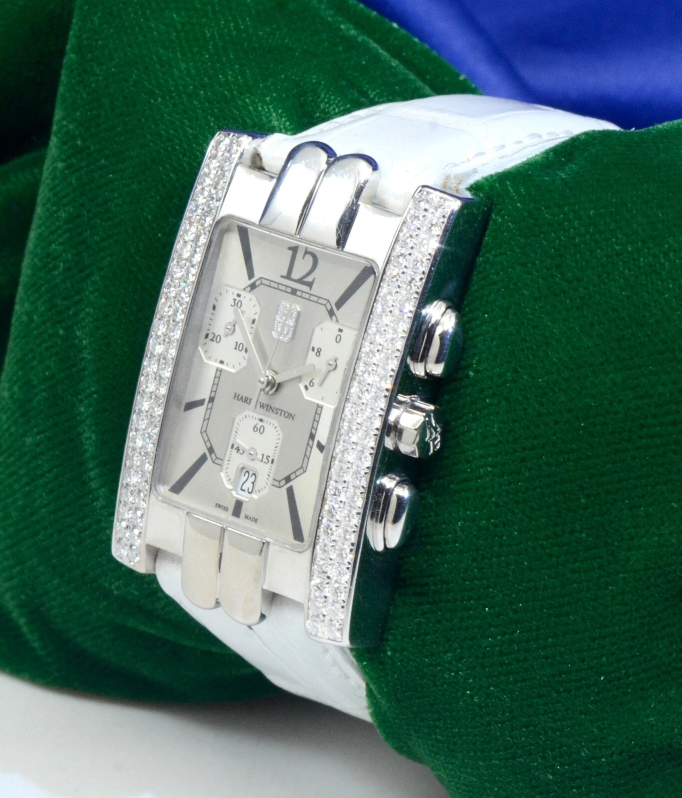 Harry Winston Avenue a 18k White Gold Auto Diamonds Silver Ladies Watch 310UCQW